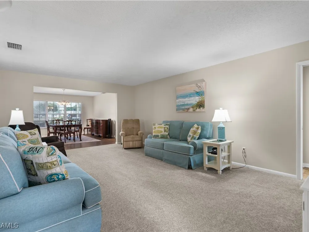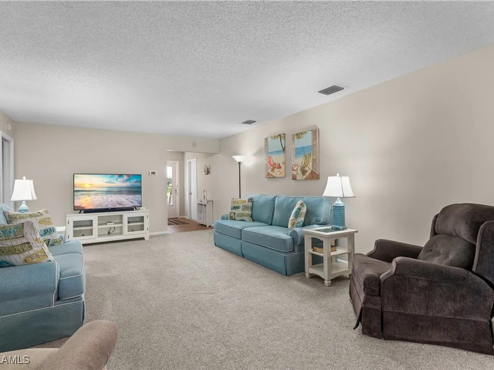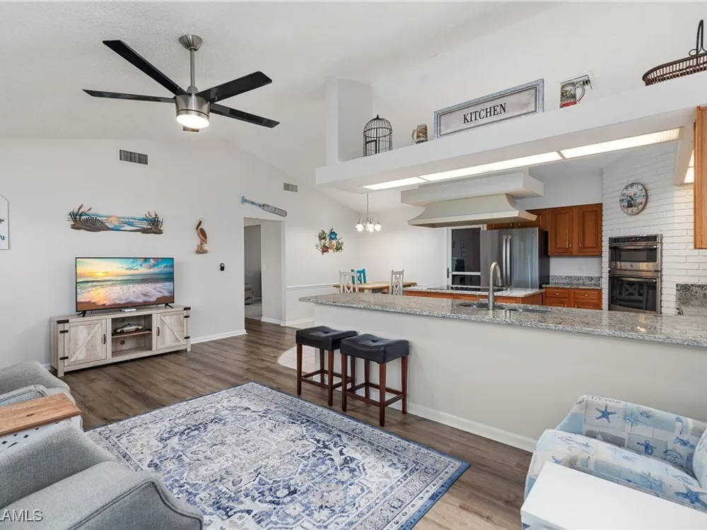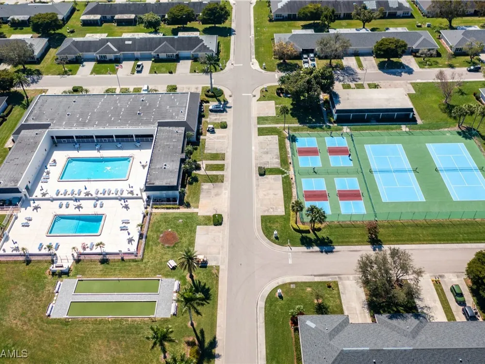 Nestled in the vibrant city of Fort Myers, this charming 3 bedroom, 2 bath property in Brandywine welcomes you with a lifestyle brimming with community charm and modern comfort. Imagine waking up and stepping outside to be greeted by a beautiful view of the community pool and bocce courts, where winter sunsets paint the sky in warm hues. Brandywine offers an abundance of recreational activities and organized social events for your enjoyment. Your monthly condo fee provides outside maintenance of your villa, including painting, roof and gutters. Brandywine has a healthy reserve and provides flood insurance on your villa. This home offers top-of-the-line stainless steel appliances, all safeguarded by extended warranties, ensuring peace of mind as you cook up your culinary creations. The modern kitchen features stainless steel appliances, a convenient kitchen island, and built-in cabinets for ample storage space. The laminate, carpet and tile flooring throughout adds a touch of elegance to the home, while the impact resistant windows provide peace of mind during stormy weather. The cathedral ceiling adds an extra touch of elegance to the space, making it feel even more grand and inviting. The community amenities are unparalleled, boasting a list of delights including Billiards, Pickleball, two Community Pools, and Hot Tub, while the sidewalks wind through this oasis, promoting leisurely strolls to the library or the exercise room. Attic insulation was upgraded to R-26 in 2020, and a water softener added in 2022, as well as a brand new (2025) hot water heater, spotlighting the care and attention to detail invested in this home. With easy access to the pristine shores of Fort Myers Beach and Sanibel Island, not to mention a stone's throw away from shopping, dining, and entertainment venues, this home places you in the heart of convenience. (Dishwasher 2023, Cooktop 2024, Trane AC 2021, Washer/Dryer 2023, Refrigerator 2023)