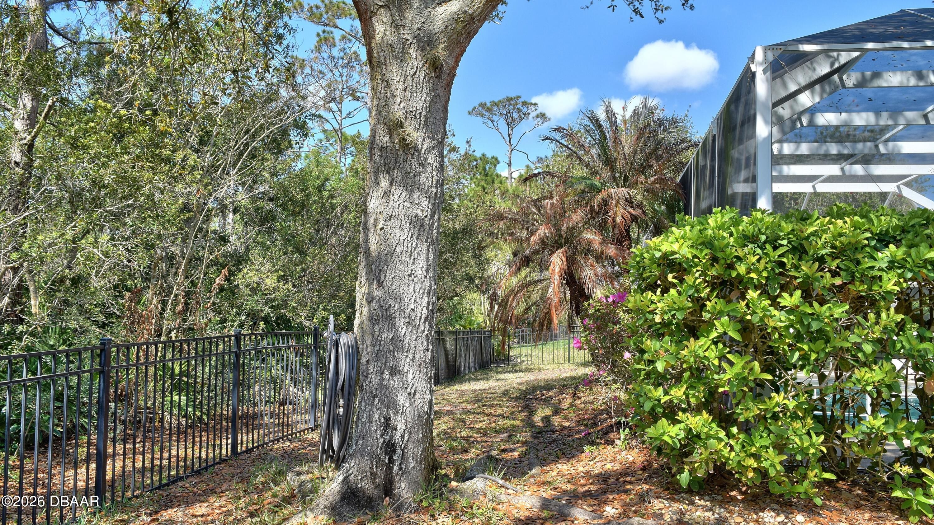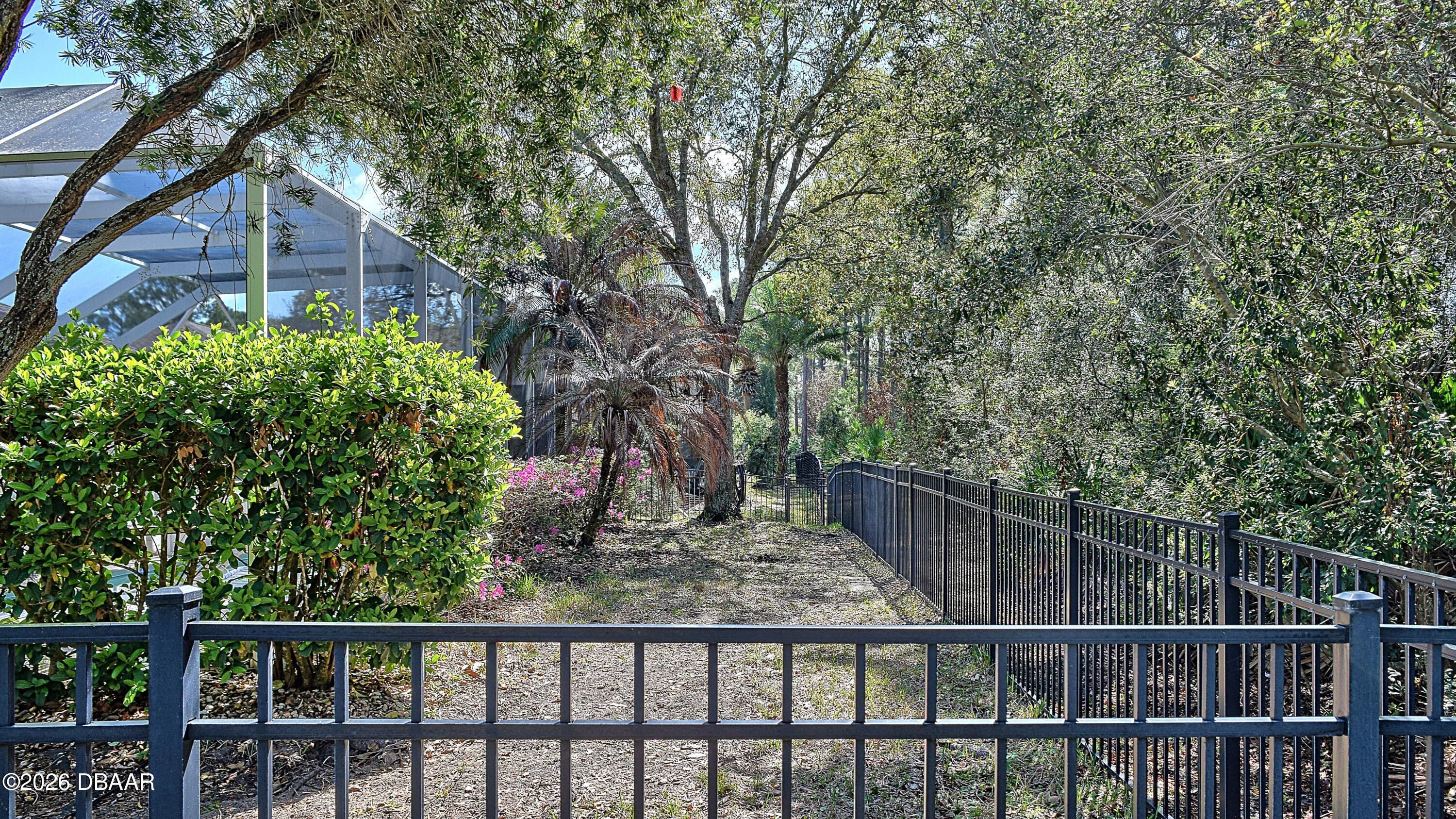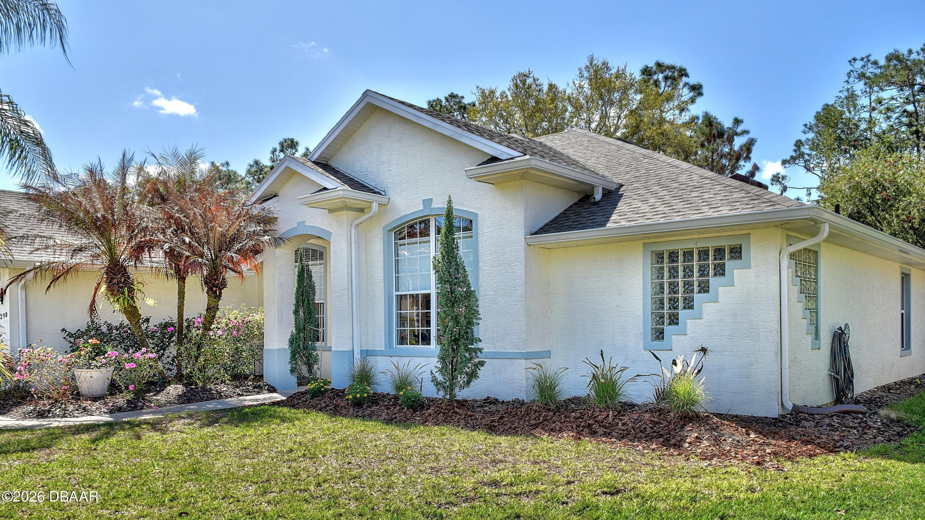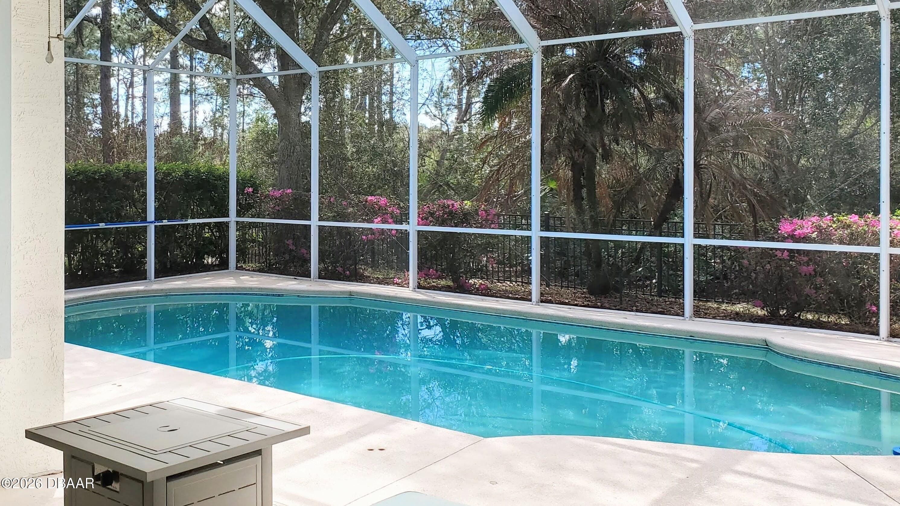 Welcome to your private Florida retreat! This spacious 4-bedroom, 2-bath concrete block pool home, with 2025 roof and many thoughtful, well-appointed updates, offers impressive curb appeal, highlighted by mature palm trees and a beautifully landscaped, private fenced backyard. For the buyer's enhanced peace of mind, seller will provide a 1-year home warranty for this beautiful home located in the highly desirable gated golf course community of Plantation Bay Golf & Country Club. Step inside the home into a light-filled interior featuring soaring 11-foot ceilings and an open great room with an abundance of natural light. Triple sliding glass doors frame views of the sparkling screened pool and create seamless indoor-outdoor living. Throughout the home you will appreciate the attractive neutral wall colors, 5¼-inch baseboards, tile and updated luxury vinyl plank flooring--no carpet! The eat-in kitchen features gorgeous, updated granite countertops, a subway tile backsplash, large single sink with high-end faucet, a walk-in pantry, breakfast bar, and a sunny breakfast nook surrounded by windows overlooking the pool--perfect for casual meals and entertaining family and friends. A separate dining room provides additional space for gatherings and special occasions. The thoughtfully designed split-bedroom floor plan offers privacy for both homeowners and guests. The generously sized primary suite is a personal retreat and features a tray ceiling, large walk-in closet with floor to ceiling wrap around closet organizer, and sliding glass doors providing direct access to the pool area. The en-suite bath includes double sinks, a walk-in shower, and a relaxing soaking tub. The additional bedrooms are welcoming for family or guests, with the fourth bedroom currently used as a home office. The updated, second bathroom features double sinks, attractive vanity with storage, and convenient, direct access to the pool. Step outside and relax on the screened lanai overlooking the refreshing pool and a peaceful fenced backyard that backs to lush trees for added privacy. An ideal space for outdoor relaxation and recreation. Seller has already taken care of major improvements! New roof (2025), AC (2021), water heater (2021), new fence (2021), painted interior and exterior (2021), LVP flooring (2021), kitchen appliances (2021), kitchen updates (2022), Second bath update (2022) and yard makeover(2022). Additional features include an irrigation system, whole-house water filtration system, electronic front door lock, garage storage racks, timer for exterior garage lights, and all new door handles / locksets inside and out, laundry room utility sink, and ceiling fans and updated light fixtures throughout! Residents may choose to join Plantation Bay Golf & Country Club (membership optional with additional fees) and enjoy an active lifestyle with 45 holes of golf, two clubhouses, including the new 30-million-dollar Founders clubhouse, on-site dining, a full-service spa and fitness center, tennis and pickle ball courts, and a resort-style pool and cabana bar. Plantation Bay is conveniently located near I-95 and only about 10 miles from the beach! Schedule your private showing today and learn more about the many distinctive features this fabulous home and incredible community have to offer!