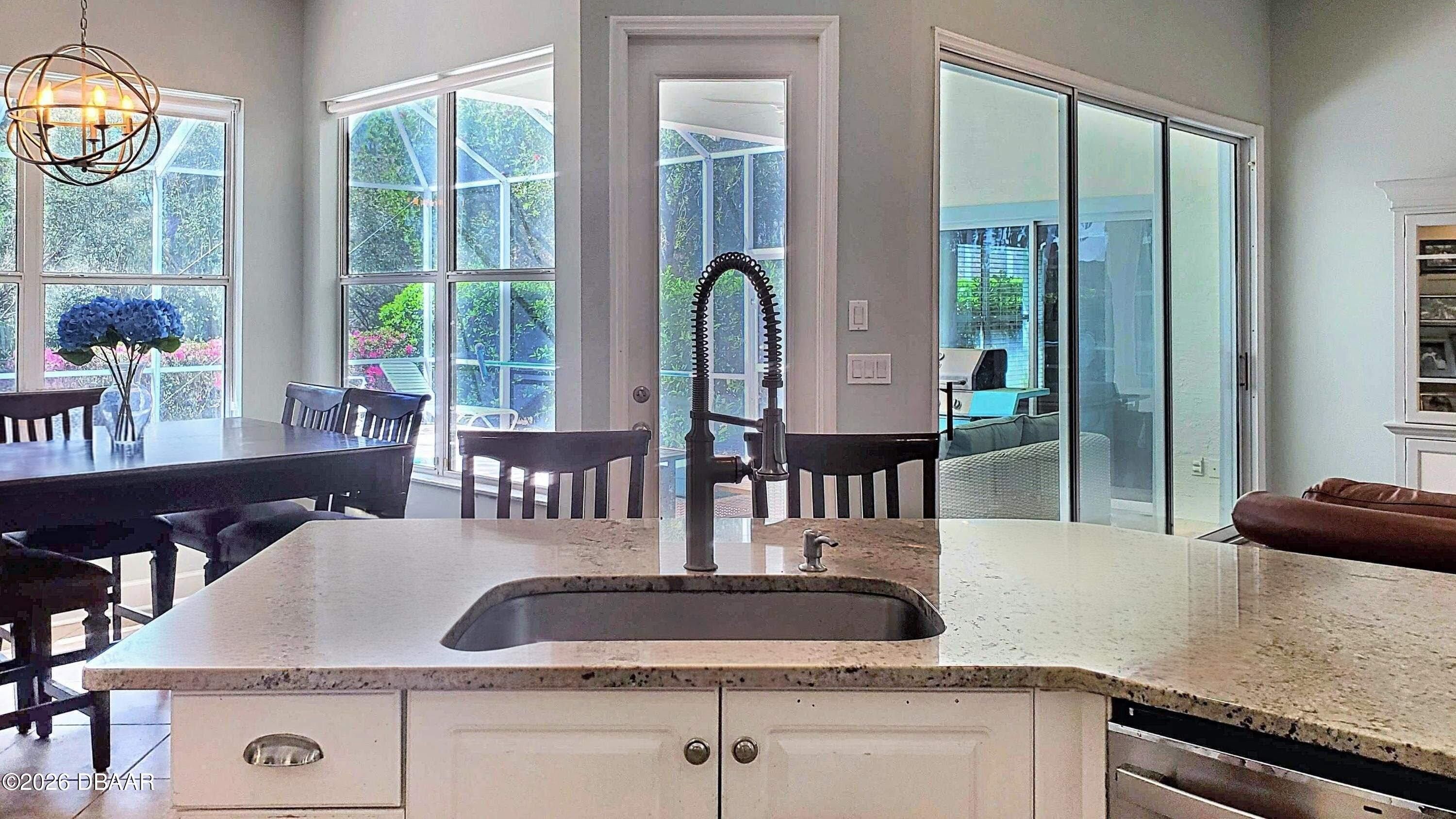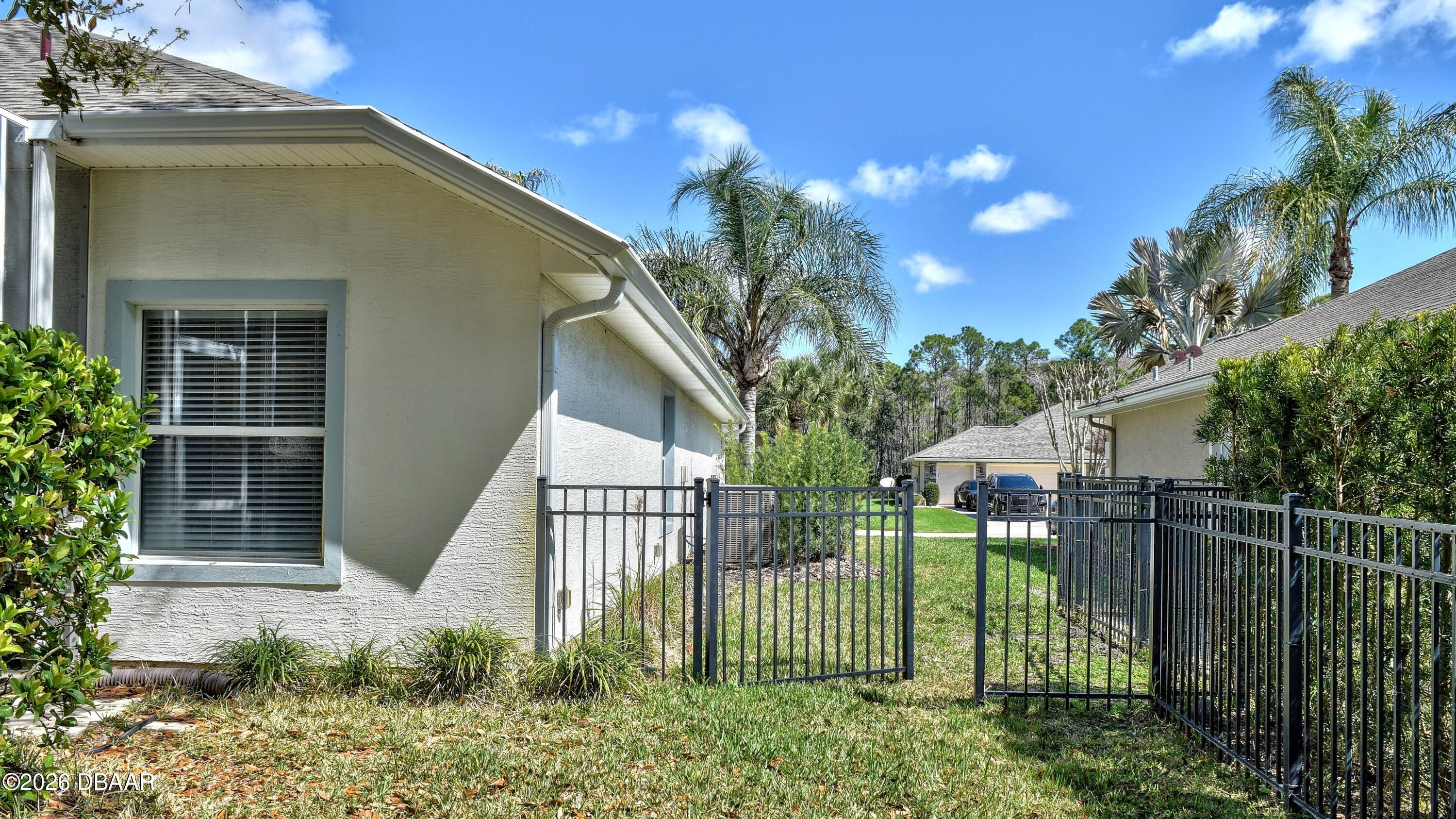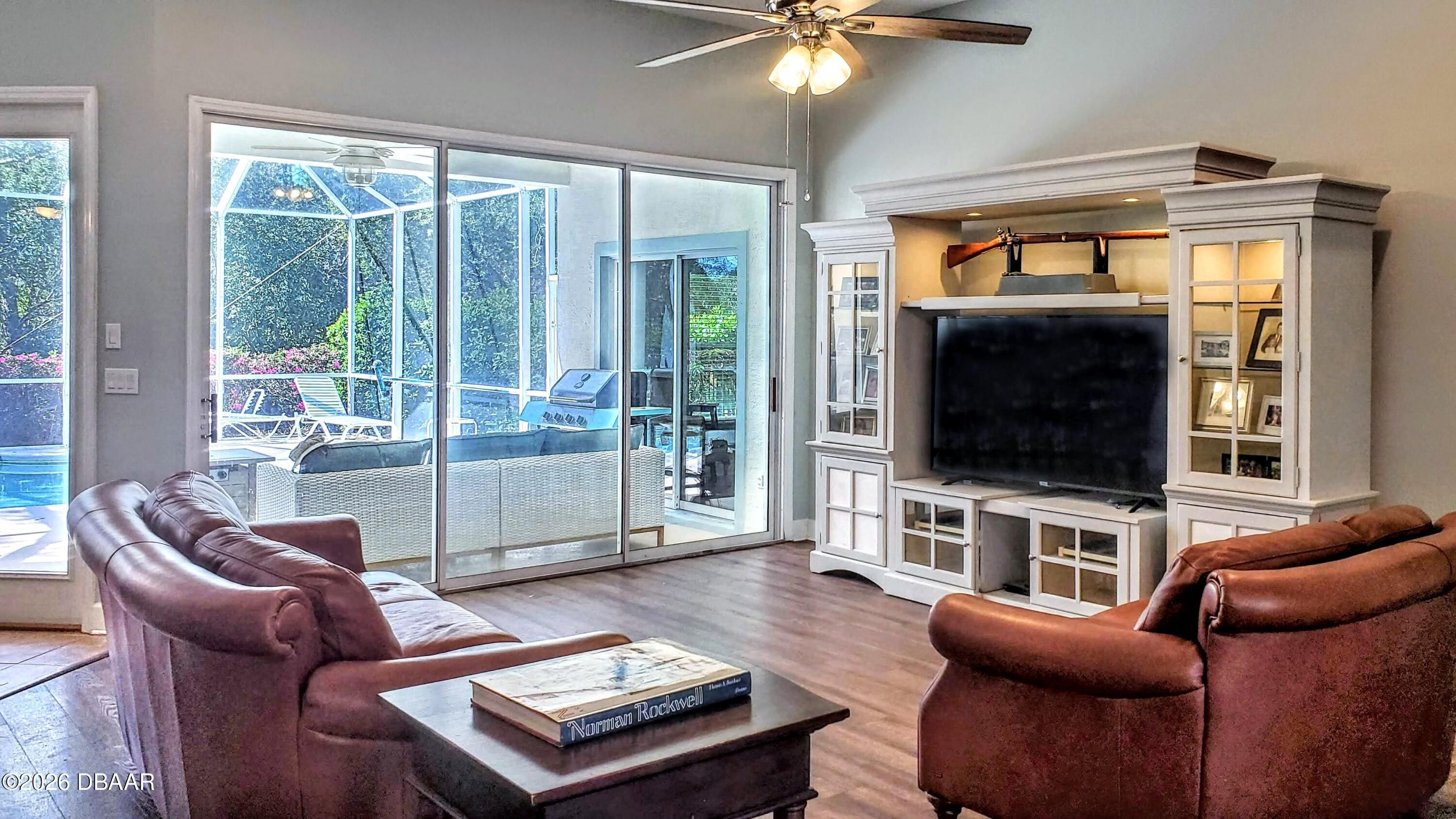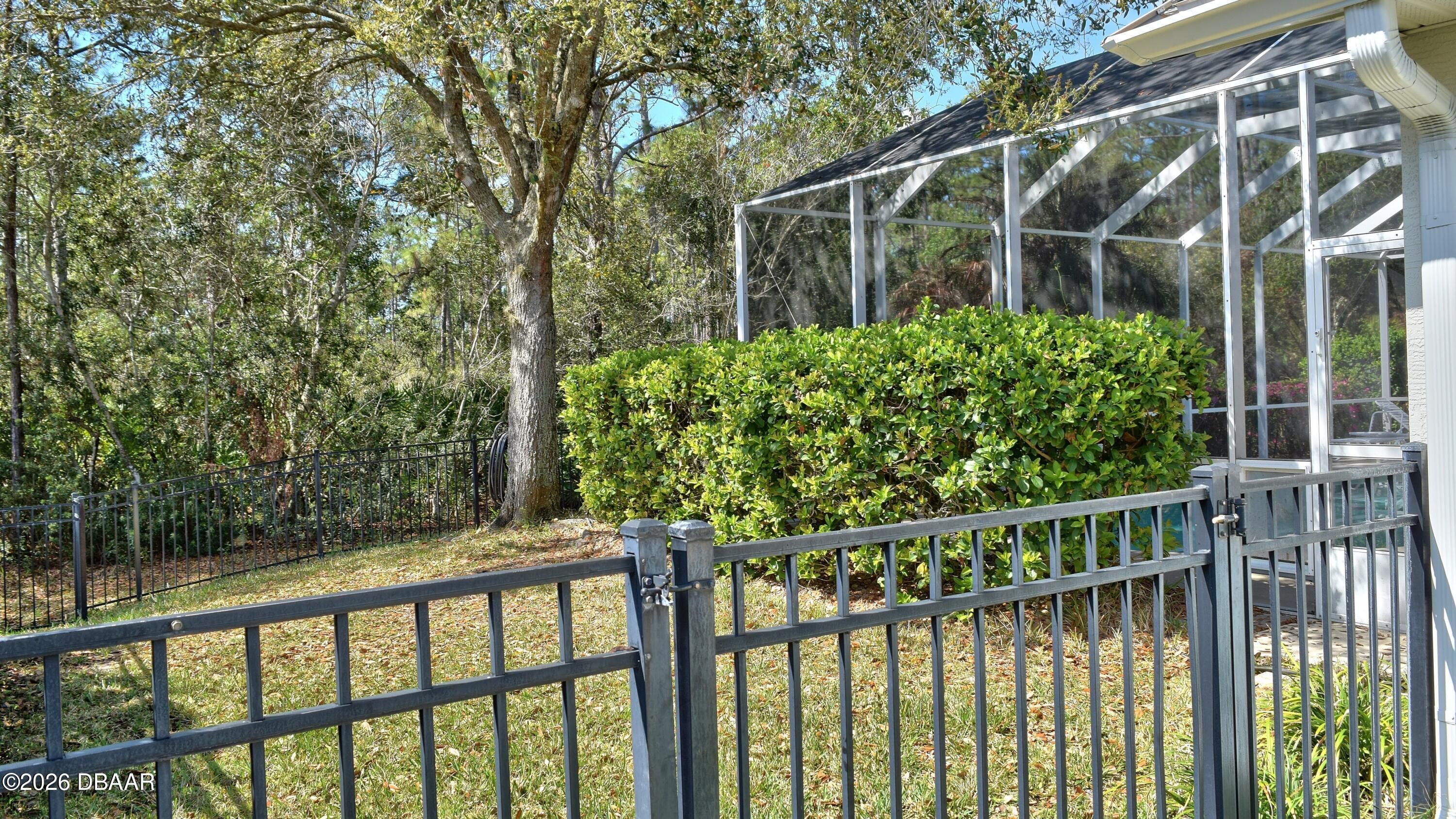 Welcome to your private Florida retreat! This spacious 4-bedroom, 2-bath concrete block pool home, with 2025 roof and many thoughtful, well-appointed updates, offers impressive curb appeal, highlighted by mature palm trees and a beautifully landscaped, private fenced backyard. For the buyer's enhanced peace of mind, seller will provide a 1-year home warranty for this beautiful home located in the highly desirable gated golf course community of Plantation Bay Golf & Country Club. Step inside the home into a light-filled interior featuring soaring 11-foot ceilings and an open great room with an abundance of natural light. Triple sliding glass doors frame views of the sparkling screened pool and create seamless indoor-outdoor living. Throughout the home you will appreciate the attractive neutral wall colors, 5¼-inch baseboards, tile and updated luxury vinyl plank flooring--no carpet! The eat-in kitchen features gorgeous, updated granite countertops, a subway tile backsplash, large single sink with high-end faucet, a walk-in pantry, breakfast bar, and a sunny breakfast nook surrounded by windows overlooking the pool--perfect for casual meals and entertaining family and friends. A separate dining room provides additional space for gatherings and special occasions. The thoughtfully designed split-bedroom floor plan offers privacy for both homeowners and guests. The generously sized primary suite is a personal retreat and features a tray ceiling, large walk-in closet with floor to ceiling wrap around closet organizer, and sliding glass doors providing direct access to the pool area. The en-suite bath includes double sinks, a walk-in shower, and a relaxing soaking tub. The additional bedrooms are welcoming for family or guests, with the fourth bedroom currently used as a home office. The updated, second bathroom features double sinks, attractive vanity with storage, and convenient, direct access to the pool. Step outside and relax on the screened lanai overlooking the refreshing pool and a peaceful fenced backyard that backs to lush trees for added privacy. An ideal space for outdoor relaxation and recreation. Seller has already taken care of major improvements! New roof (2025), AC (2021), water heater (2021), new fence (2021), painted interior and exterior (2021), LVP flooring (2021), kitchen appliances (2021), kitchen updates (2022), Second bath update (2022) and yard makeover(2022). Additional features include an irrigation system, whole-house water filtration system, electronic front door lock, garage storage racks, timer for exterior garage lights, and all new door handles / locksets inside and out, laundry room utility sink, and ceiling fans and updated light fixtures throughout! Residents may choose to join Plantation Bay Golf & Country Club (membership optional with additional fees) and enjoy an active lifestyle with 45 holes of golf, two clubhouses, including the new 30-million-dollar Founders clubhouse, on-site dining, a full-service spa and fitness center, tennis and pickle ball courts, and a resort-style pool and cabana bar. Plantation Bay is conveniently located near I-95 and only about 10 miles from the beach! Schedule your private showing today and learn more about the many distinctive features this fabulous home and incredible community have to offer!