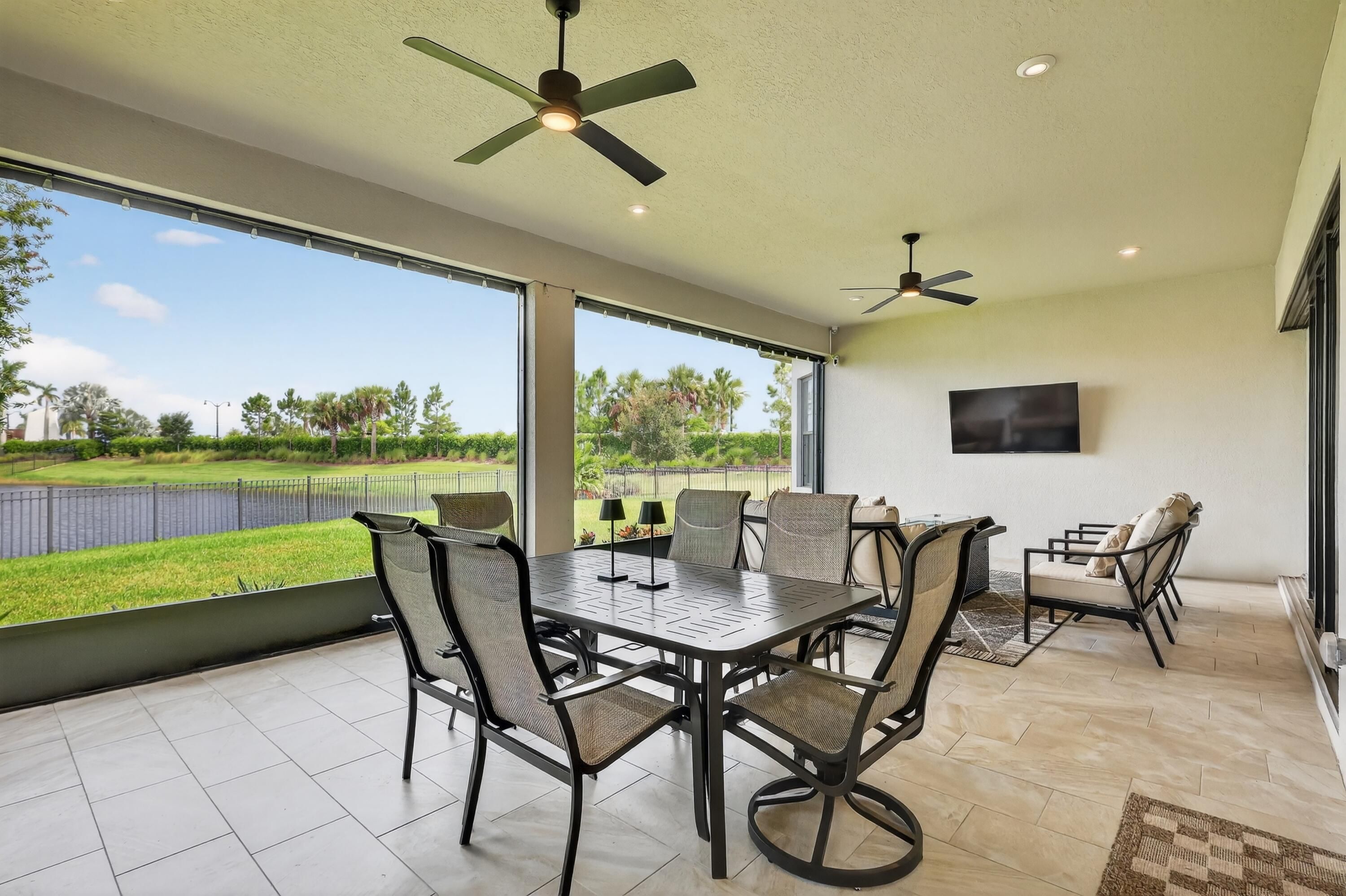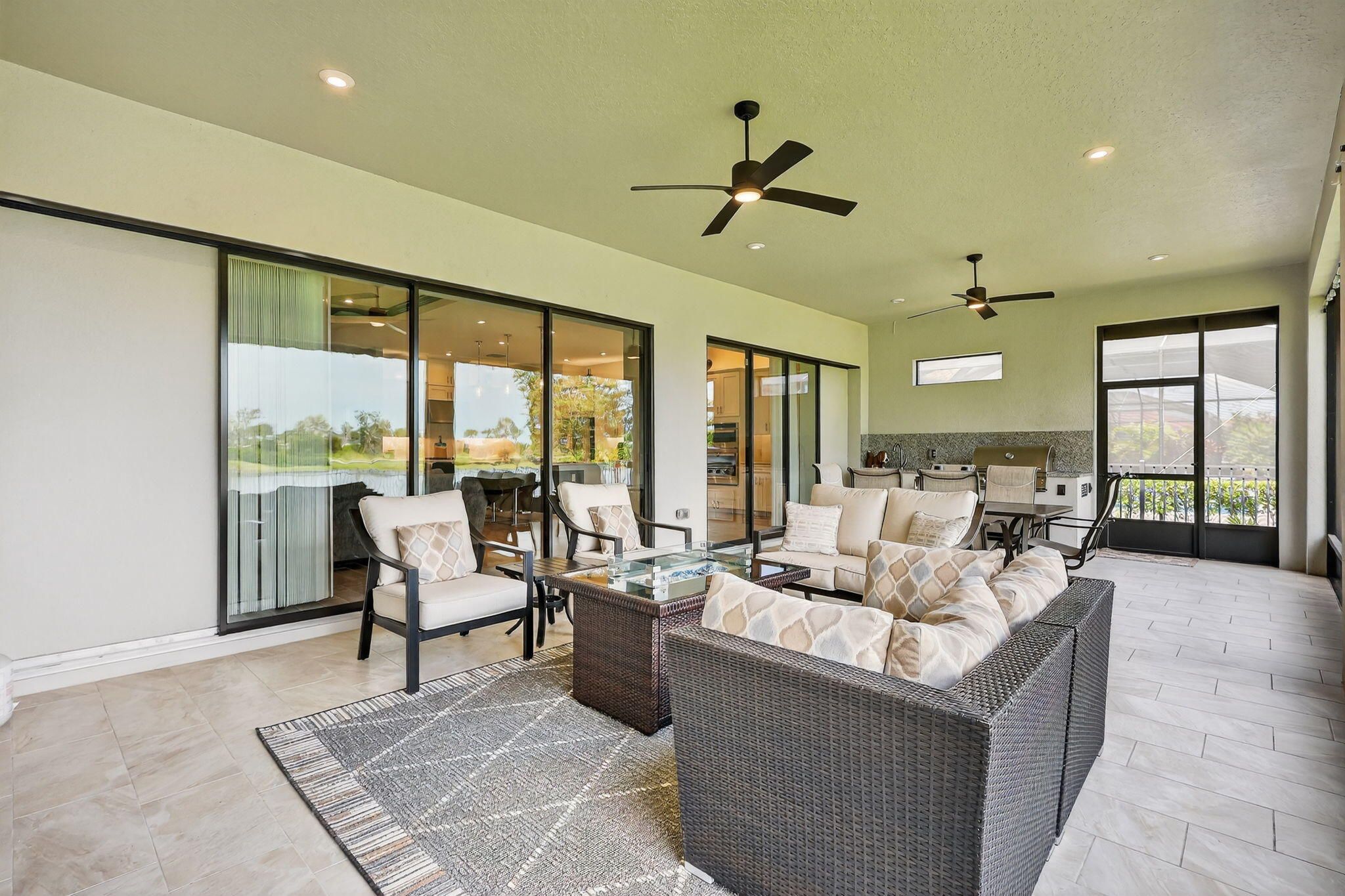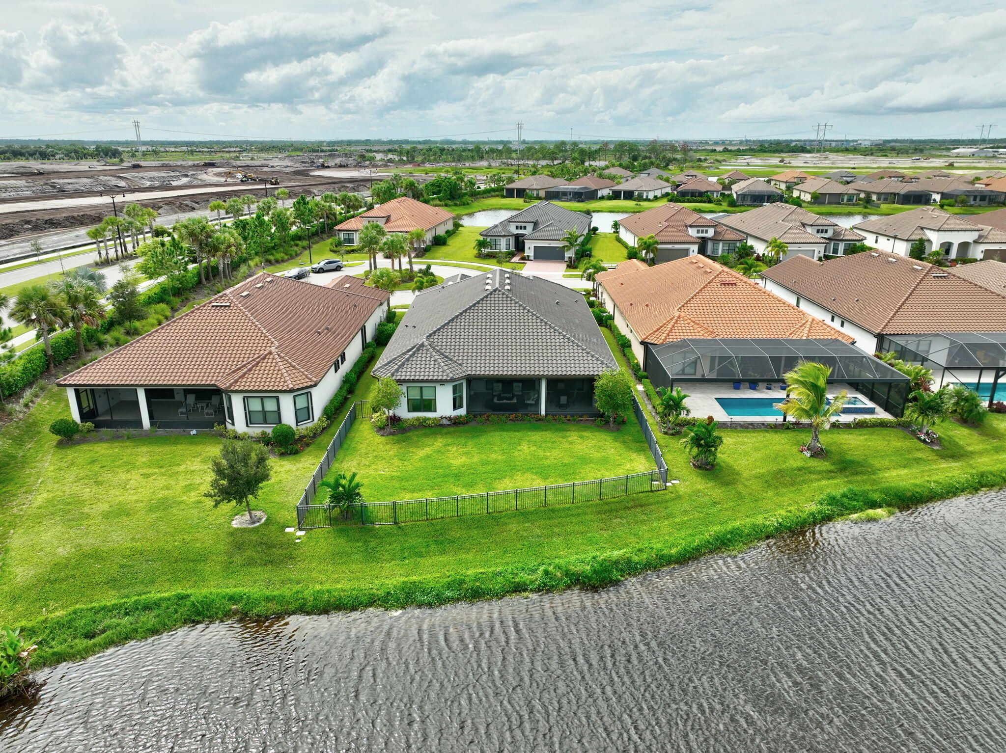 This home is a must see. Located toward the end of the cul-de-sac, this is one of the best waterfront lots in the community. Very private with no homes on opposite side of lake. This 3 year old extended Palazio model offers open concept. Owner added over $200,000 in upgrades and it shows. Gourmet extended kitchen, custom lighting, built-ins in office & laundry room, electric sliding door treatments & custom garage floor. Step out on the screened in Lanai with summer kitchen for entertaining. Rear yard is fenced for you & your pets enjoyment. Full list of upgrades available on request.Esplanade is a 55 plus community like no other. Concierge services for residents and a lifestyle coordinator for the activities. Enjoy the clubhouse, pool, spa, fitness center, tennis, pickle ball,