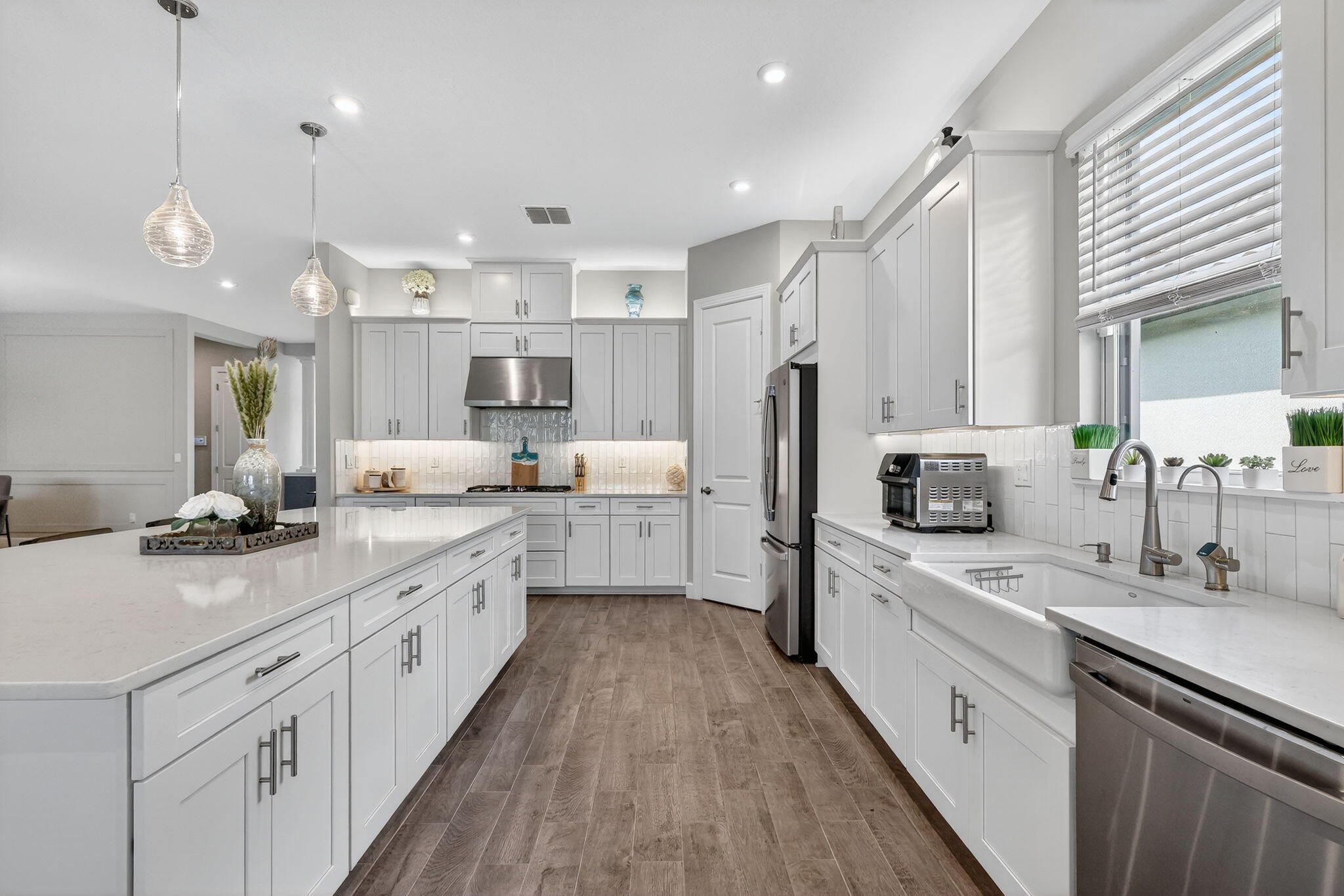- Electric Garage Door, Cooktop, Dishwasher, Disposal, Dryer, Microwave, Gas Range, Refrigerator, Kitchen Reverse Osmosis System, Smoke Detector, Washer, Gas Water Heater