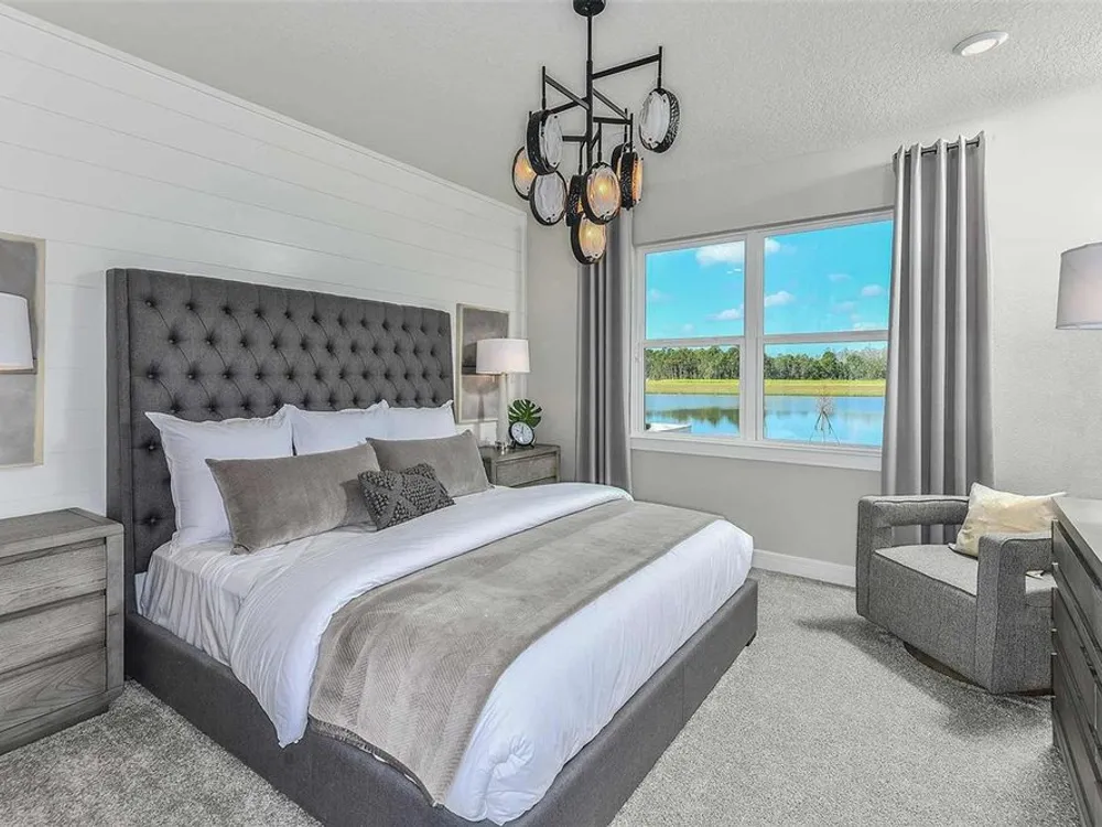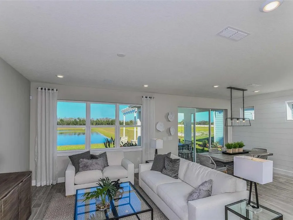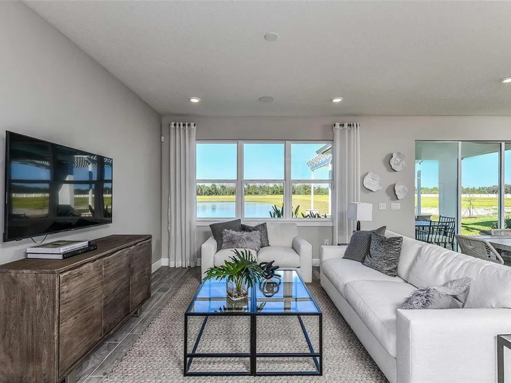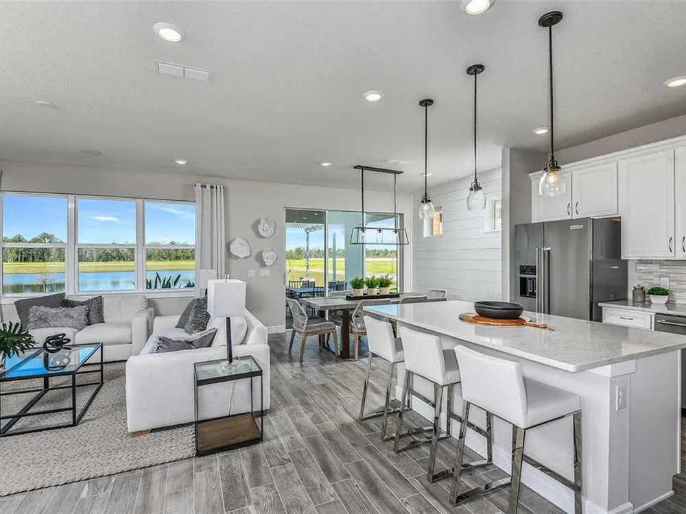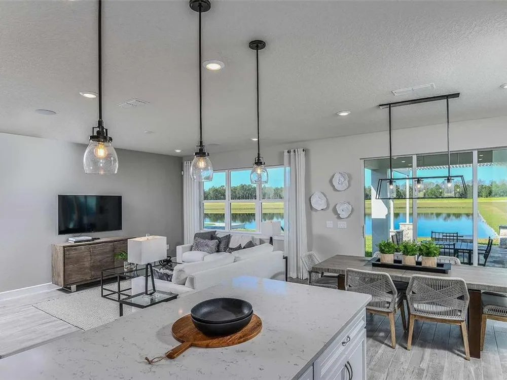 Under Construction. Del Webb at Minneola is a luxurious guard-gated 55+ active adult community offering new construction single-family homes in an unrivaled location on one of the highest peaks in Central Florida. Del Webb Minneola will offer an abundance of resort-style amenities with social events and activities planned by a full-time Lifestyle Director - centered in the stunning clubhouse which offers views of Sugarloaf Mountain. Planned community amenities include a zero-entry resort-style pool, in-ground heated spa, sports courts, on-site bar & grille with indoor and outdoor seating, a fitness center and walking/biking trails. Monthly HOA includes 1 GB high-speed internet, 75 streaming channels and your home's yard maintenance. Visit today to learn more and see for yourself why Del Webb Minneola is the absolute best place to call home! Welcome to the Prosperity model by Del Webb, featuring a Sunroom plus covered lanai and extended patio and that it sits on a beautiful oversized corner homesite with truly unexpected views of Lake Apopka from every east facing window! This stunning single-story home offers 2 spacious bedrooms, an enclosed flex room, and 2 beautifully appointed bathrooms. The heart of the home is the brand-new kitchen, showcasing elegant Dana Frost cabinetry paired with Lagoon Quartz countertops. Enjoy the functionality and beauty of upgraded stainless Whirlpool steel appliances, including a refrigerator and a gas range, all highlighted by stylish tile backsplash, an upgraded single-bowl sink and faucet, and pendant pre-wiring for that touch of sophistication. The open-concept design seamlessly flows into the gathering room, making this space perfect for both cooking and socializing. The spacious kitchen island is ideal for meal prep or casual dining, while the extended covered lanai just outside invites effortless indoor-outdoor living. The private owner's suite, located at the rear of the home for ultimate privacy, offers a serene escape with an en suite bathroom featuring quartz-topped dual vanity sinks and a walk-in shower with luxurious tile. At the front of the home, the spare bedroom, bathroom- featuring its own walk-in shower, and versatile flex room ensure that everyone has their own space. Wood-look luxury vinyl plank flooring spans the home, providing both style and durability, with porcelain tile in the laundry room and bathrooms for a sleek, modern touch. The laundry room itself offers both style and convenience. From the brushed nickel hardware finishes to the tall Cheyenne style interior doors, no detail is overlooked. This home also comes equipped with a variety of modern conveniences, including a smart thermostat and doorbell, additional LED downlights, and a washer and dryer. Comfort height toilets, faux wood blinds, and Sherwin Williams interior paint add both style and ease to daily living. With its exceptional design, sophisticated finishes, and smart features, this Prosperity home is the epitome of both comfort and luxury—perfectly tailored to fit your lifestyle.