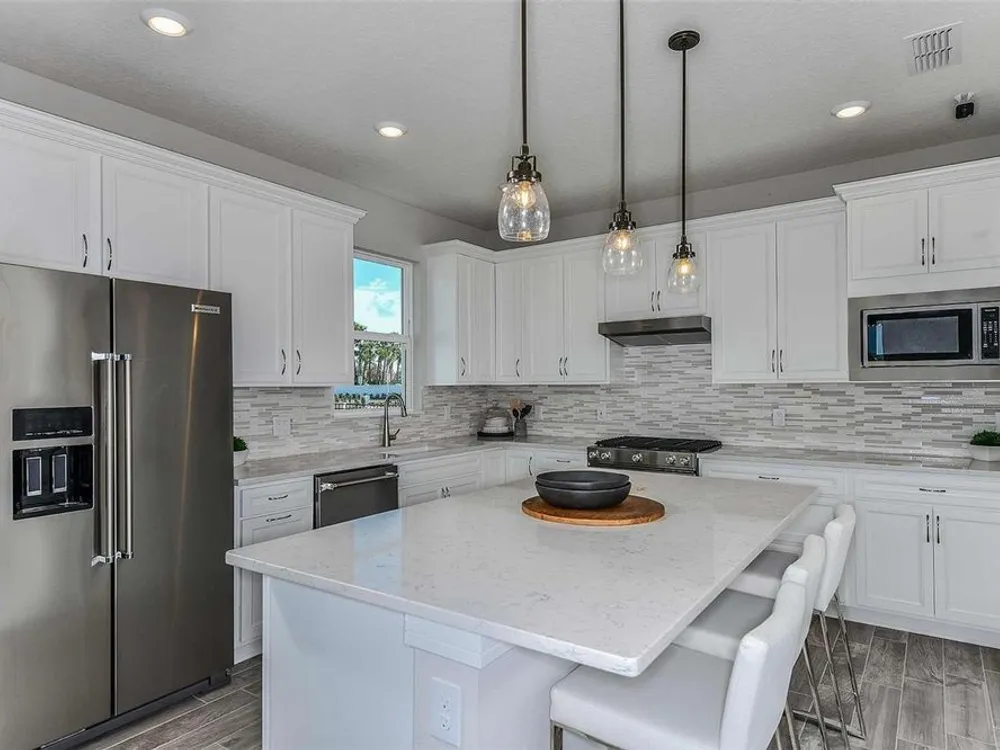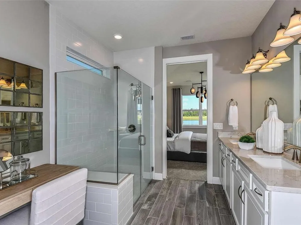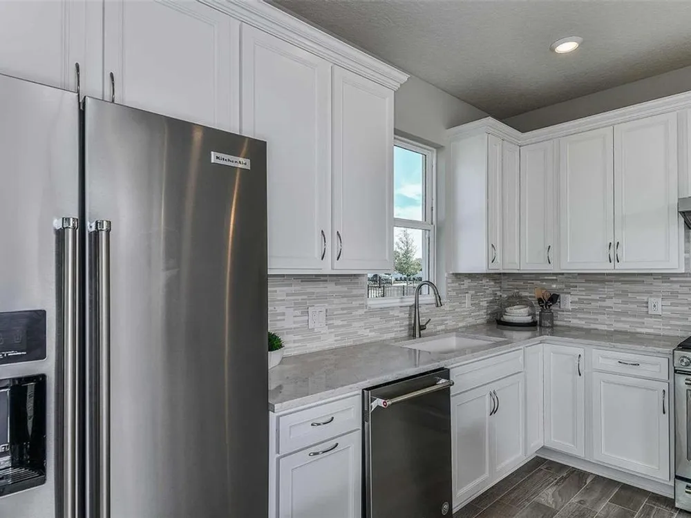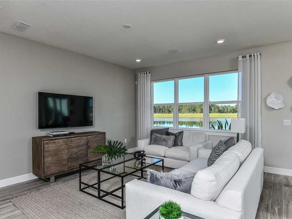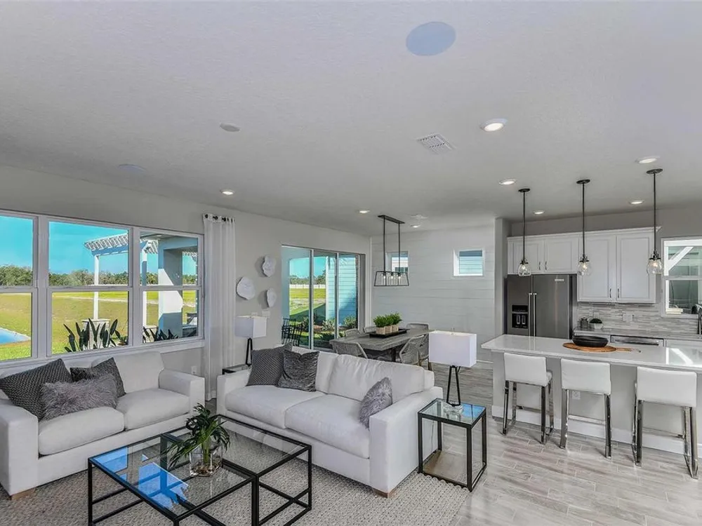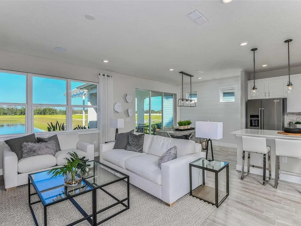 Under Construction. Del Webb at Minneola is a luxurious guard-gated 55+ active adult community offering new construction single-family homes in an unrivaled location on one of the highest peaks in Central Florida. Del Webb Minneola will offer an abundance of resort-style amenities with social events and activities planned by a full-time Lifestyle Director - centered in the stunning clubhouse which offers views of Sugarloaf Mountain. Planned community amenities include a zero-entry resort-style pool, in-ground heated spa, sports courts, on-site bar & grille with indoor and outdoor seating, a fitness center and walking/biking trails. Monthly HOA includes 1 GB high-speed internet, 75 streaming channels and your home's yard maintenance. Visit today to learn more and see for yourself why Del Webb Minneola is the absolute best place to call home! Welcome to the Prosperity model by Del Webb, featuring a Sunroom plus covered lanai and extended patio and that it sits on a beautiful oversized corner homesite with truly unexpected views of Lake Apopka from every east facing window! This stunning single-story home offers 2 spacious bedrooms, an enclosed flex room, and 2 beautifully appointed bathrooms. The heart of the home is the brand-new kitchen, showcasing elegant Dana Frost cabinetry paired with Lagoon Quartz countertops. Enjoy the functionality and beauty of upgraded stainless Whirlpool steel appliances, including a refrigerator and a gas range, all highlighted by stylish tile backsplash, an upgraded single-bowl sink and faucet, and pendant pre-wiring for that touch of sophistication. The open-concept design seamlessly flows into the gathering room, making this space perfect for both cooking and socializing. The spacious kitchen island is ideal for meal prep or casual dining, while the extended covered lanai just outside invites effortless indoor-outdoor living. The private owner's suite, located at the rear of the home for ultimate privacy, offers a serene escape with an en suite bathroom featuring quartz-topped dual vanity sinks and a walk-in shower with luxurious tile. At the front of the home, the spare bedroom, bathroom- featuring its own walk-in shower, and versatile flex room ensure that everyone has their own space. Wood-look luxury vinyl plank flooring spans the home, providing both style and durability, with porcelain tile in the laundry room and bathrooms for a sleek, modern touch. The laundry room itself offers both style and convenience. From the brushed nickel hardware finishes to the tall Cheyenne style interior doors, no detail is overlooked. This home also comes equipped with a variety of modern conveniences, including a smart thermostat and doorbell, additional LED downlights, and a washer and dryer. Comfort height toilets, faux wood blinds, and Sherwin Williams interior paint add both style and ease to daily living. With its exceptional design, sophisticated finishes, and smart features, this Prosperity home is the epitome of both comfort and luxury—perfectly tailored to fit your lifestyle.