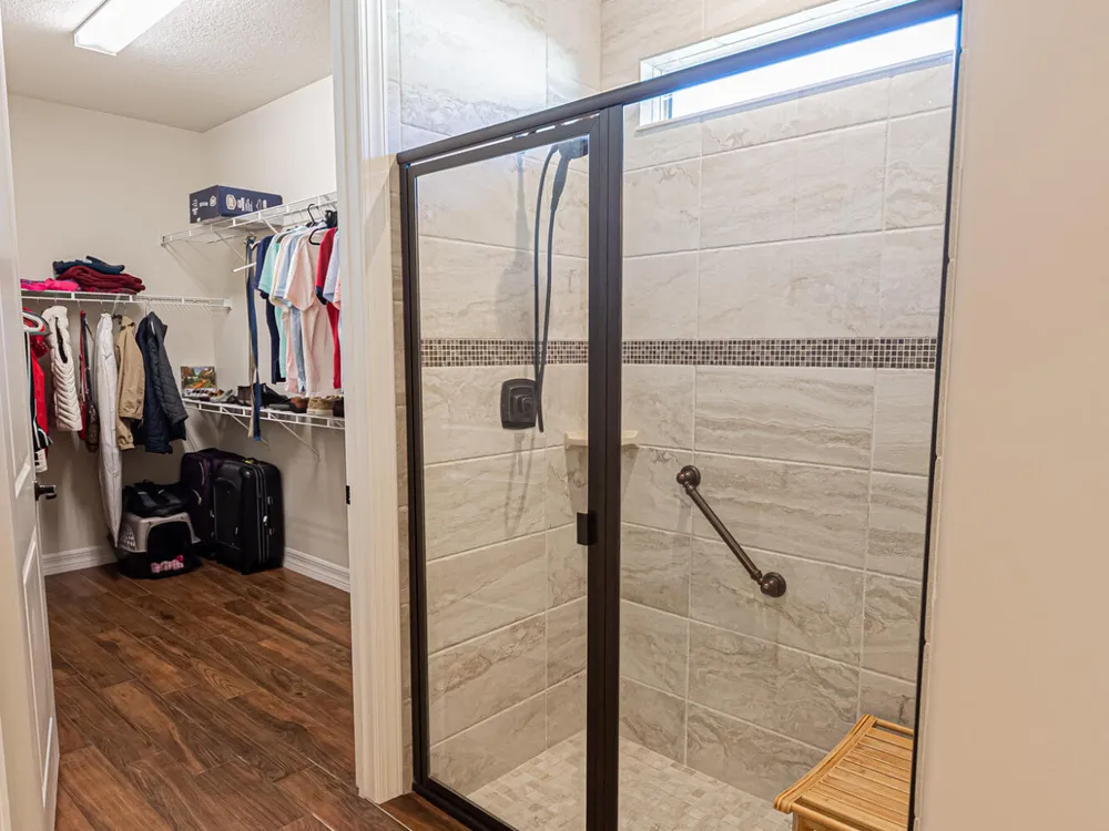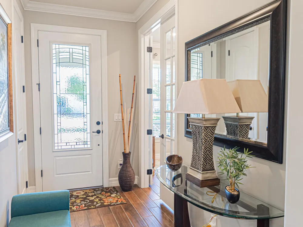 - Entry Level Living Area, Entrance Foyer, French Door(s)/Atrium Door(s), Kitchen Island, Pantry, Split Bedrooms, Walk-In Closet(s), Home Office, Great Room, Living/Dining Room, Snack Bar, Blinds, Drapes, Impact Glass, Sliding Window(s), Window Vertical(s), Dual Sinks, Primary Downstairs, Separate Shower, Washer/Dryer Hookup
