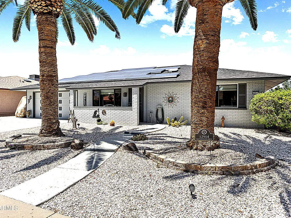 A great opportunity in Sun City West. You will be amazed at what you can have for this price. It feels like home the moment you walk in. AC was replaced in 2025. Roof is 5 years old. Solar for energy savings. Plus, a bright and open reconfigured kitchen with granite countertops, pendant lights, and 5-burner stove, plus extra cabinets and beautiful stained-glass doors in the corner area. Abundant space for dining in the great room. 2 bedrooms and 2 modern baths with updated showers. The inside laundry has extra storage cabinets and room for a study or doing crafts. Backyard that's begging for BBQs. Located in the middle of a quiet area and waiting for the lucky new owners to discover it.