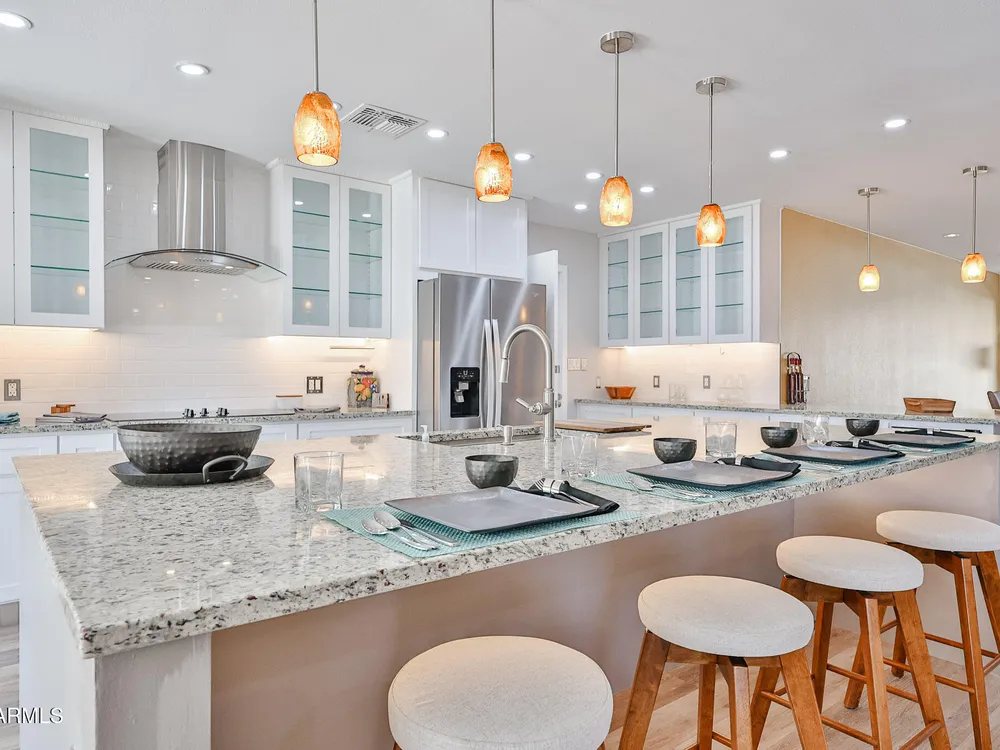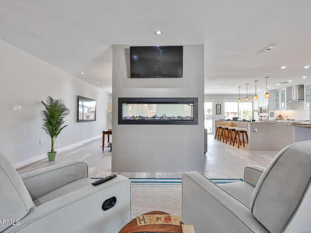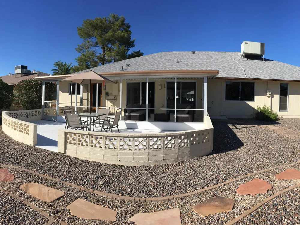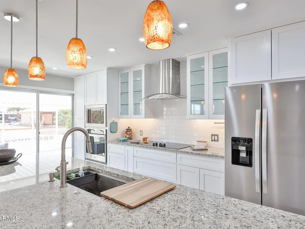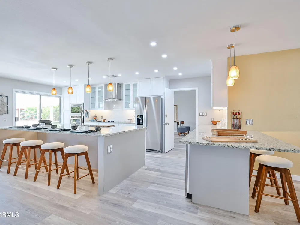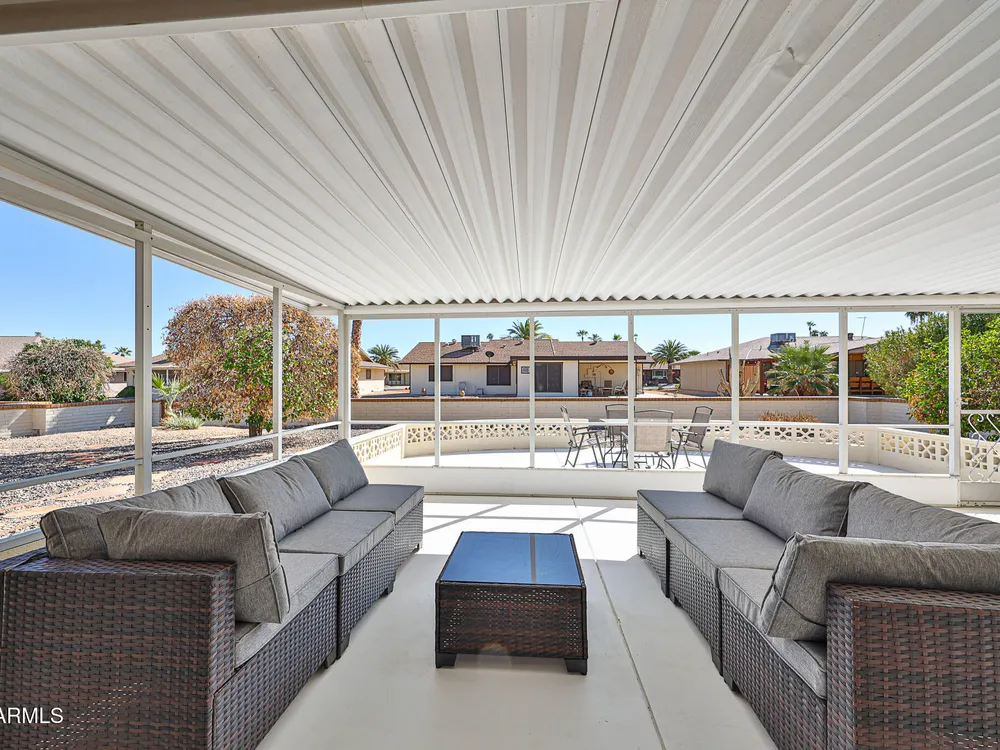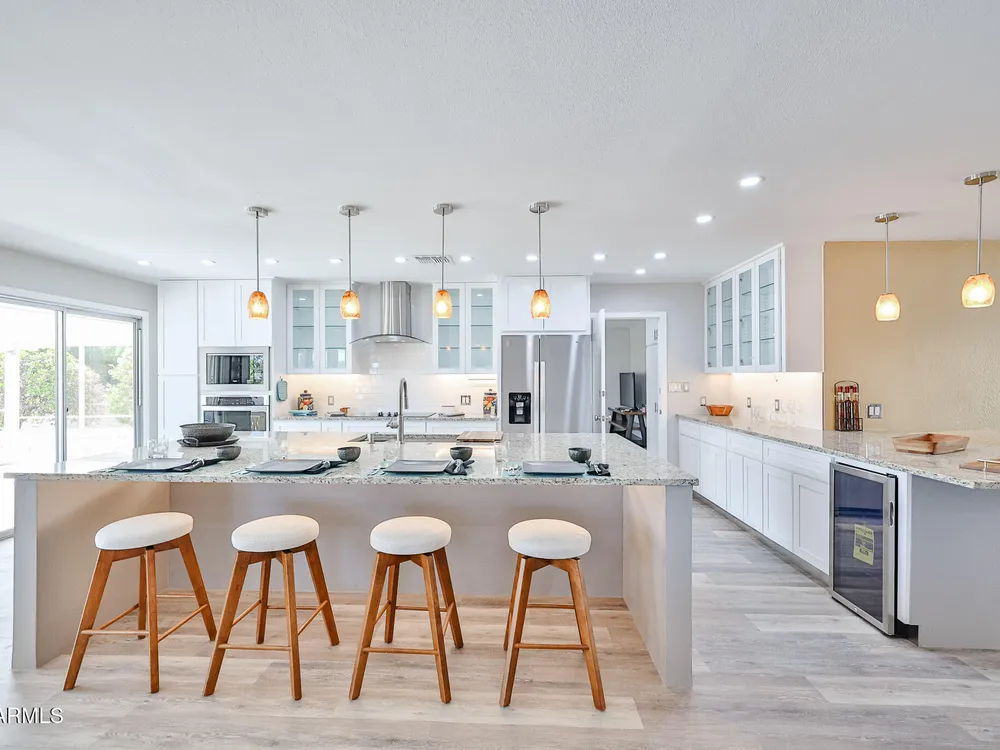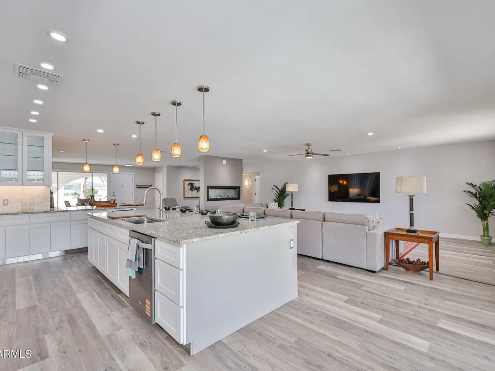 A one of a kind must see extensive whole home remodel in Sun City West LOADED with CUSTOM features & upgrades throughout; Huge Kitchen featuring grand 10ft Island, long Peninsula dry-bar area with beverage refrigerator, floor-to-ceiling Pantry with sliding pull-out Shelves, and stainless Appliances; Oversized Great Room with two-sided electric Fireplace; Bathrooms: Primary with custom Walk-in curb less Shower, floor-to-ceiling Glass, Rainfall Shower Head, and double-Vanity Sinks; Guest with custom shower & bathtub, Rainfall Shower Head: both bathrooms have large Wall Niche with Lighting Accents; Primary Bedroom & Guest Bedroom en suites with walk-in closets, and 3rd Bedroom/2nd Primary Den with Double Door Entry; Enormous Flex room; Low-maintenance Luxury Vinyl Plank Flooring throughout. Epoxy Coated Garage Floor, Driveway, and Flat work, Covered Patios, Multiple Custom Oak Oversized Barn Doors, New Interior & Exterior Paint, Wood Baseboard & Casing, Brushed Nickel Hardware, and Newer Roof - See Bonus List in Document Section for full list of Included Upgrades. Optional Upgrades Include: Custom Flex Room & Laundry Design / Installs - Cabinets, Shelves, Organizers, etc... Custom Closet Design / Installs - Shelves, Rods, Organizers, etc... Custom Entertainment Centers, Shelves, & TV Niches Custom Outdoor Living Areas & Architectural Landscaping Custom Home Security System Custom Garage and Storage Cabinets Cabinet Accessories - Pullouts, Trays, Racks Personalize the home!