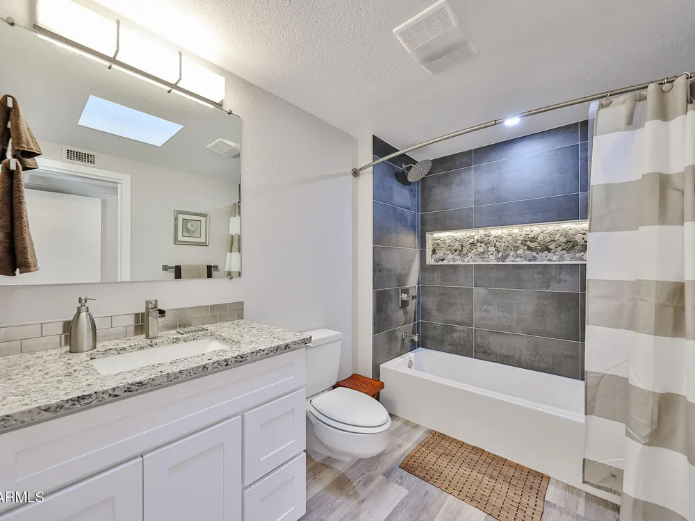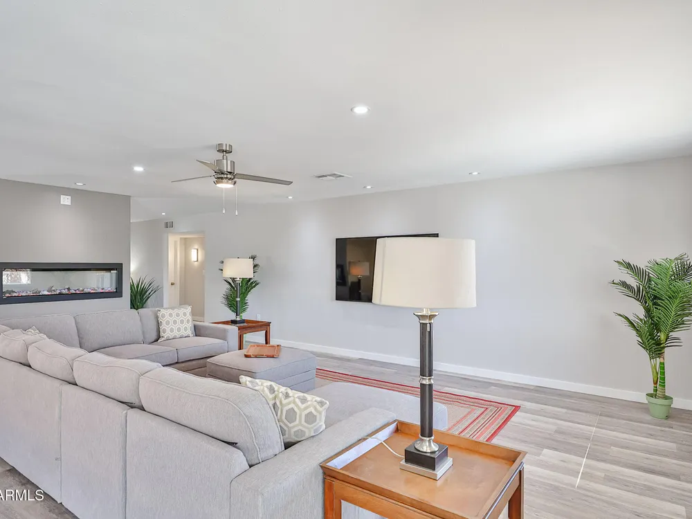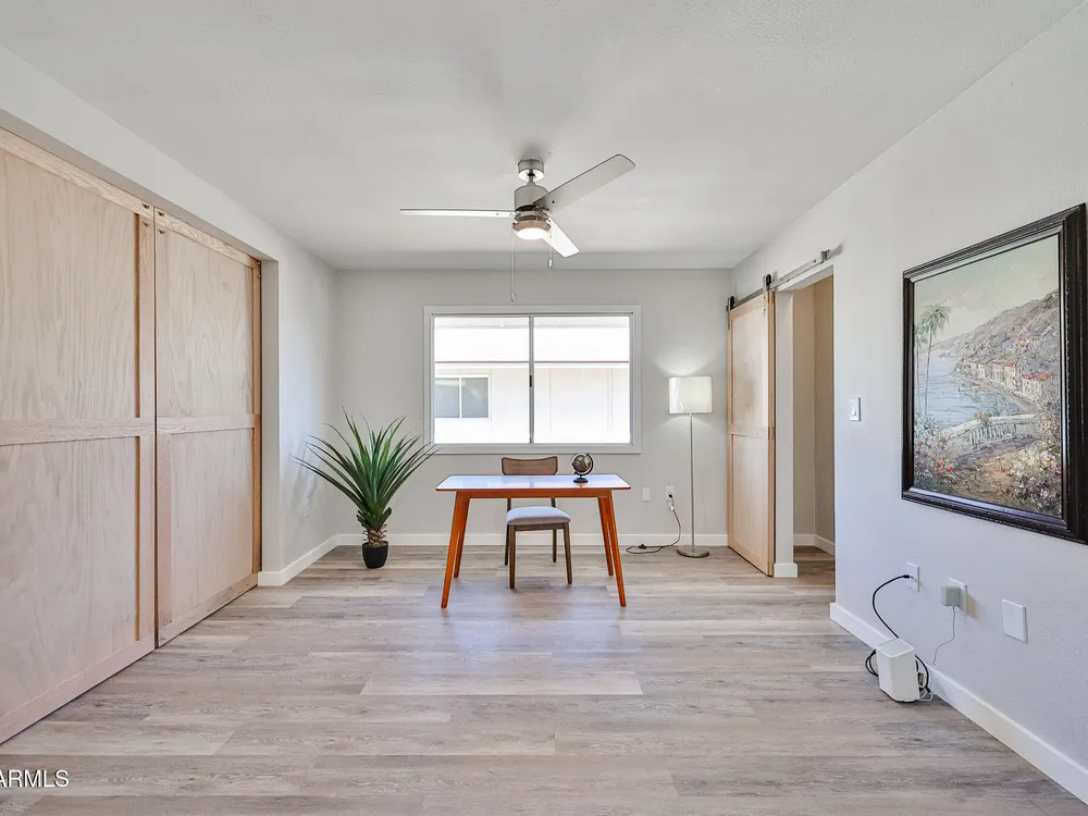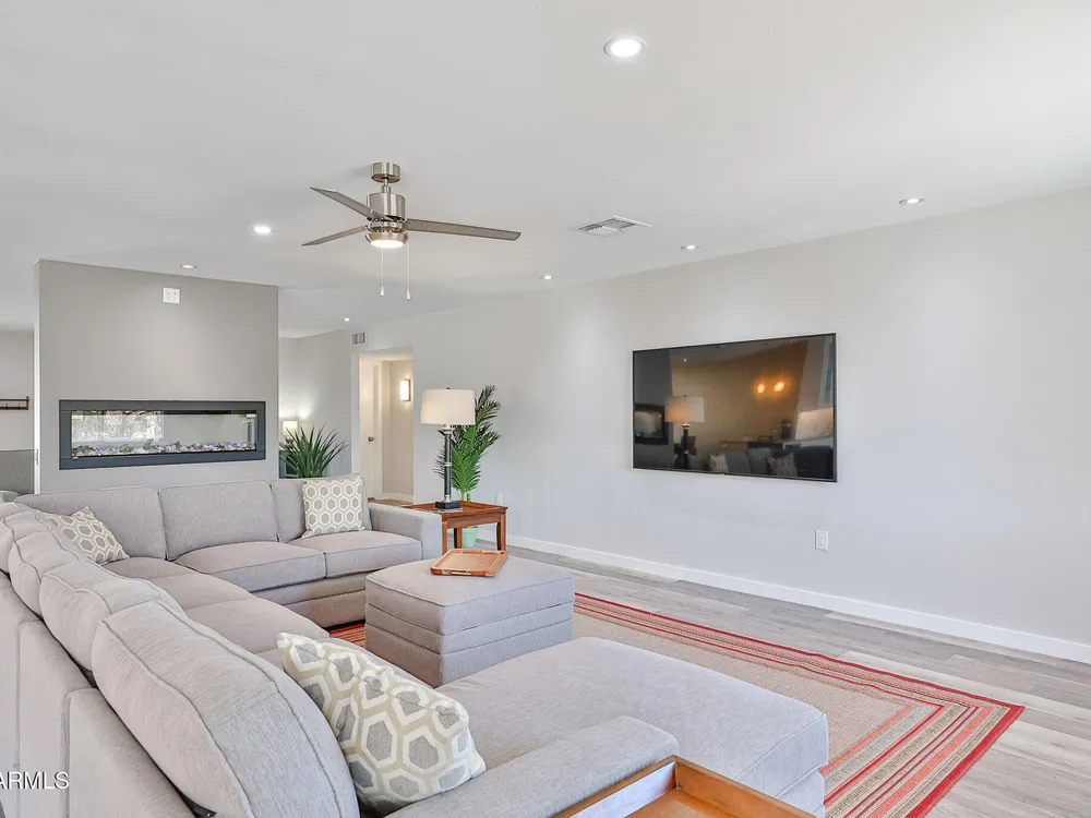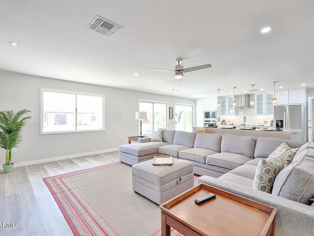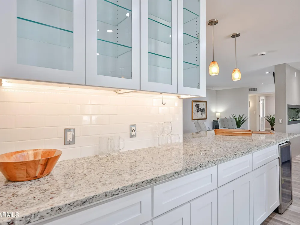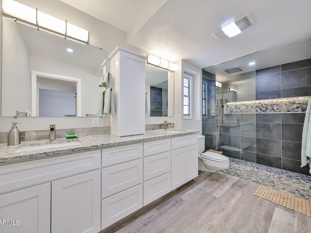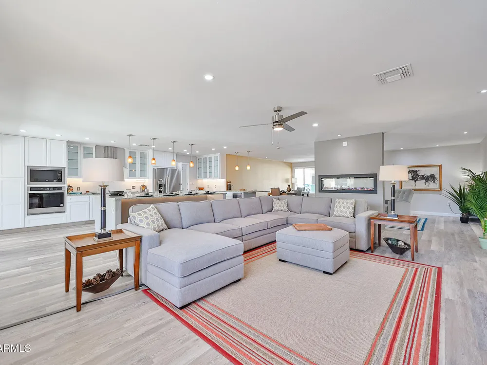 A one of a kind must see extensive whole home remodel in Sun City West LOADED with CUSTOM features & upgrades throughout; Huge Kitchen featuring grand 10ft Island, long Peninsula dry-bar area with beverage refrigerator, floor-to-ceiling Pantry with sliding pull-out Shelves, and stainless Appliances; Oversized Great Room with two-sided electric Fireplace; Bathrooms: Primary with custom Walk-in curb less Shower, floor-to-ceiling Glass, Rainfall Shower Head, and double-Vanity Sinks; Guest with custom shower & bathtub, Rainfall Shower Head: both bathrooms have large Wall Niche with Lighting Accents; Primary Bedroom & Guest Bedroom en suites with walk-in closets, and 3rd Bedroom/2nd Primary Den with Double Door Entry; Enormous Flex room; Low-maintenance Luxury Vinyl Plank Flooring throughout. Epoxy Coated Garage Floor, Driveway, and Flat work, Covered Patios, Multiple Custom Oak Oversized Barn Doors, New Interior & Exterior Paint, Wood Baseboard & Casing, Brushed Nickel Hardware, and Newer Roof - See Bonus List in Document Section for full list of Included Upgrades. Optional Upgrades Include: Custom Flex Room & Laundry Design / Installs - Cabinets, Shelves, Organizers, etc... Custom Closet Design / Installs - Shelves, Rods, Organizers, etc... Custom Entertainment Centers, Shelves, & TV Niches Custom Outdoor Living Areas & Architectural Landscaping Custom Home Security System Custom Garage and Storage Cabinets Cabinet Accessories - Pullouts, Trays, Racks Personalize the home!