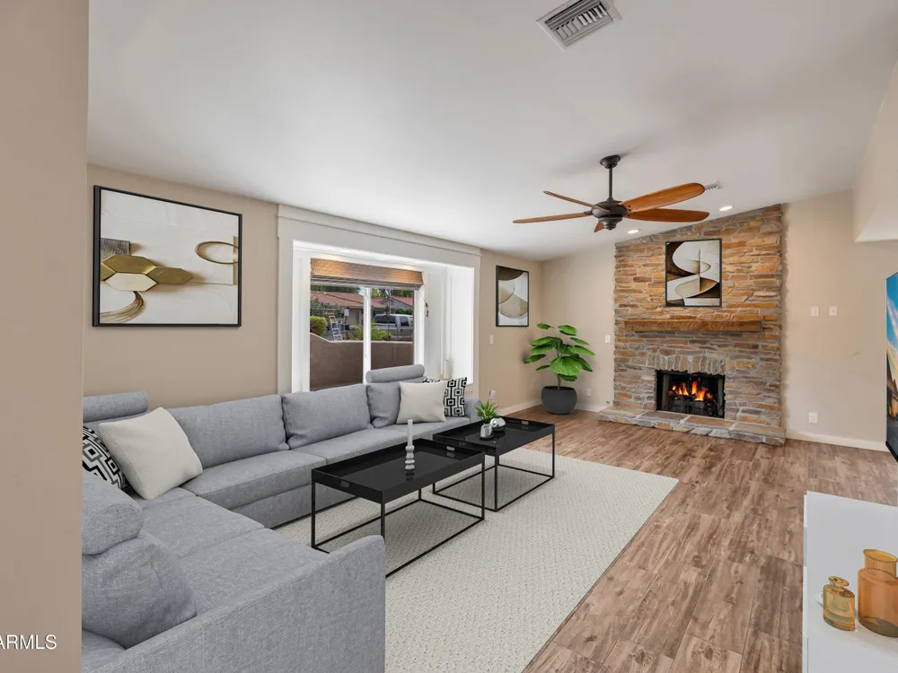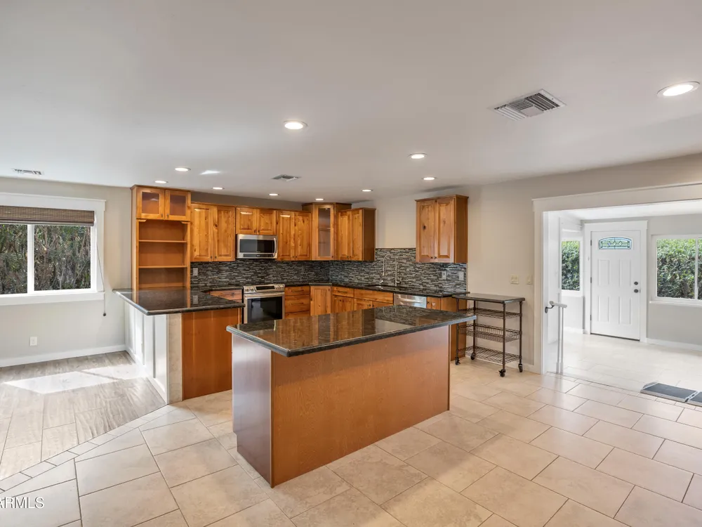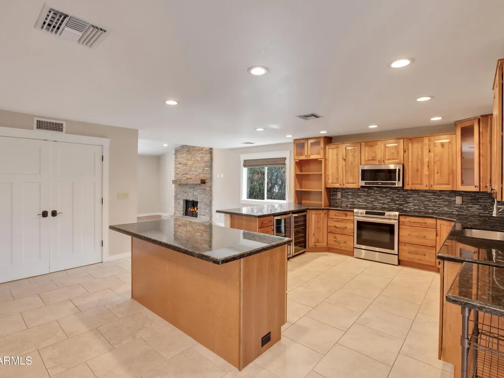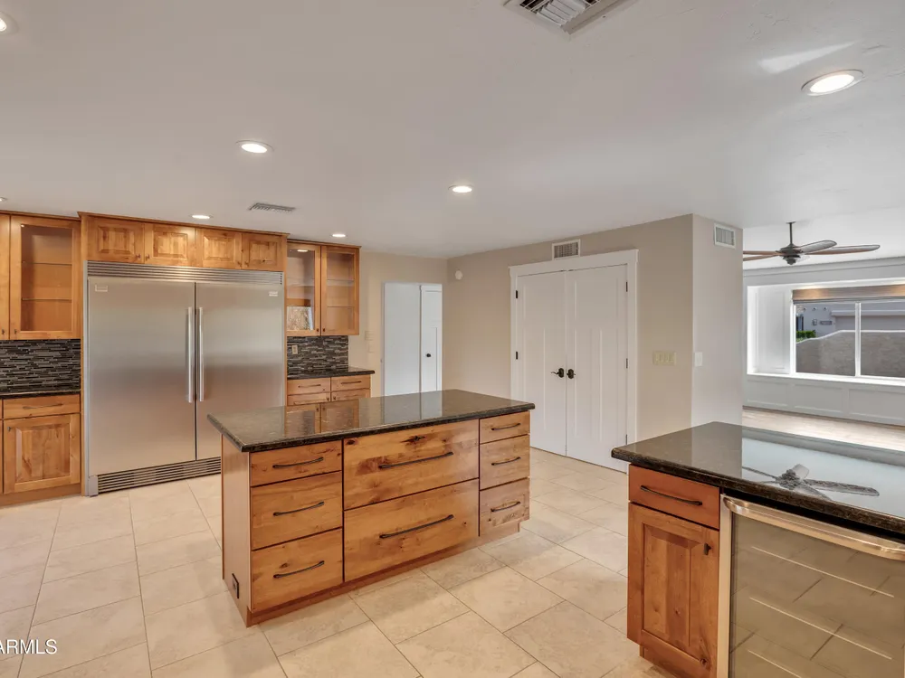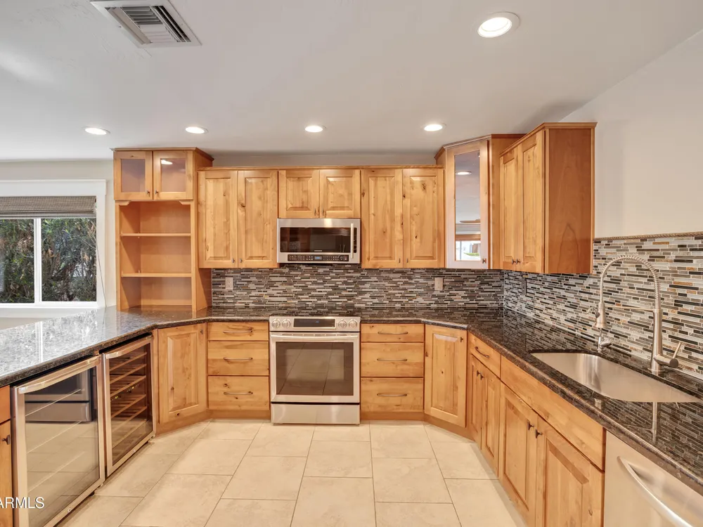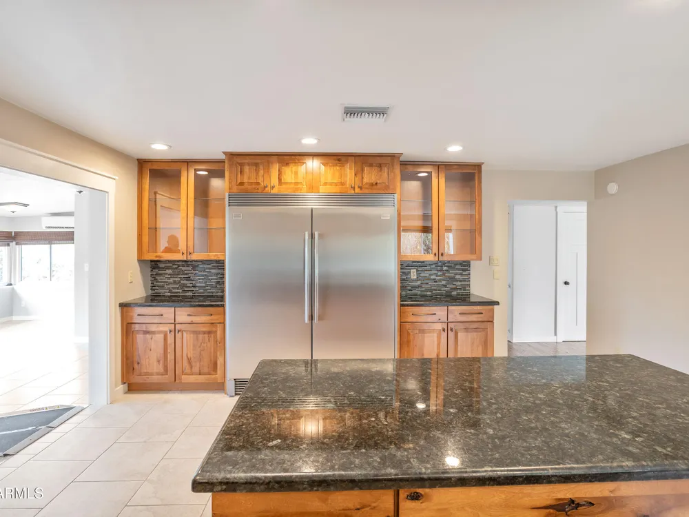 Remarkable Custom Remodel - A ''New'' Home Experience! Every inch of this home has been meticulously reimagined with high-end, custom upgrades—perfect for the most discerning buyer. Interior Highlights: Gourmet Chef's Kitchen - The heart of the home! KraftMaid Dakota Rustic Birch cabinetry (solid plywood, Praline finish) Verde Peacock granite countertops Custom glass & stone backsplash Deep single-bowl stainless steel sink w/restaurant-style faucet Huge island with breakfast bar seating, deep drawers & custom roll-outs Professional-grade stainless steel appliances: Frigidaire Sub-Zero-style fridge/freezer SS wine cooler & beverage fridge Convection oven, microwave, - See Supplemental for complete Description. ( Remarkable Custom Remodel - A "New" Home Experience! ( Every inch of this home has been meticulously reimagined with high-end, custom upgradesperfect for the most discerning buyer. á Interior Highlights: Gourmet Chef's Kitchen - The heart of the home! KraftMaid Dakota Rustic Birch cabinetry (solid plywood, Praline finish) Verde Peacock granite countertops Custom glass & stone backsplash Deep single-bowl stainless steel sink w/restaurant-style faucet Huge island with breakfast bar seating, deep drawers & custom roll-outs Professional-grade stainless steel appliances: Frigidaire Sub-Zero-style fridge/freezer SS wine cooler & beverage fridge Convection oven, microwave, and KitchenAid dishwasher Lighted display cabinets, open bookshelf cabinet Luxurious Flooring Throughout Brick-lay stone porcelain tile in kitchen, family, and laundry rooms Wide plank hand-scraped hickory wood-look porcelain in living areas & bedrooms State-of-the-Art HVAC Lennox XC25 A/C with I Comfort Wi-Fi touchscreen thermostat Lennox mini-split systems (family room & garage) New insulated ductwork + air return ducts in every room New insulation throughout key areas for energy efficiency Spa-Inspired Bathrooms KraftMaid vanities with granite countertops: Verde Peacock in Primary Black Galaxy in Hall Bath Custom glass-enclosed walk-in showers with porcelain tile and niches Dual walk-in closets with organizers (primary suite) Premium fixtures: faucets, sinks, mirrors, towel bars Additional Interior Features Craftsman-style solid core panel doors & trim New recessed lighting, fans, electrical, drywall, and paint New picture window with built-in bench seat & storage Wood/gas burning Rocky Mountain Stone fireplace with hearth and mantle Dedicated laundry room with natural light, abundant cabinetry, broom closet, double pantry w/commercial mobile shelving =à Garage & Storage Galore: Insulated walls & new Wayne Dalton garage door Whole-garage vacuum system Pull-down attic stairs w/storage Built-in shelves & work area Exterior Features: New flat-style tile roof with underlayment 6" Sun Valley gutters with rain chains & downspouts Low-E Argon gas windows throughout New front paver patio with privacy wall & First Impressions gates Hand-scraped accent Viga post Over 1,500 sq ft of private front & rear patios with shade pergola New back patio door, ideal for seamless indoor-outdoor living New Death Valley sun screens This home is move-in ready and offers the luxury, efficiency, and design of a brand-new build without the wait. Don't miss this one-of-a-kind opportunity!
