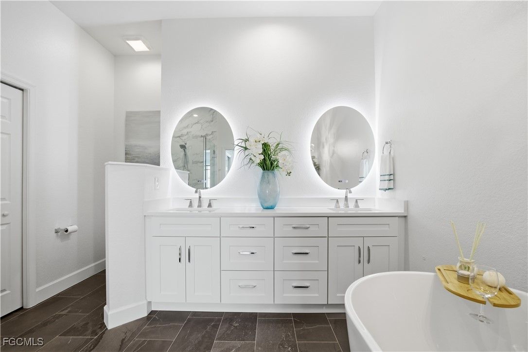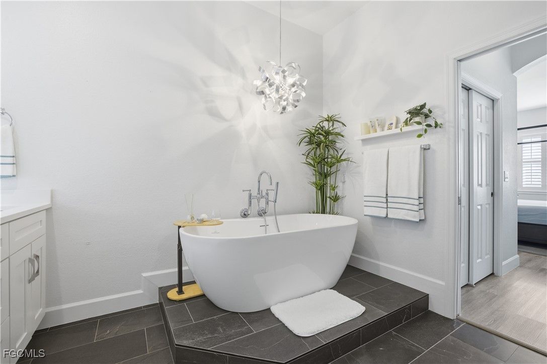 Once in a great while, an exceptional property becomes available—this is one of those rare moments. This stunning, “fully renovated” 3 bedroom coach home is being offered turnkey with furnishings that are anything but ordinary. Nearly 2,200 sq. ft. of beautifully designed living space includes 2.5 baths, a private den, and a spa-like primary suite you’ll never want to leave. Nestled in The Plantation, one of Southwest Florida’s most desirable communities, this home enjoys easy walkability to the resort-style amenities and the optional private 18-hole golf course, making it truly exceptional. The kitchen boasts a high-end induction range, all new 2022 appliances, quartz countertops and matching backsplash, a touchless sink, and turnkey dinnerware. Designer furnishings include a unique expandable glass kitchen table, large dining table with custom fabric chairs, beautiful buffet, and exceptional artwork throughout. Plantation shutters accent every window. Step into the primary bath where a floor-to-ceiling tiled frameless glass enclosed walk-in shower, stylish lighted mirrors, premium bath fixtures, and a luxurious soaking tub beneath a beautiful chandelier create a spa-inspired space to relax and recharge. Additional features include all new premium LED lighting, all new fans, dimmer switches for mood lighting, luxury plank/tile/carpet flooring, crown molding in tray ceilings, Wi-Fi thermostat and security, and a two-car garage with cabinets and shelving, two Trek bikes and gas BBQ grill. Perfect for both everyday living and entertaining, this home features a private lanai with new ceiling fans, screens, tile flooring, stylish furniture with tranquil water views and a beautiful preserve that offer peace and privacy on the end of a quiet cul-de-sac street. Its ideal location near the airport, beaches, and great shopping makes it convenient for full-time or seasonal living. If you’ve been searching for the perfect Southwest Florida home—look no further!