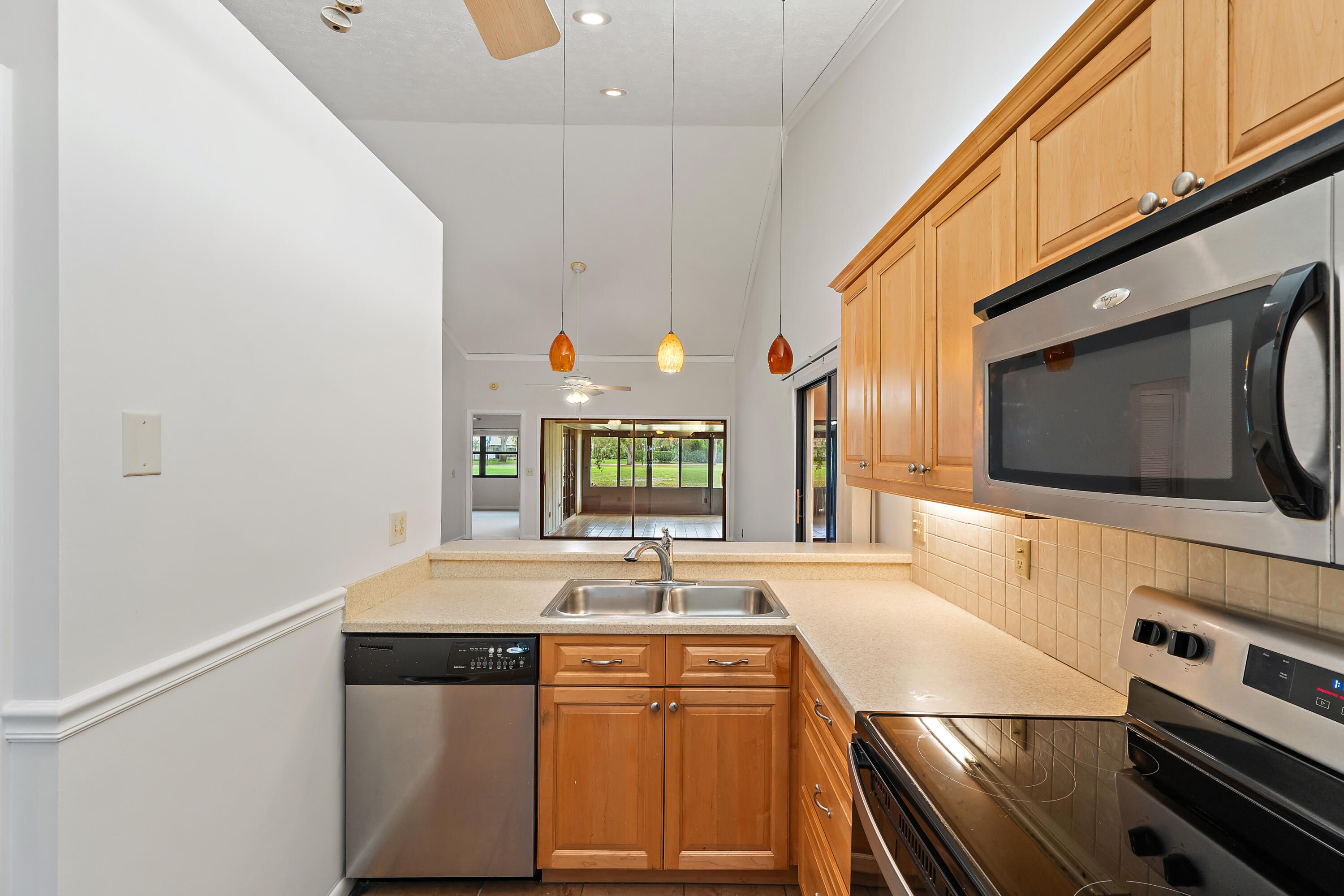 Welcome to this charming 2-bedroom, 2-bath single-family home located in the desirable 55+ golf community of Eaglewood in Hobe Sound. Thoughtfully maintained and updated, this residence offers peace of mind with a new roof in 2023, HVAC system 2018, hot water heater 2024, and a combination of impact glass and accordion shutters for hurricane protection. Set directly on the golf course, the home enjoys scenic fairway views from both the primary bedroom and the enclosed air-conditioned patio—creating the perfect backdrop for morning coffee or evening relaxation. Inside, the kitchen features light oak cabinetry paired with stainless steel appliances for a warm and functional feel. Eaglewood residents enjoy a vibrant, resort-style lifestyle with a monthly fee of just $599, which includes all amenties and unlimited golf. Residents enjoy a clubhouse with commercial kitchen, 18-hole executive golf course and putting green, large heated pool and spa, tennis, bocce courts, dog park, golf pro shop, and covered outdoor grilling areas. On-site staff handle administration, maintenance, and golf operations, and the community calendar is full of tournaments, socials, BBQs, and other activities for those who enjoy a lively, friendly atmosphere. All of this just minutes from Hobe Sound's beaches, dining, and everyday conveniences.