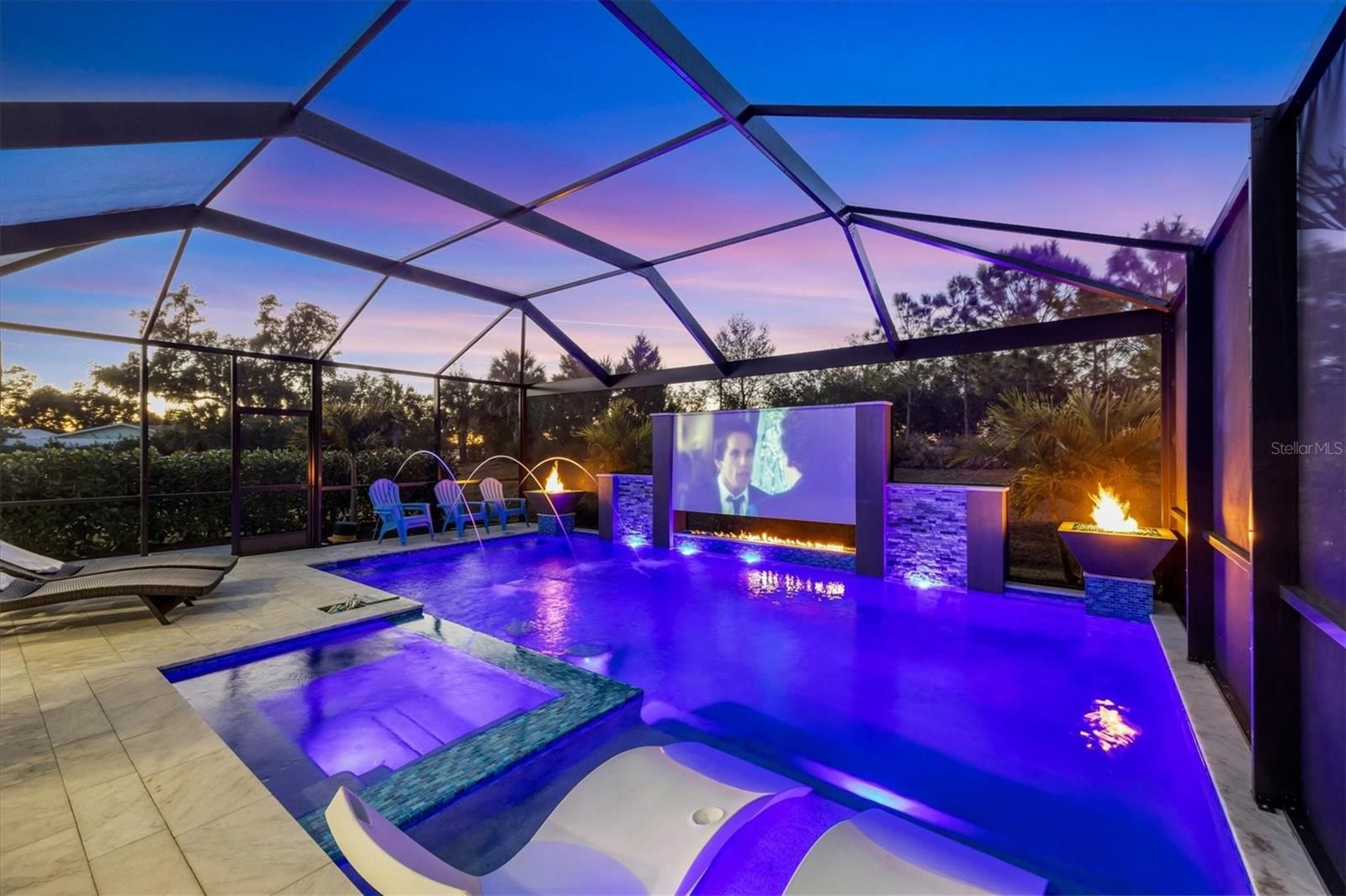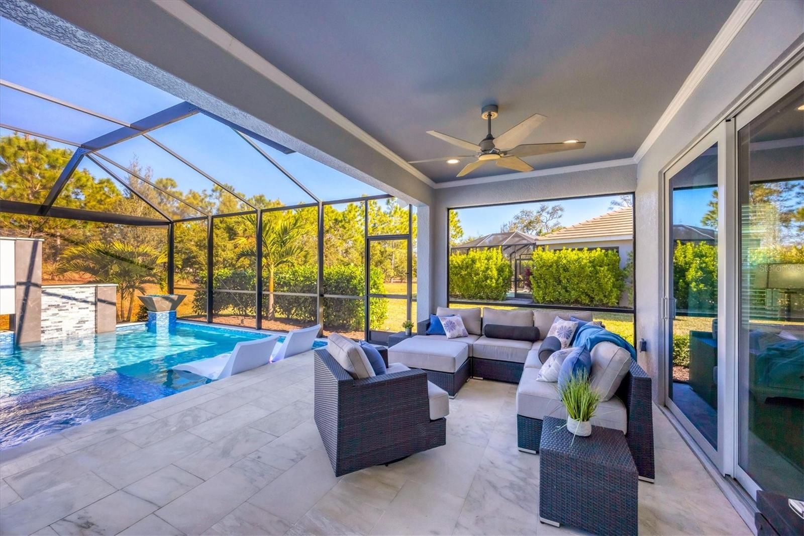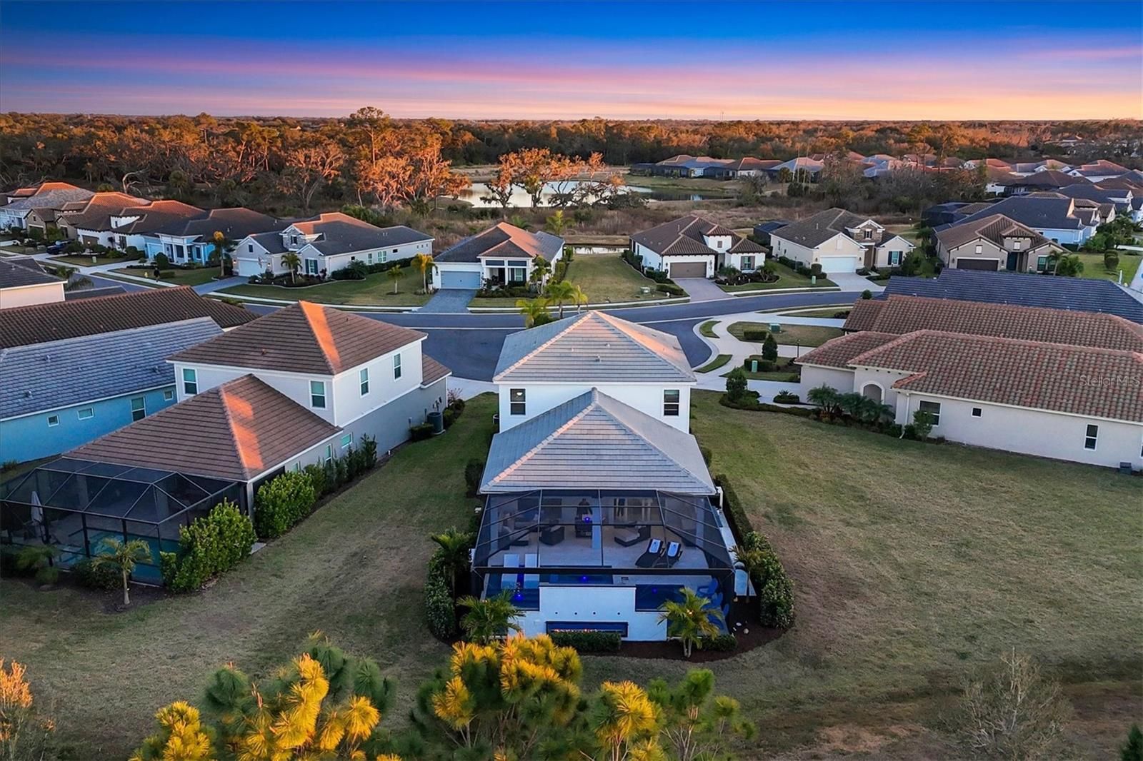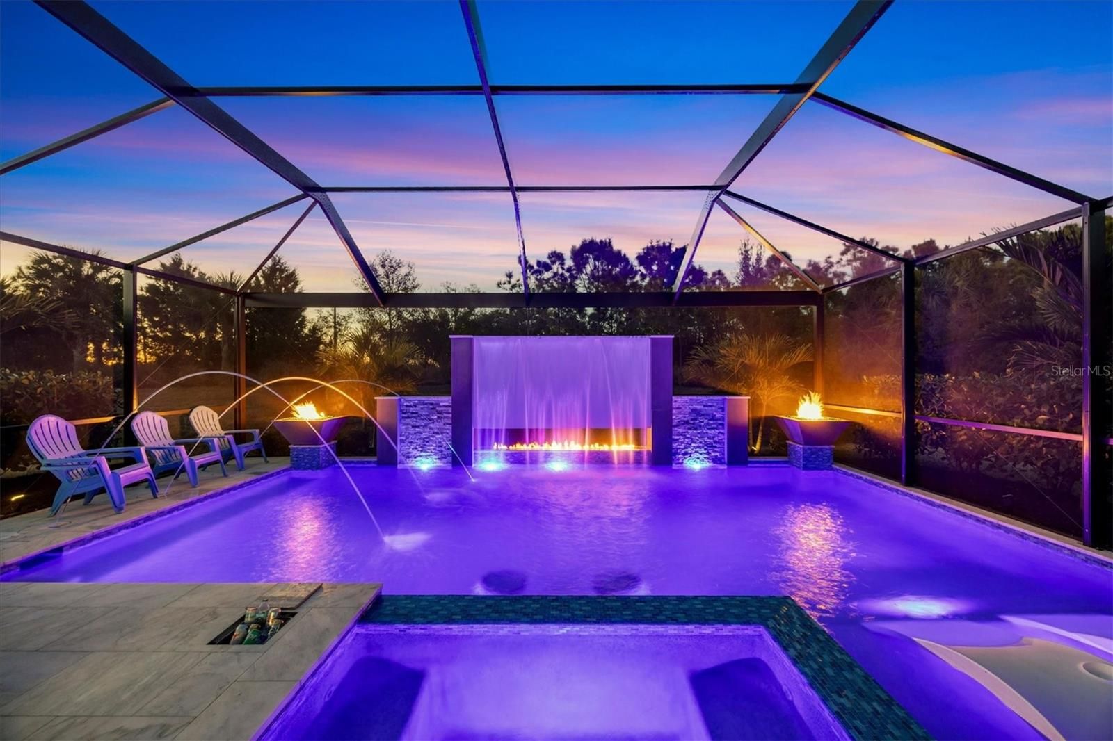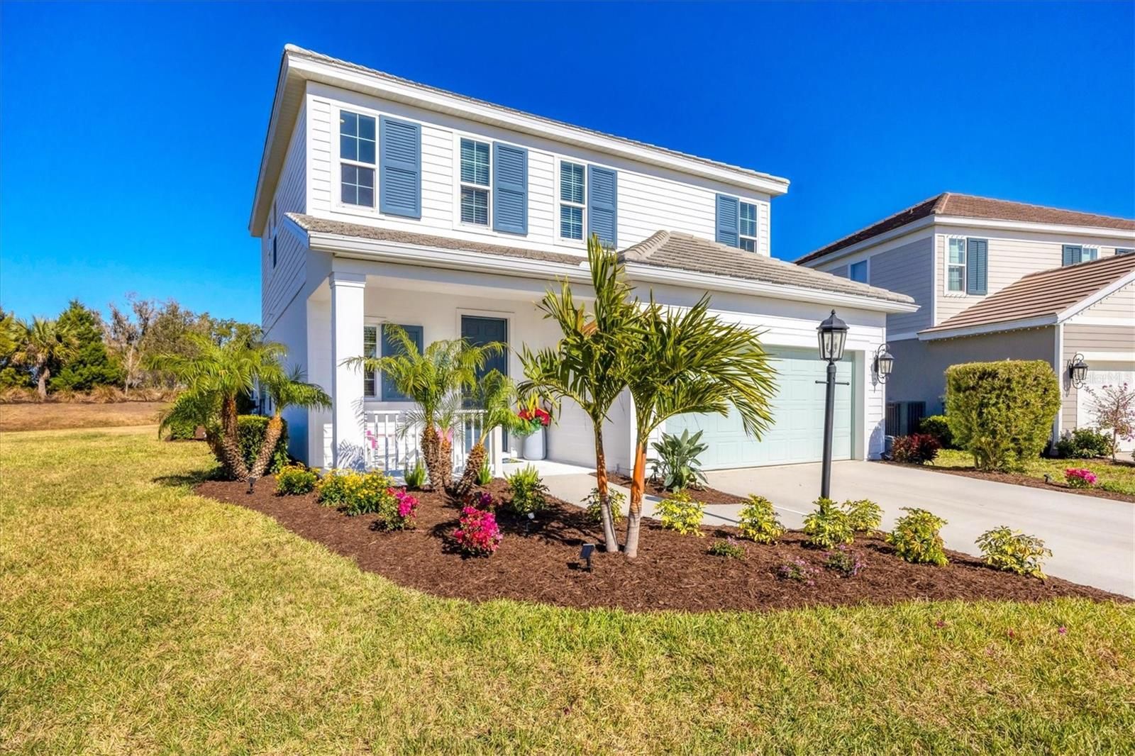 Wait till you see this "Heritage" floorplan with its modern features, impeccable condition AND private pie shaped lot on a cul-de-sac road! This expansive home boasts 4 bedrooms, a LARGE loft area, 3 bathrooms, 2-car garage and a breathtaking covered lanai space with a one off ultra premium saltwater pool spa! Rest assured your new home is built strong and safe with its HURRICANE IMPACT rated glass throughout, cinder block construction, concrete tile roof, ''Guardian'' home alarm system and is located in the highly desirable X floodzone. Throughout the interior you will find 5 1/4" deco baseboards, multiple trey ceilings, LED recessed lighting, high level quartz countertops throughout, custom cabinetry in closets and much more! This home will continue to surprise you with it's private pet room located under the staircase, with its easy access and private location, your beloved pet (s) will be overjoyed to have their own space to relax. The great room with its expansive tray ceiling showcases a spacious environment with more than enough room to entertain guests. For all you kitchen enthusiasts, you will surely gravitate to this custom kitchen featuring a large Island with breakfast bar, upgraded porcelain backsplash, shaker cabinetry with LED undermount lighting that complements the high-level quartz countertops, and an oversized walk-in pantry. The exterior of this home sits very well with its larger than normal lot size, super private rear setting, and brand-new professionally installed landscaping throughout which further sets this home apart from the others! Open up the three paneled HURRICANE IMPACT rated POCKET sliders and prepare to be absolutely amazed! As you walk on the premium marble flooring upon entering the lanai, you'll be in absolute awe of the custom built-in kitchenette with "Bull" stainless steel gas grill with a matching fridge AND one of the most desirable pools seen in a residential home. This expansive fully optioned pool has: numerous water features, movie wall with "Sonos" outdoor sound system with underground subwoofer, TWO fire bowls with a fire trey under movie wall, multi-color LED lighting for pool/spa/barstoools with vertically mounted wall lights, "PebbleTec' with luminous glass blend and shimmering seas abalone, gas and electric heating, salt chlorinator w/Ph monitoring AND integrated dosing system, sunshelf w/umbrella sleeve, built-in deck drink cooler right next to your LARGE SIX person spa with DUAL QUAD therapeutic jet system all ran off its own dedicated jet pump. ALL of this can be operated from your smart device! WOW is right..Indigo is an active community that features a full time on-site manager as well as a full time activities director that manages an extensive calendar of activities for all ages. A-Rated Gullett Elementary AND Mona Jain Middle school are right outside our gates too! You can also expect sidewalks on both sides of the street, ''Oasis'' pool/spa, resort style heated community pool/spa at the main clubhouse where you will find 5 cabanas with an abundance of seating, 4 pickleball courts, 2 bocce ball courts, 24-hour exercise gym, meeting room/banquet room and playground. Indigo is not only a community that takes care of all ground maintenance to include mowing, fertilizing, irrigation, shrubs and mulch but is right around the corner to a plethora of dining, banking, entertainment, public transportation and MORE!