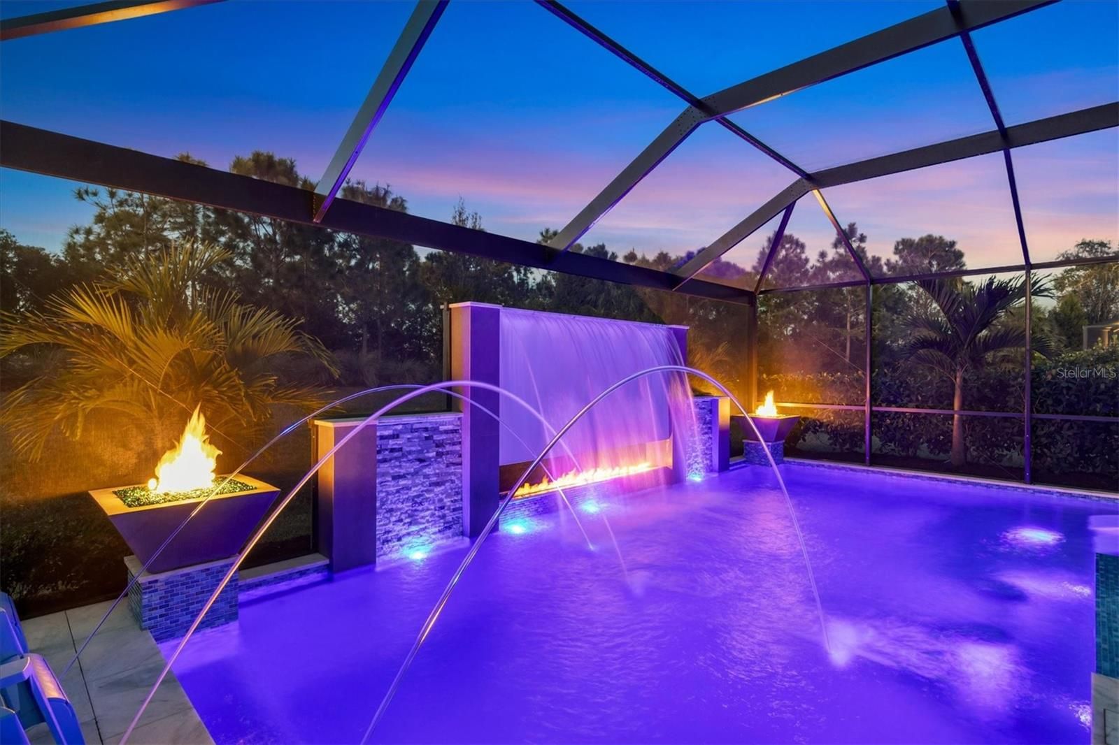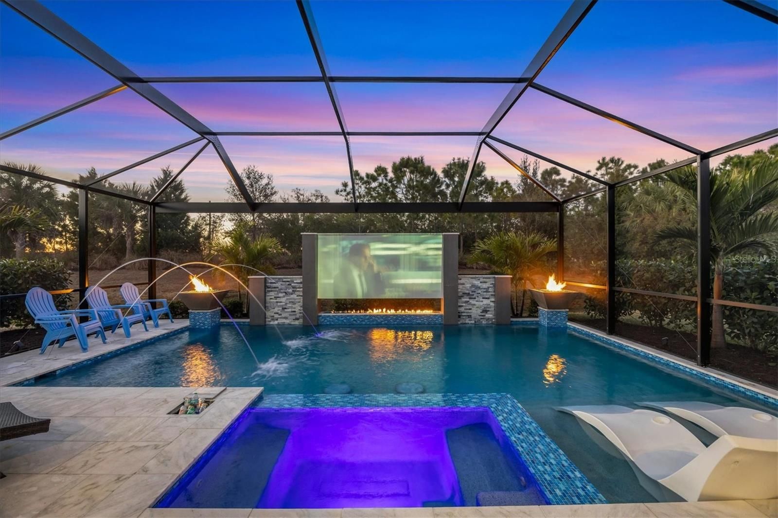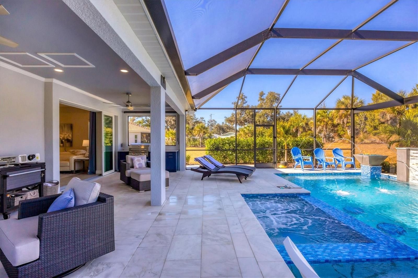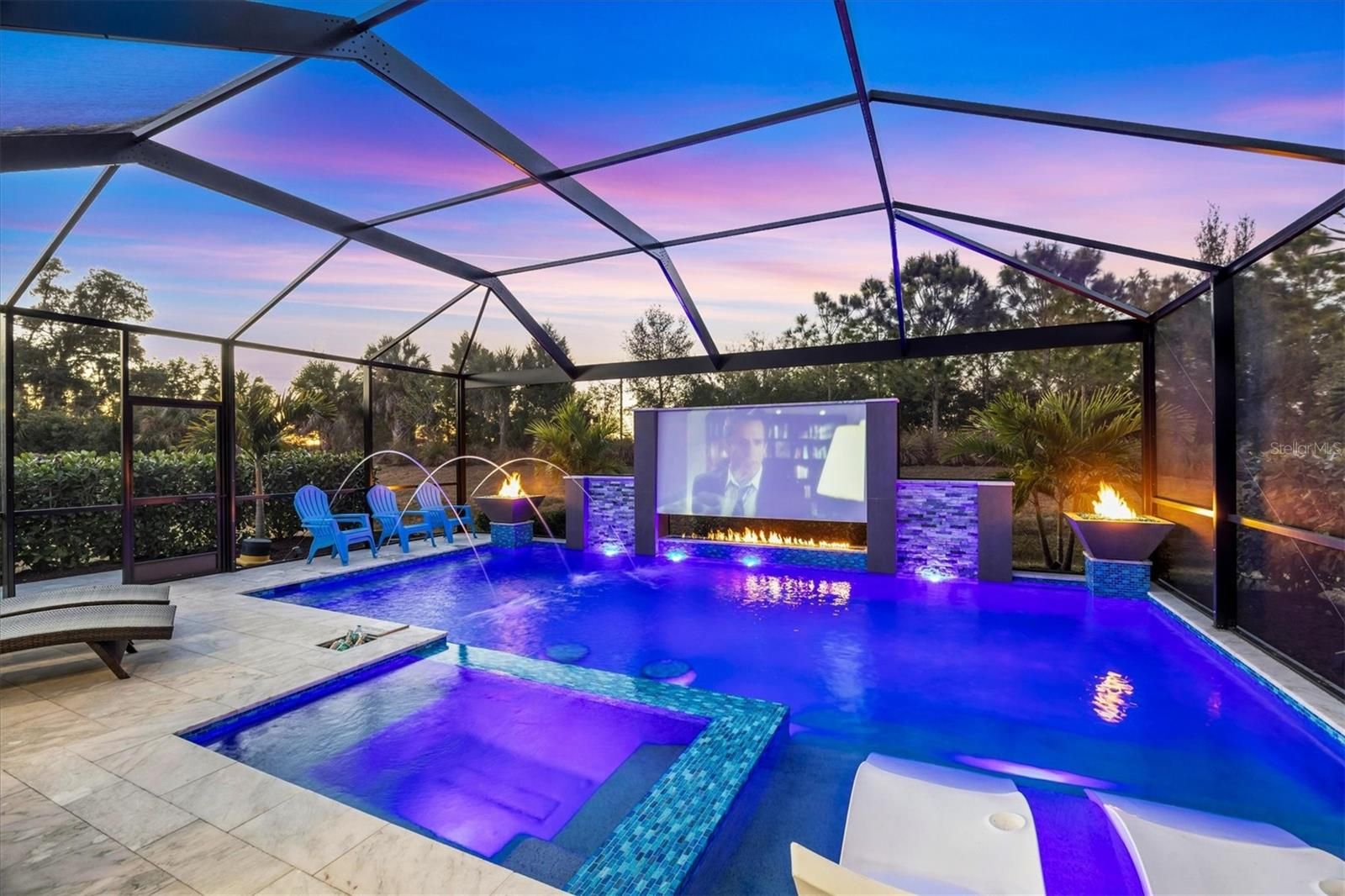Wait till you see this "Heritage" floorplan with its modern features, impeccable condition AND private pie shaped lot on a cul-de-sac road! This expansive home boasts 4 bedrooms, a LARGE loft area, 3 bathrooms, 2-car garage and a breathtaking covered lanai space with a one off ultra premium saltwater pool spa! Rest assured your new home is built strong and safe with its HURRICANE IMPACT rated glass throughout, cinder block construction, concrete tile roof, ''Guardian'' home alarm system and is located in the highly desirable X floodzone. Throughout the interior you will find 5 1/4" deco baseboards, multiple trey ceilings, LED recessed lighting, high level quartz countertops throughout, custom cabinetry in closets and much more! This home will continue to surprise you with it's private pet room located under the staircase, with its easy access and private location, your beloved pet (s) will be overjoyed to have their own space to relax. The great room with its expansive tray ceiling showcases a spacious environment with more than enough room to entertain guests. For all you kitchen enthusiasts, you will surely gravitate to this custom kitchen featuring a large Island with breakfast bar, upgraded porcelain backsplash, shaker cabinetry with LED undermount lighting that complements the high-level quartz countertops, and an oversized walk-in pantry. The exterior of this home sits very well with its larger than normal lot size, super private rear setting, and brand-new professionally installed landscaping throughout which further sets this home apart from the others! Open up the three paneled HURRICANE IMPACT rated POCKET sliders and prepare to be absolutely amazed! As you walk on the premium marble flooring upon entering the lanai, you'll be in absolute awe of the custom built-in kitchenette with "Bull" stainless steel gas grill with a matching fridge AND one of the most desirable pools seen in a residential home. This expansive fully optioned pool has: numerous water features, movie wall with "Sonos" outdoor sound system with underground subwoofer, TWO fire bowls with a fire trey under movie wall, multi-color LED lighting for pool/spa/barstoools with vertically mounted wall lights, "PebbleTec' with luminous glass blend and shimmering seas abalone, gas and electric heating, salt chlorinator w/Ph monitoring AND integrated dosing system, sunshelf w/umbrella sleeve, built-in deck drink cooler right next to your LARGE SIX person spa with DUAL QUAD therapeutic jet system all ran off its own dedicated jet pump. ALL of this can be operated from your smart device! WOW is right..Indigo is an active community that features a full time on-site manager as well as a full time activities director that manages an extensive calendar of activities for all ages. A-Rated Gullett Elementary AND Mona Jain Middle school are right outside our gates too! You can also expect sidewalks on both sides of the street, ''Oasis'' pool/spa, resort style heated community pool/spa at the main clubhouse where you will find 5 cabanas with an abundance of seating, 4 pickleball courts, 2 bocce ball courts, 24-hour exercise gym, meeting room/banquet room and playground. Indigo is not only a community that takes care of all ground maintenance to include mowing, fertilizing, irrigation, shrubs and mulch but is right around the corner to a plethora of dining, banking, entertainment, public transportation and MORE!