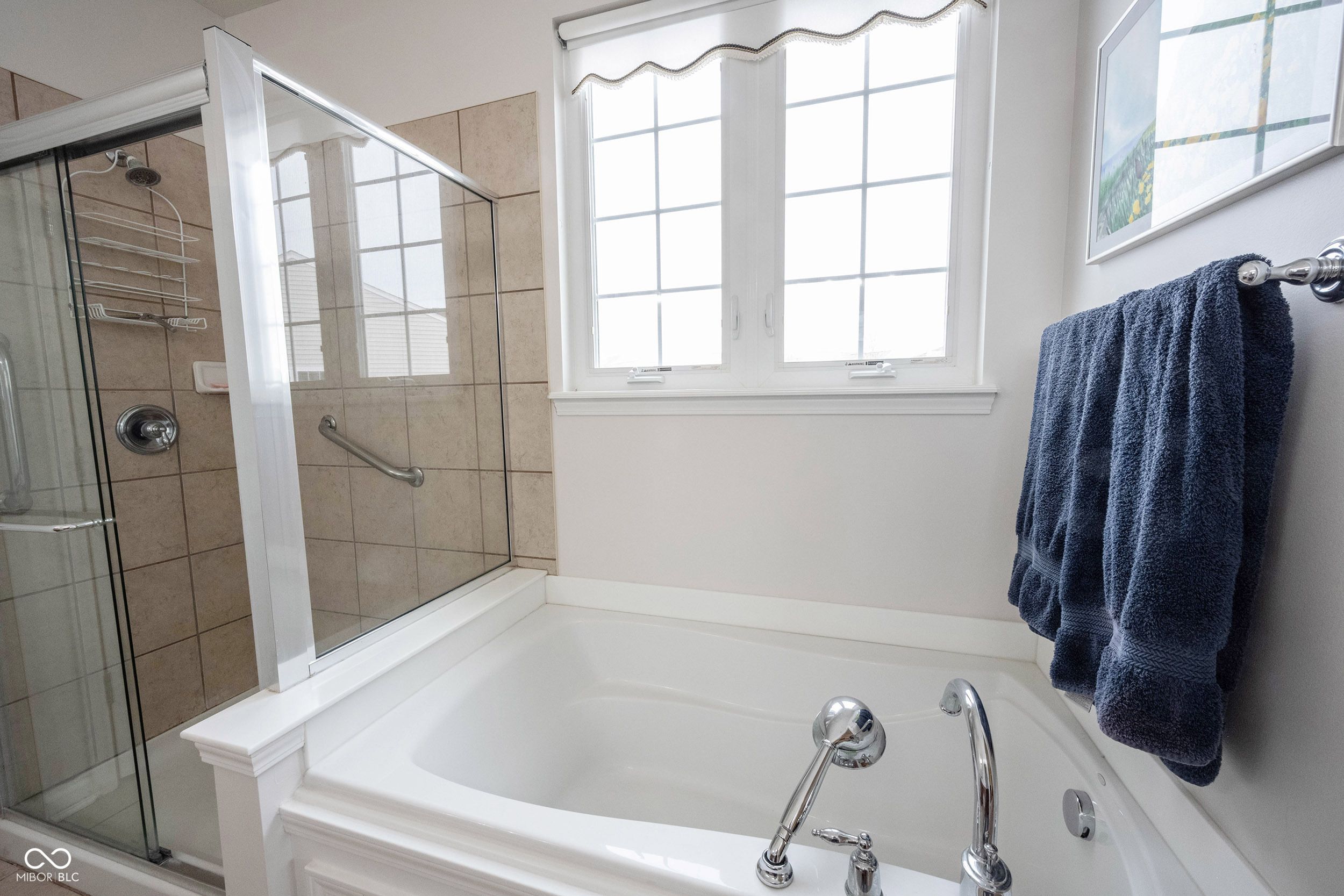 - Great Room, Multiple Dining Areas, Stall Shower, Dual Sinks, Primary Suite, Bathtub, Walk-In Closet(s), Bath Sinks Double Main, High Ceilings, Entrance Foyer, Hardwood Floors, Pantry, Wood Work Painted