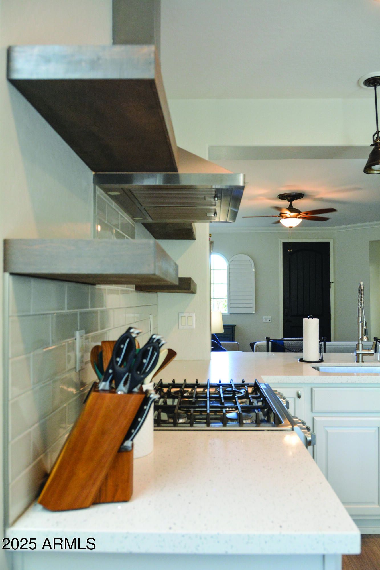 Welcome to the exquisite gated community of Corte Bella Country Club. Fall in love with this spectacular designer home complete with updated flooring, interior paint, crown molding, 5 1/4 in baseboards, and custom touches throughout. Enjoy the designer kitchen with quartz countertops and high end SS appliances. The bathrooms have been beautifully remodeled w/ a custom walk in master shower. The backyard is an absolute oasis featuring an extended patio with beautiful desert plants. This beautiful home is located just walking distance from all of the Corte Bella amenities. Enjoy the 2 restaurants, workout rooms, spa, pool, pickleball courts , tennis courts, bocci ball, dog parks and so much more!!! Welcome home!!