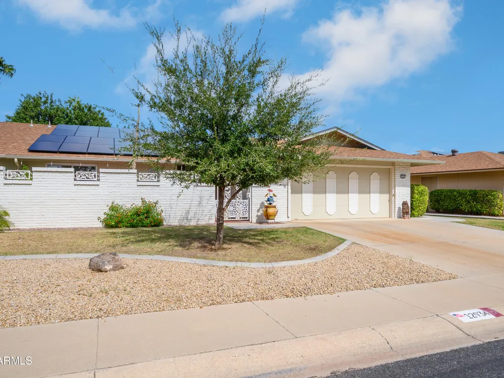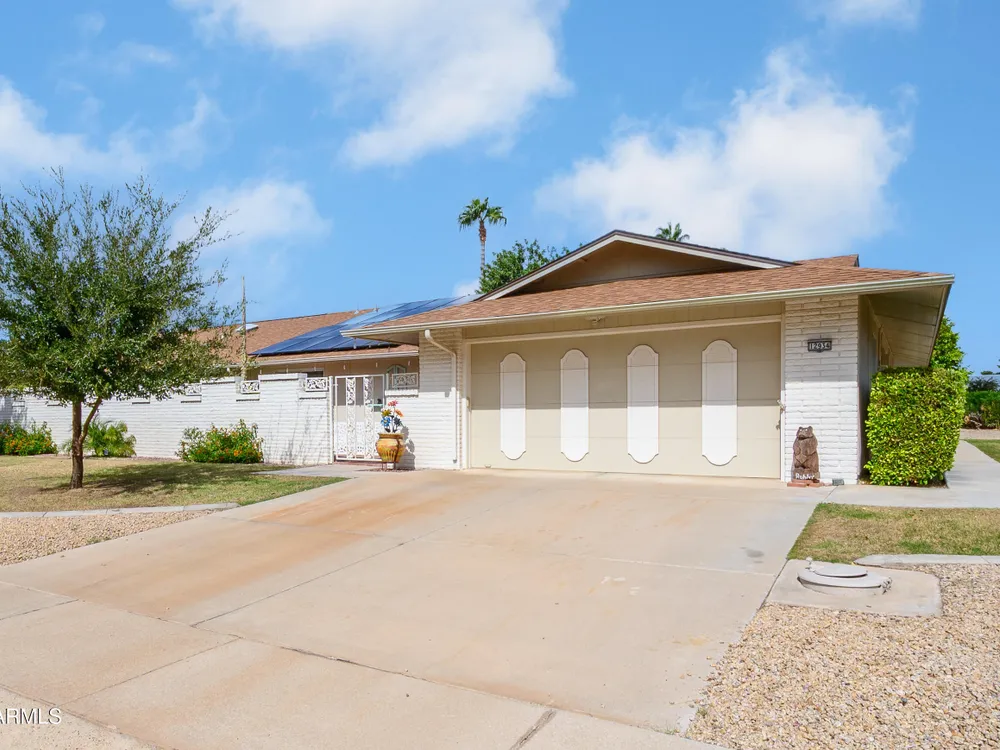 Well-maintained 2 bedroom, 2 bath Gemini Twin home in the heart of Sun City West. This spacious 1,577 sq. ft. residence features an open floor plan with tiled floors in all the right places. The kitchen and living areas flow seamlessly, offering a comfortable layout ideal for everyday living and entertaining. Both bedrooms are generously sized and include walk-in closets. The home also features an enclosed front patio, perfect for relaxing or enjoying the Arizona sunshine. Recent updates include a newer roof and HVAC system for added peace of mind. The 2-car garage provides additional space for a golf cart or extra storage. Conveniently located near Pebblebrook Golf Course, recreation centers, shopping, and other Sun City West amenities.