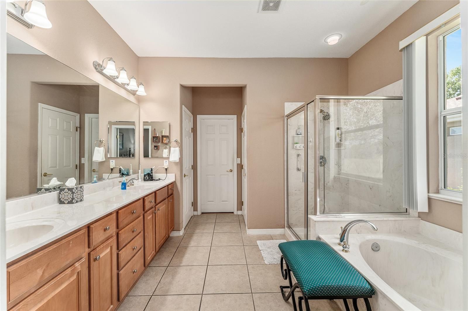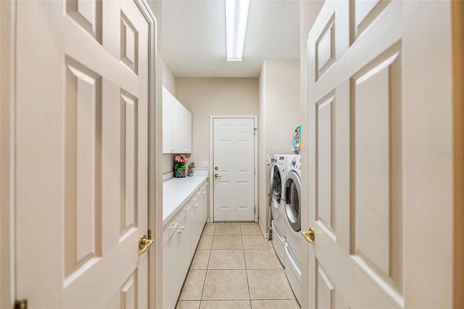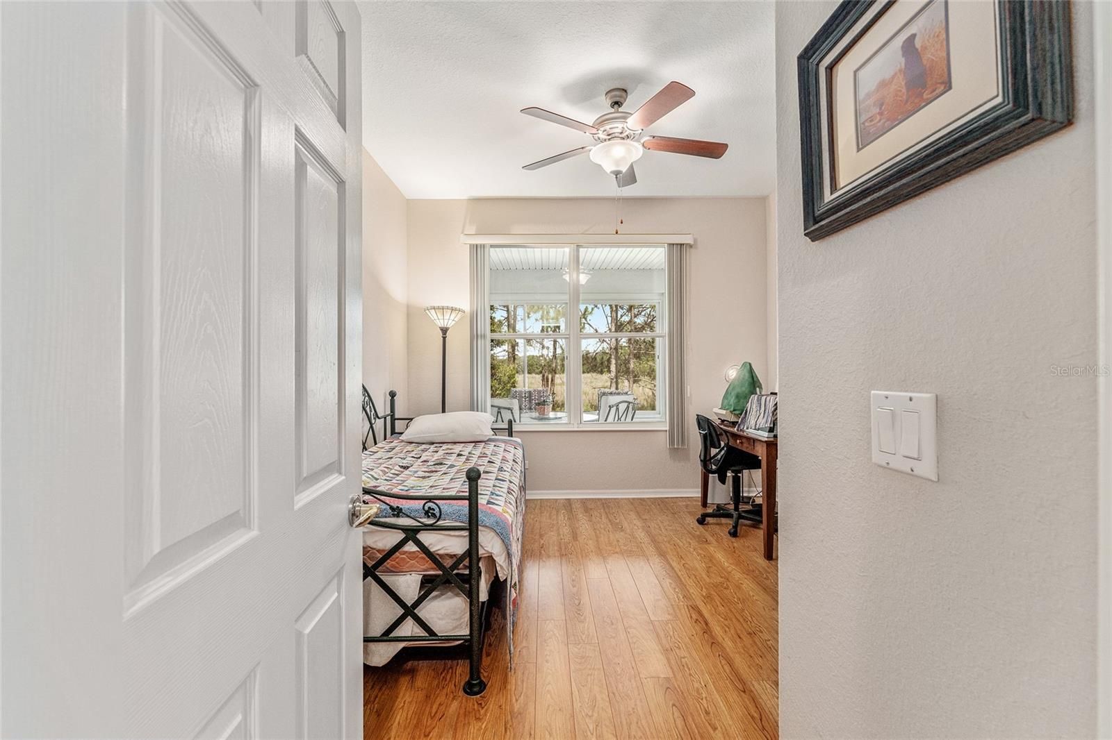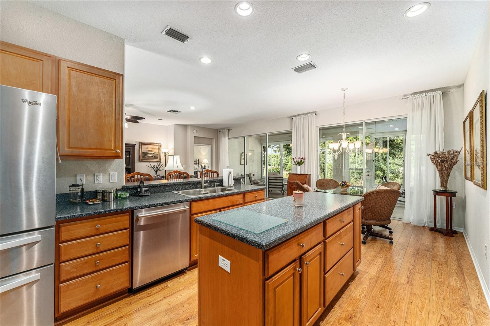 Privacy abounds in this rare and spacious 3-bedroom, 2-bath Johnstown model with a den, perfectly situated behind a preserve that can never be built on, offering ultimate seclusion and serenity. One of only two models ever built with this versatile layout, the home boasts an open floor plan and a beautifully appointed kitchen featuring engineered wood flooring, stainless steel appliances, and Wilsonart beveled-edge counters. The combined living and dining areas showcase plantation shutters and engineered wood flooring—no carpeting anywhere, with tile in the bathrooms and laundry room for easy maintenance. French doors open into the den, which also includes plantation shutters for added privacy. A split-bedroom layout provides comfort for guests, with secondary bedrooms located opposite the private primary suite. The enclosed lanai, under heat and air, allows for year-round relaxation and entertaining. The EXTENDED garage includes a GOLF CART GARAGE, overhead and door insulation, pull-down attic stairs with storage, a service door, and a utility sink. Major updates include a new roof (2023), HVAC (2018), and repiping for peace of mind. Located in a vibrant 55+ community withNO BONDS or CDDs, enjoy resort-style amenities including 36 holes of golf, pickleball, tennis, softball, three pools (including one indoor), a state-of-the-art fitness center, and a seemingly endless list of clubs and activities. Come see this exceptional home today!