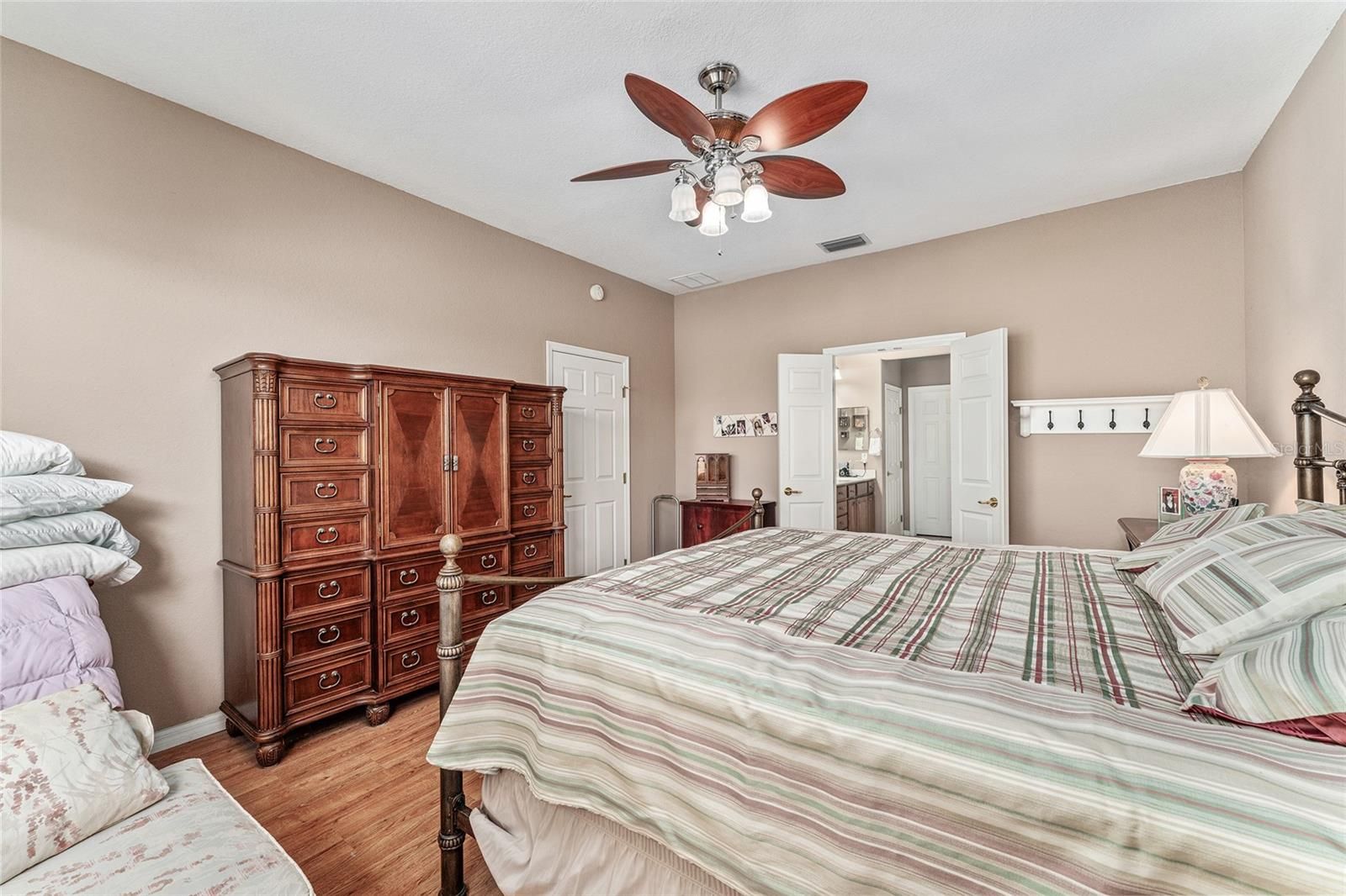 - Ceiling Fan(s), High Ceilings, Living/Dining Room, Open Floorplan, Main Level Primary, Thermostat, Walk-In Closet(s), Window Treatments