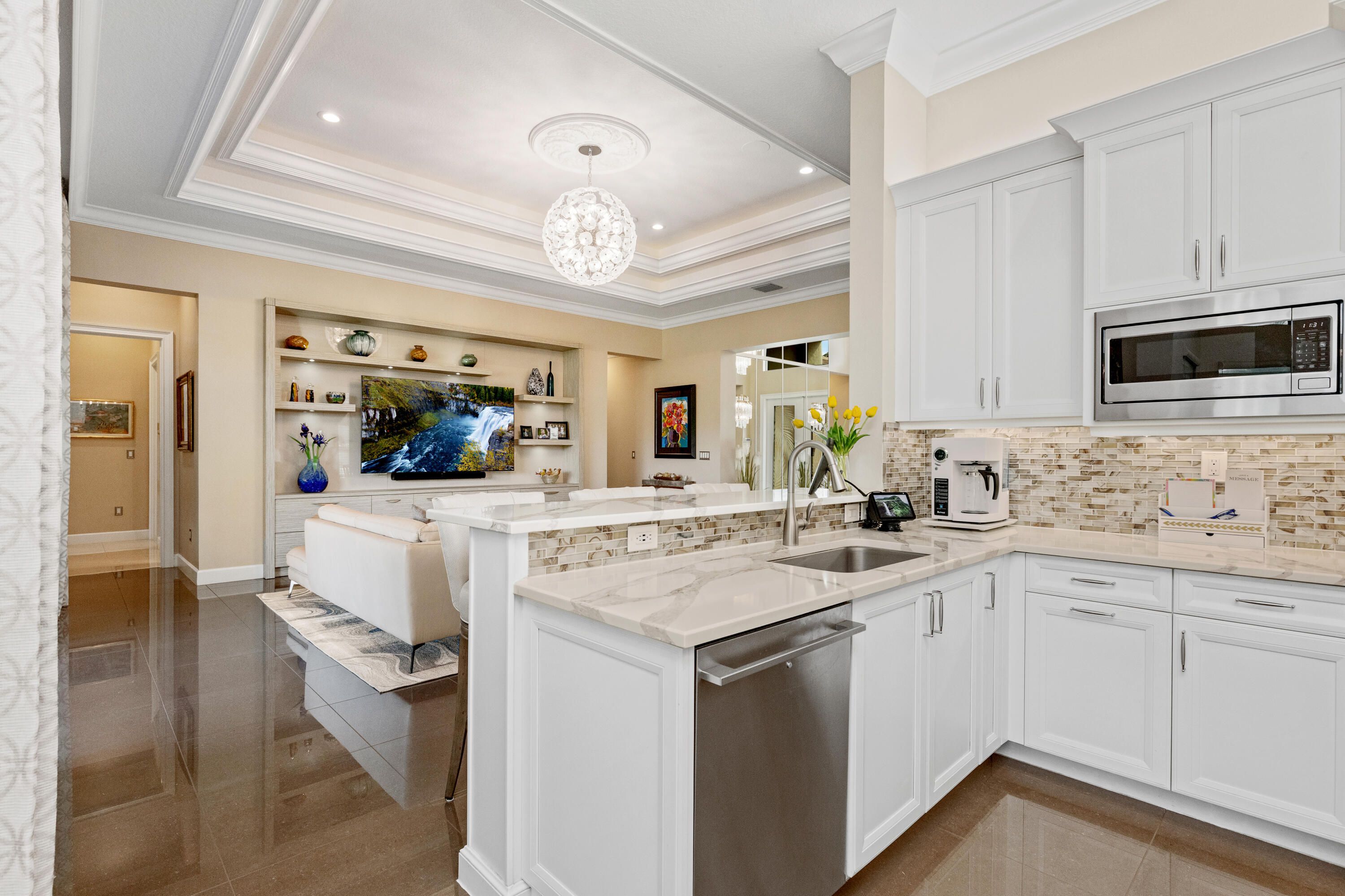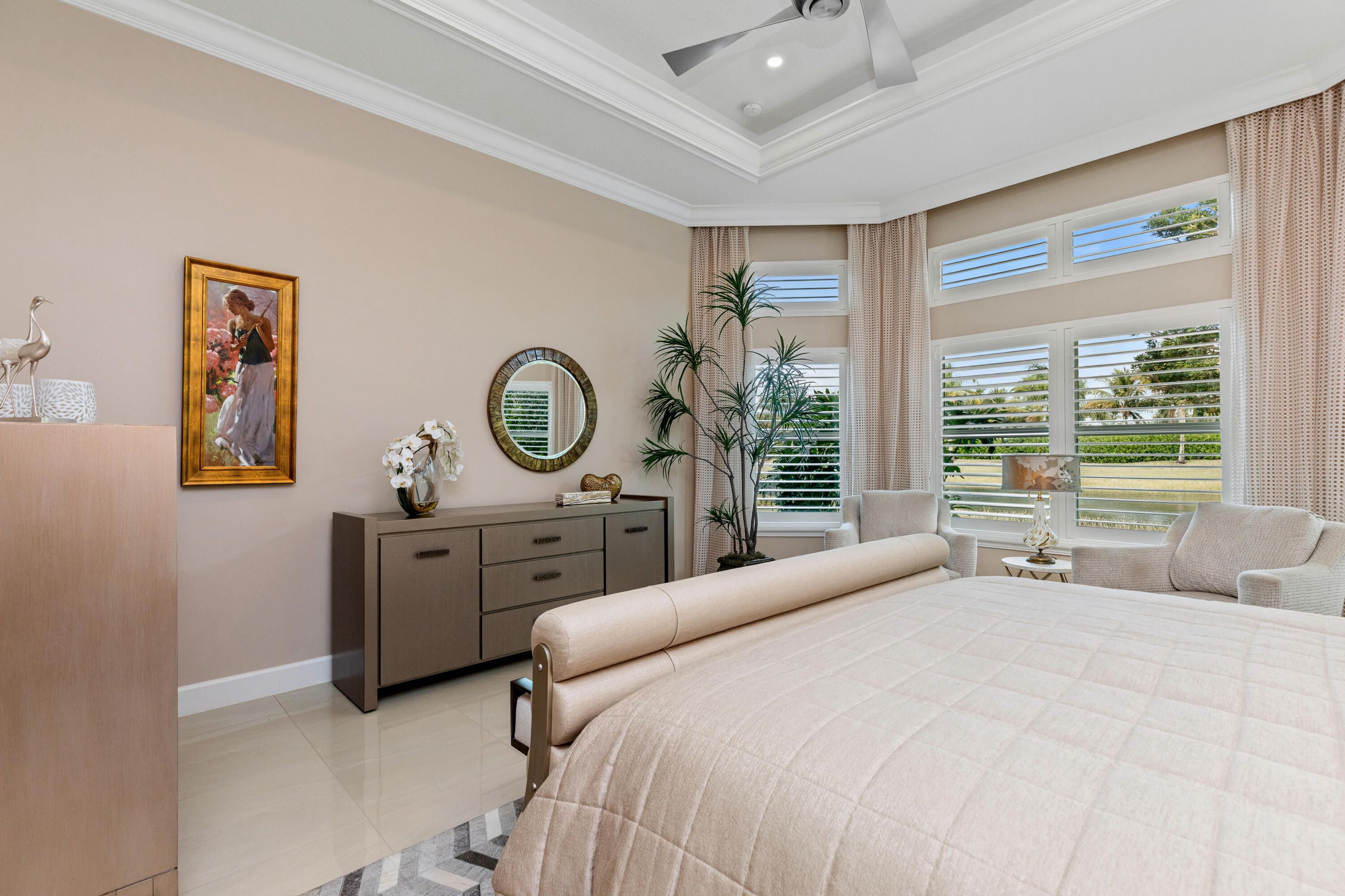 Set within the highly desirable Crown section of the community, this home enjoys the rare benefit of 'no zero lot lines.' The north- facing backyard overlooks a spectacular bow-shaped lake with unobstructed, lush landscaping views. With no homes across the water and no bordering or divider walls, the setting offers exceptional privacy and abundant wildlife. The open central great room features a custom-built entertainment center, and expansive sliding glass doors leading to a screened lanai, perfect for indoor-outdoor living. Adjacent, is the bright eat-in kitchen with bay-window lake views, as well as a more formal dining area for entertaining. The spacious owner's suite is a true retreat, highlighted by serene lake views through bay windows, and custom built Walk-in closets. *Hit more* Approximately $300k+ in builder and after market upgrades! FEATURES INCLUDED: Living Space: Carlyle fl. plan, hobby rm option with after market custom closet, offering choice of hobby rm, bedroom, or office. 8" crown moldings throughout home. Double tray ceilings in great room; single in foyer, dining rm. and owner's suite. Solid wood doors throughout home for noise abatement. KITCHEN: Upgraded cabinets and appliances. After market Pompeii quartz Van Oro countertops. Wooden rollouts & dividers. Glass -front cabinets, lighting, interior, above, and below. ELECTRICAL UPGRADES: Luxury Chandeliers, and lighting fixtures +dimmers and 3-ways. Lutron smart-home lighting system w/smartphone control. Upgraded +++ Led high hats. LED mood lighting tray ceilings. Outdoor security lights. Whole house surge protection (FPL). 22k whole-house Generac Generator-smart phone notifications. ENERGY & UTILITY UPGRADES: 75 gallon gas water heater. Upgraded dual control (2) HVAC with UV purification and mold prevention. Thermal insulated upgraded Broten Garage door, three-quarter HP direct drive (no noisy chain) and impact proof to 175 mph. ADDITIONAL UPGRADES: Etched glass front doors, frameless showers, Toto comfort height toilets, Laundry rm & garage sinks, GE Profile 700 series washer and dryer (2025). Remote controlled hurricane screen outside lanai. Expanded driveway, garage, entry. Gas stub for grill/ patio, & water bib. Epoxy-finished garage floor. This stunning one-story, four bedroom residence is located in Valencia Sound, Boynton Beach's premier 55+community; offering resort style amenities and an active, built-in social lifestyle. The community centers around an impressive 39,000-square-foot clubhouse featuring a full service restaurant, indoor and outdoor bars, multiple heated pools, 11 lighted pickleball courts, 6 lighted tennis courts, a state-of-the-art fitness center, social hall, card rooms, art studio, test kitchen, and a full calendar of clubs, events, shows, and entertainment. Ideally situated near top-tier medical facilities, world-class golf, dining, and cultural attractions, Valencia Sound offers convenient access to both Palm Beach and Ft. Laud. International Airports with non stop service to the NY area. Sunbelt living at its best in a no-income tax state where property taxes are soon to be gradually phased out.