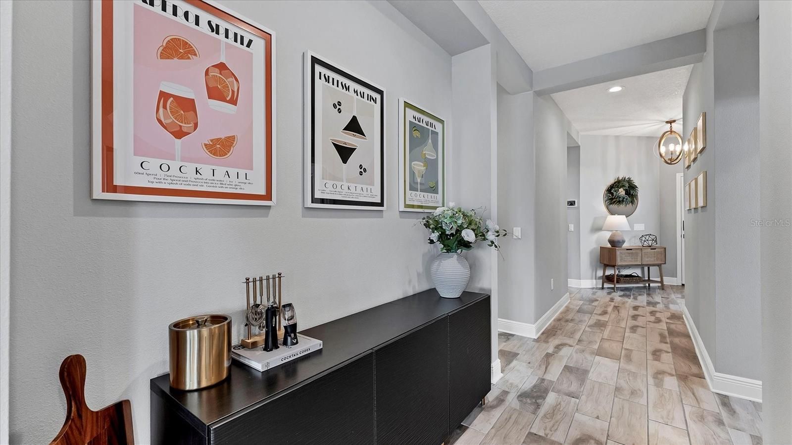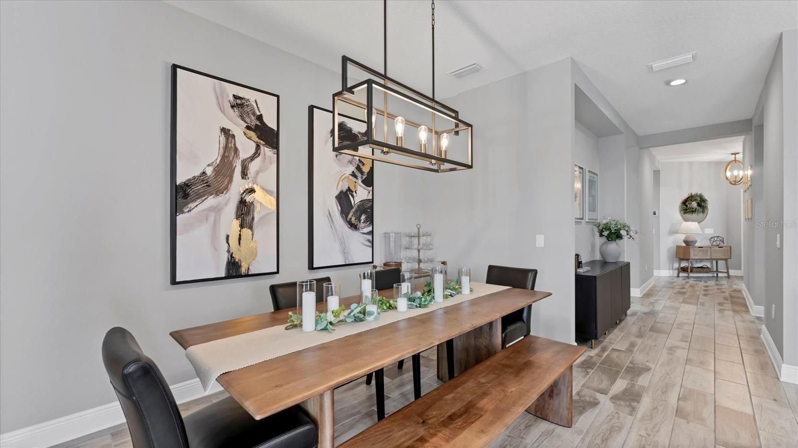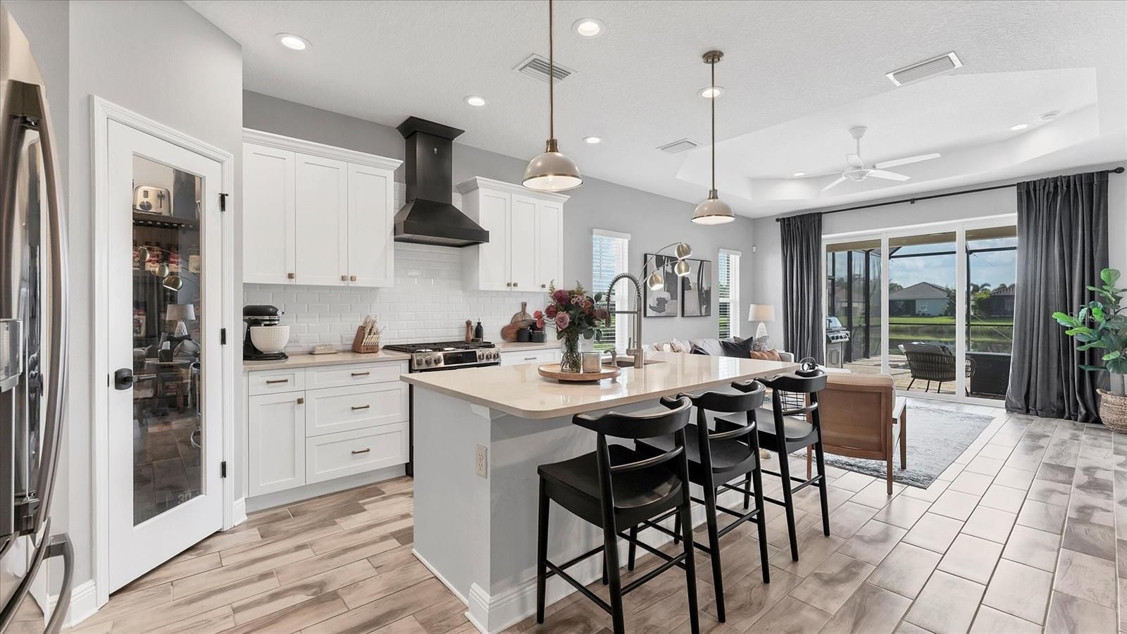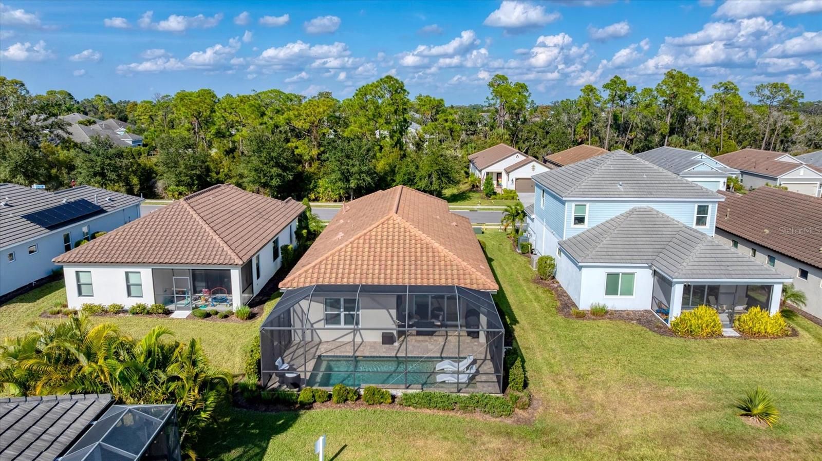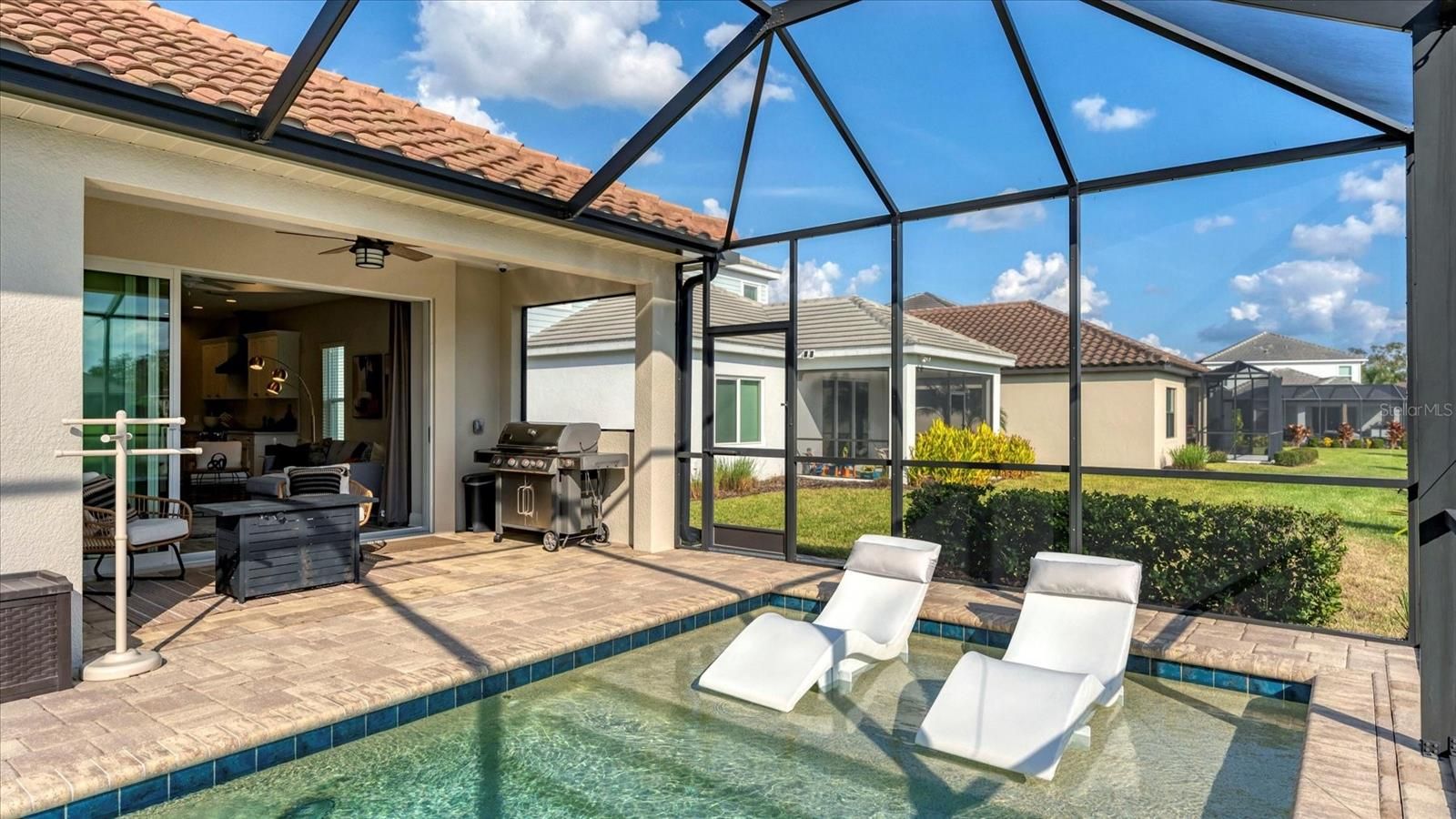 Model perfect living with serene water views in Indigo is now available for the most discerning buyer. Experience the epitome of Florida living in this meticulously maintained, three bedroom, plus a den/office, two bath residence located in the highly sought after gated community of Indigo in Lakewood Ranch, Florida. Spanning just under 1800 square feet of living space, this house features designer finishes and an effortless flow for entertaining. The open concept living area leads directly to your private, resort style, salt water pool oasis with water features. The sparkling in ground pool and paver lanai boasts peaceful lake views conducive for the best experiences of rest and relaxation in the sunny Florida weather! Located in a premier active lifestyle community with a plethora of amenities AND a lifestyle community director, enjoy activities such as pickleball, workout at the fitness center, and socialize at the clubhouse. The gated, all tile roof community of Indigo is also maintenance free which is perfect for active retirees, young professionals and busy families. As you walk across the paver driveway and enter through the front door, you will notice the upgraded tile plank floors throughout most of the home, the decorative wall décor, walk in closets, and the pristine, chef’s kitchen that is open to the great room and perfect for entertaining. The pantry is a walk-in style with wood shelving and the appliances are all stainless-steel GE creations which are punctuated by the lovely range hood. The countertops are a beautiful, neutral quartz and the kitchen also has a gas range for the most serious of culinary experts! The great room features an amazing brick décor with a built-in electric fireplace. Everything about this home speaks to relaxation, peace, serenity, and coziness that is ideal for enjoying with guests, friends and family! For the ultimate peace of mind, this home is offered with impact windows and sliders! This home and community are what true Florida living is all about. Schedule your showing today!
