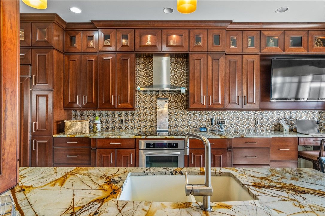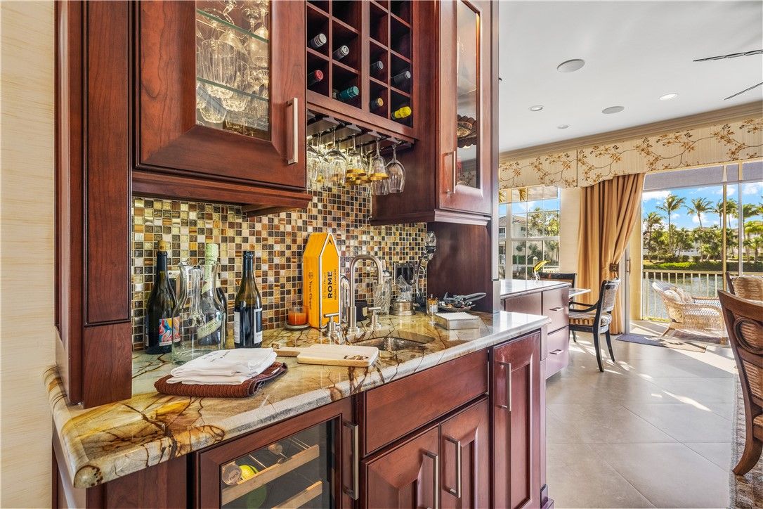 - Built-In Oven, Cooktop, Dryer, Dishwasher, Electric Water Heater, Disposal, Microwave, Refrigerator, Wine Cooler, Washer