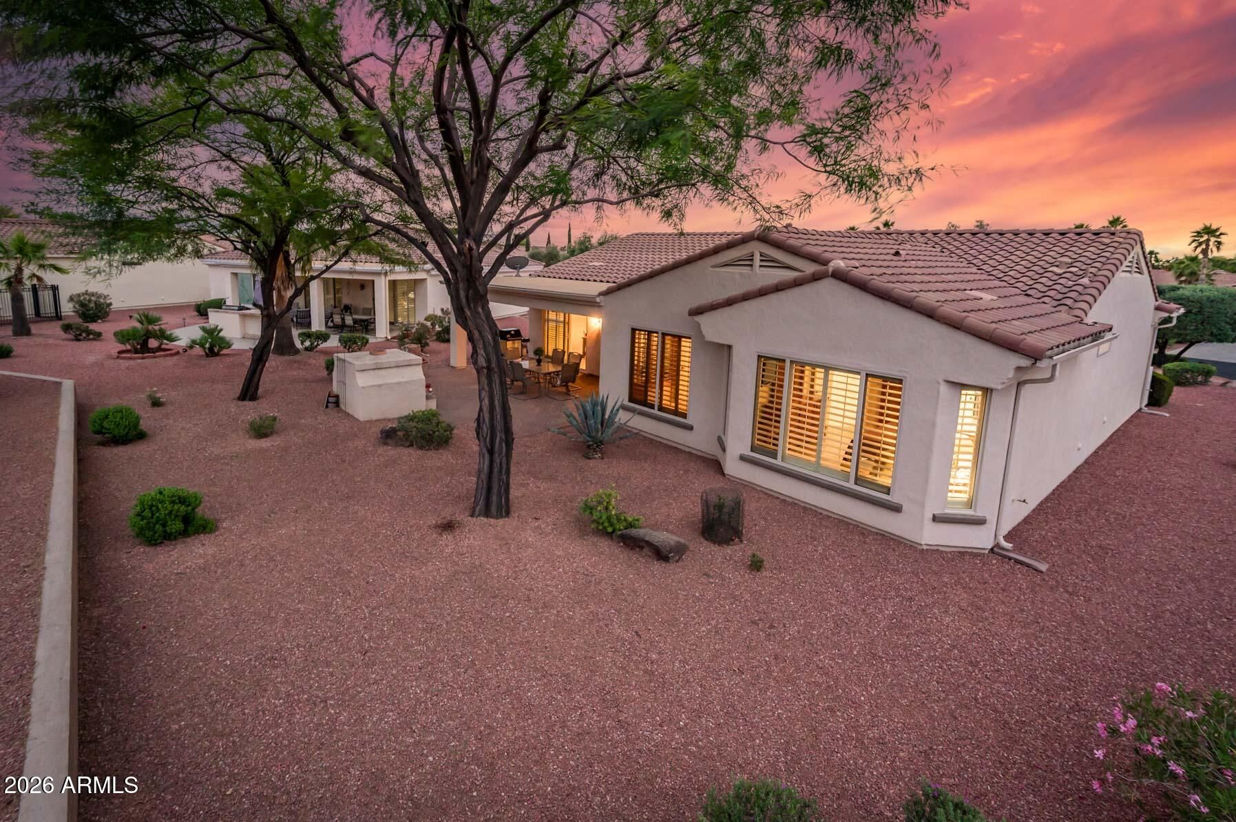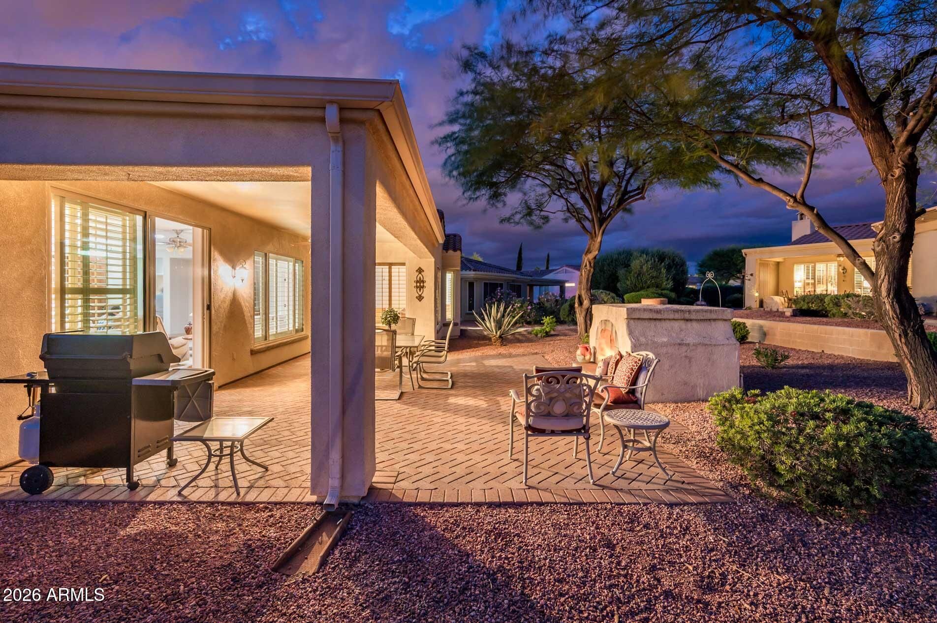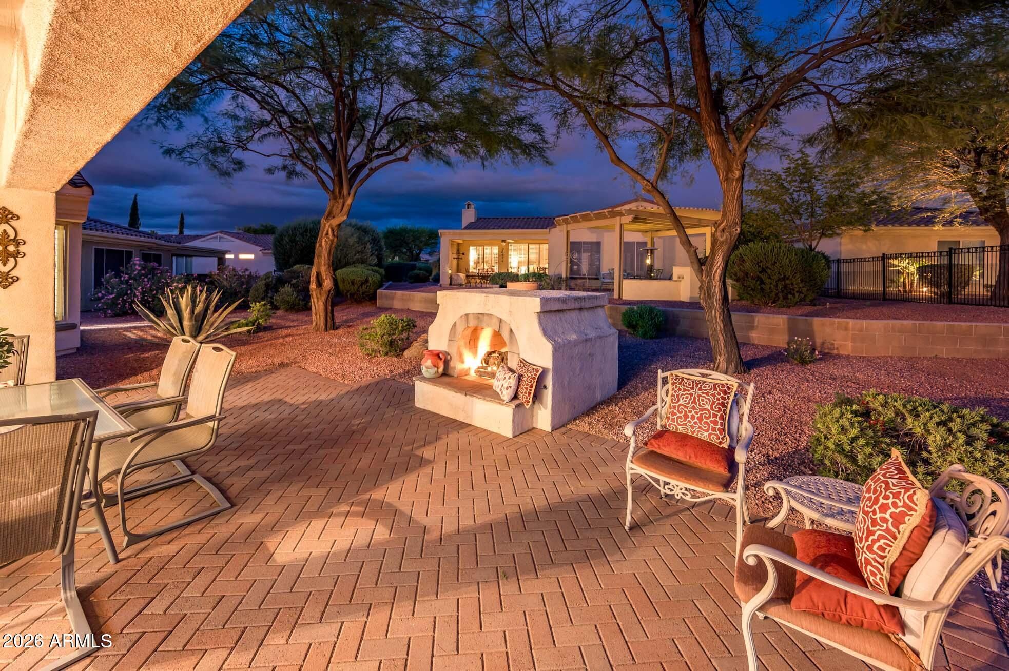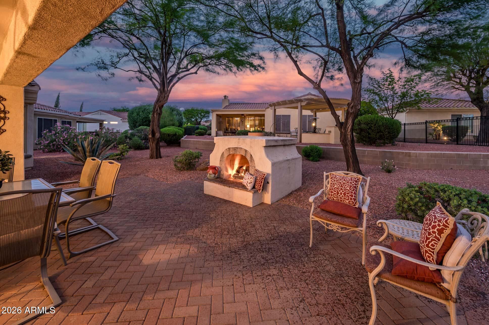 Situated in a premier location within gated Corte Bella--well away from the 303 and El Mirage--this beautifully updated San Ysidro Model delivers the upgrades buyers want and the condition they hope for. Major improvements include 2026 Roof Check, Tankless Hot Water Heater, and a 2022 Irrigation System. Fresh interior paint and solid-surface flooring run throughout, complementing the 2019 remodeled Primary Bathroom and 2019 updated Guest Bathroom. The kitchen features warm maple cabinetry with under-mount lighting, a charming nook, and a generous pantry. The extended Primary Suite offers a bay window and excellent space, while the Guest Bedroom is equally comfortable in size. The extended garage includes epoxy flooring for a clean, finished look. Out back, a paver patio with gas fireplace creates a welcoming outdoor living area perfect for relaxing or entertaining. With its prime location, thoughtful upgrades, and meticulous condition, this is a Corte Bella opportunity you won't want to miss. Corte Bella delivers resort-style living with its semi-private golf club, two restaurants with bars, extensive social activities, heated pool, cutting-edge fitness center, and highly sought-after pickleball courts. With shopping, medical services, and banks just a golf-cart ride away, this prestigious community continues to shine as the West Valley's true gem.