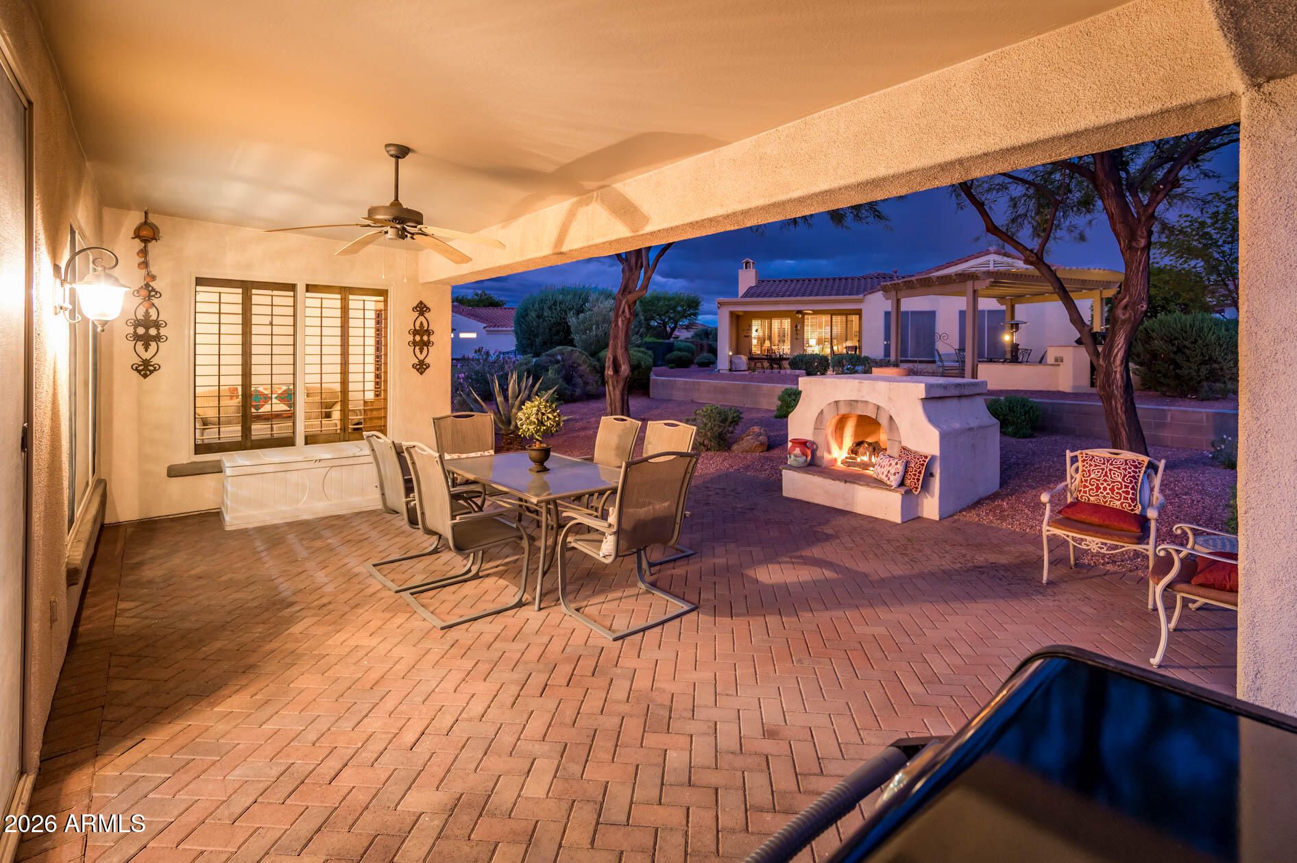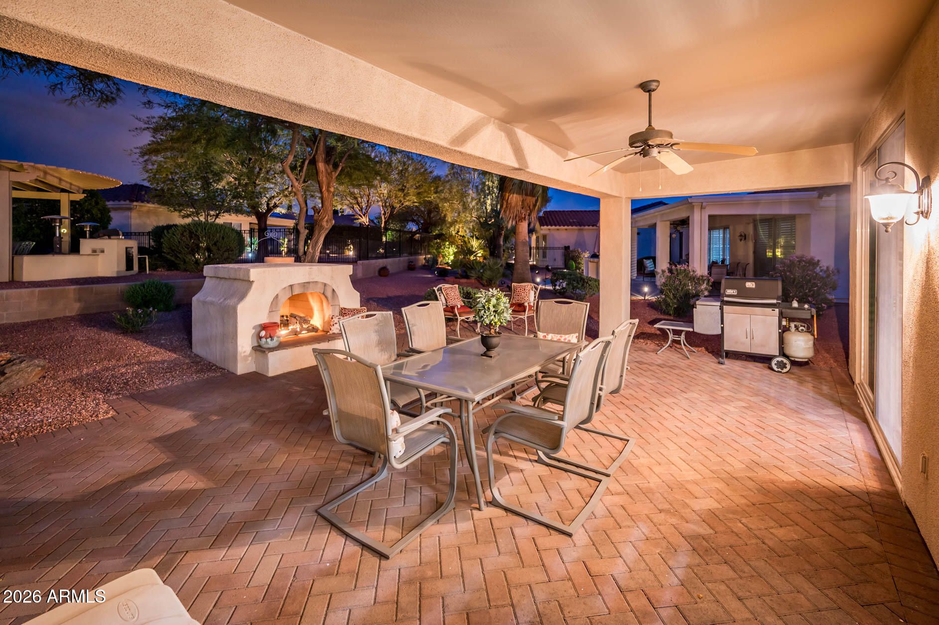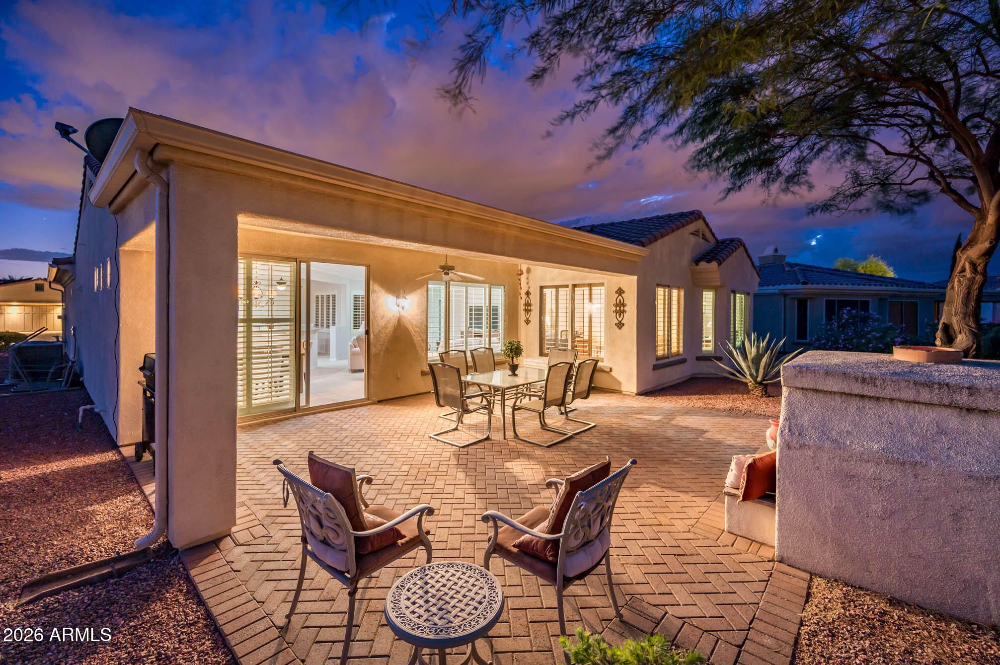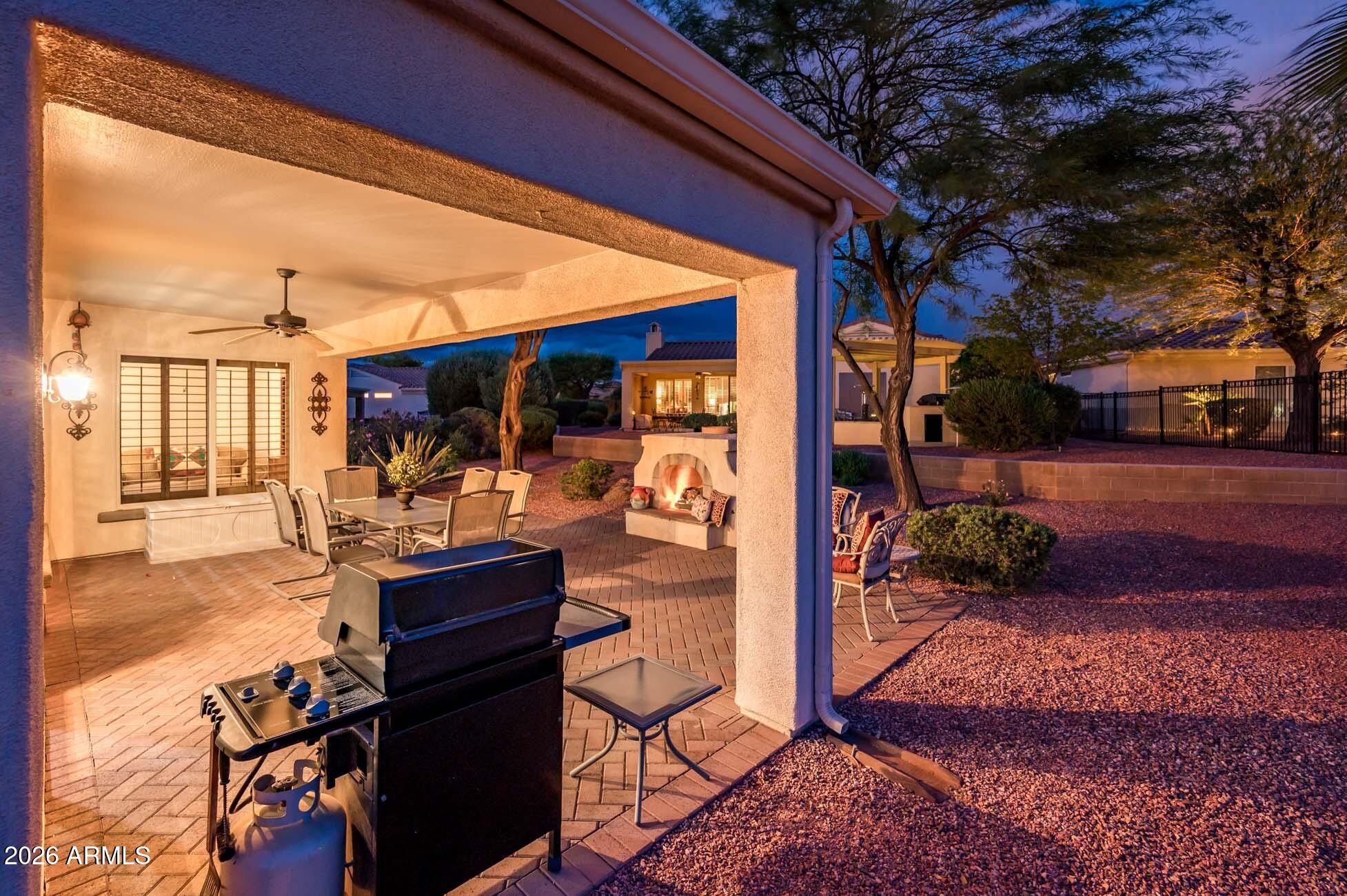 Situated in a premier location within gated Corte Bella--well away from the 303 and El Mirage--this beautifully updated San Ysidro Model delivers the upgrades buyers want and the condition they hope for. Major improvements include 2026 Roof Check, Tankless Hot Water Heater, and a 2022 Irrigation System. Fresh interior paint and solid-surface flooring run throughout, complementing the 2019 remodeled Primary Bathroom and 2019 updated Guest Bathroom. The kitchen features warm maple cabinetry with under-mount lighting, a charming nook, and a generous pantry. The extended Primary Suite offers a bay window and excellent space, while the Guest Bedroom is equally comfortable in size. The extended garage includes epoxy flooring for a clean, finished look. Out back, a paver patio with gas fireplace creates a welcoming outdoor living area perfect for relaxing or entertaining. With its prime location, thoughtful upgrades, and meticulous condition, this is a Corte Bella opportunity you won't want to miss. Corte Bella delivers resort-style living with its semi-private golf club, two restaurants with bars, extensive social activities, heated pool, cutting-edge fitness center, and highly sought-after pickleball courts. With shopping, medical services, and banks just a golf-cart ride away, this prestigious community continues to shine as the West Valley's true gem.