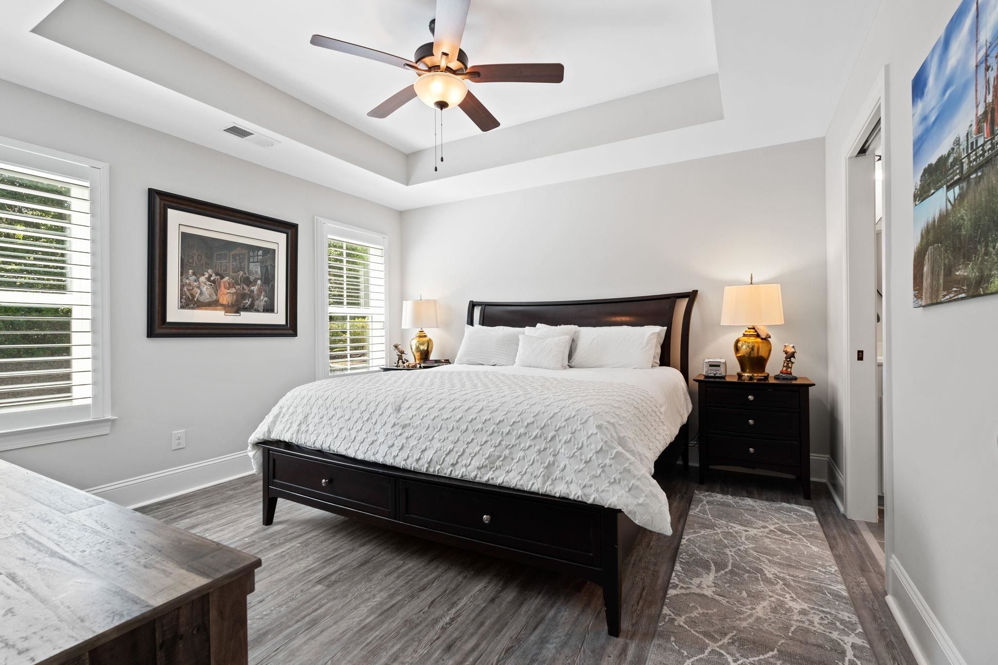 - Tray Ceiling(s), Ceiling Fan(s), Dual Sinks, Main Level Primary, Split Bedrooms, Separate Shower, Walk-In Closet(s), Window Treatments, Breakfast Bar, Bedroom on Main Level, Entrance Foyer, Kitchen Island, Stainless Steel Appliances, Solid Surface Counters