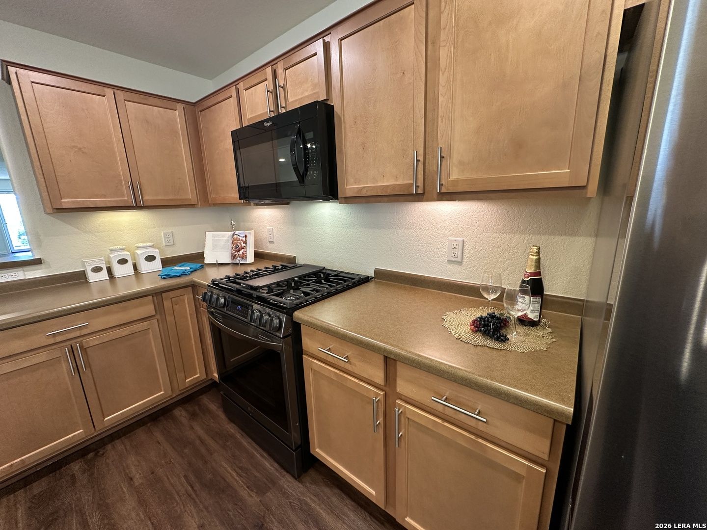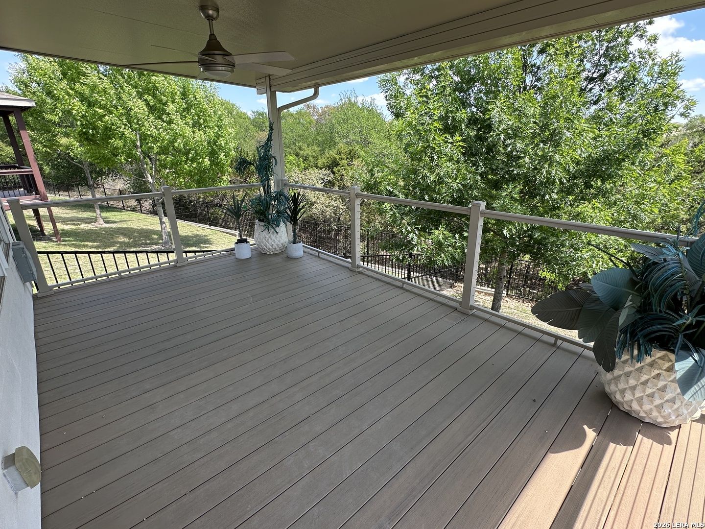 Beautifully appointed move in ready single story in the quiet over 55 community of Hill Country Retreat by Del Web. Open floor plan, many updates and aftermarket upgrades including Diamond composite deck with cover overlooking the serene greenbelt, custom master closet from Container Store, newer whole house waterproof LVP, front and back security doors plus 2 storm doors, newer LG refrigerator, LG stove (2025), recently painted, garage 220 plug for electric vehicle, water softener , newer gas water heater, new garage door (2025), 220 plug wired on deck for a future hot tub, honey comb Levolour custom blinds with remote which lower and rise from the top or bottom, ceiling fans throughout, new wrought iron fence in back, reverse osmosis water system, 1 hp garbage disposal, newer commodes, bring your buyers today!!