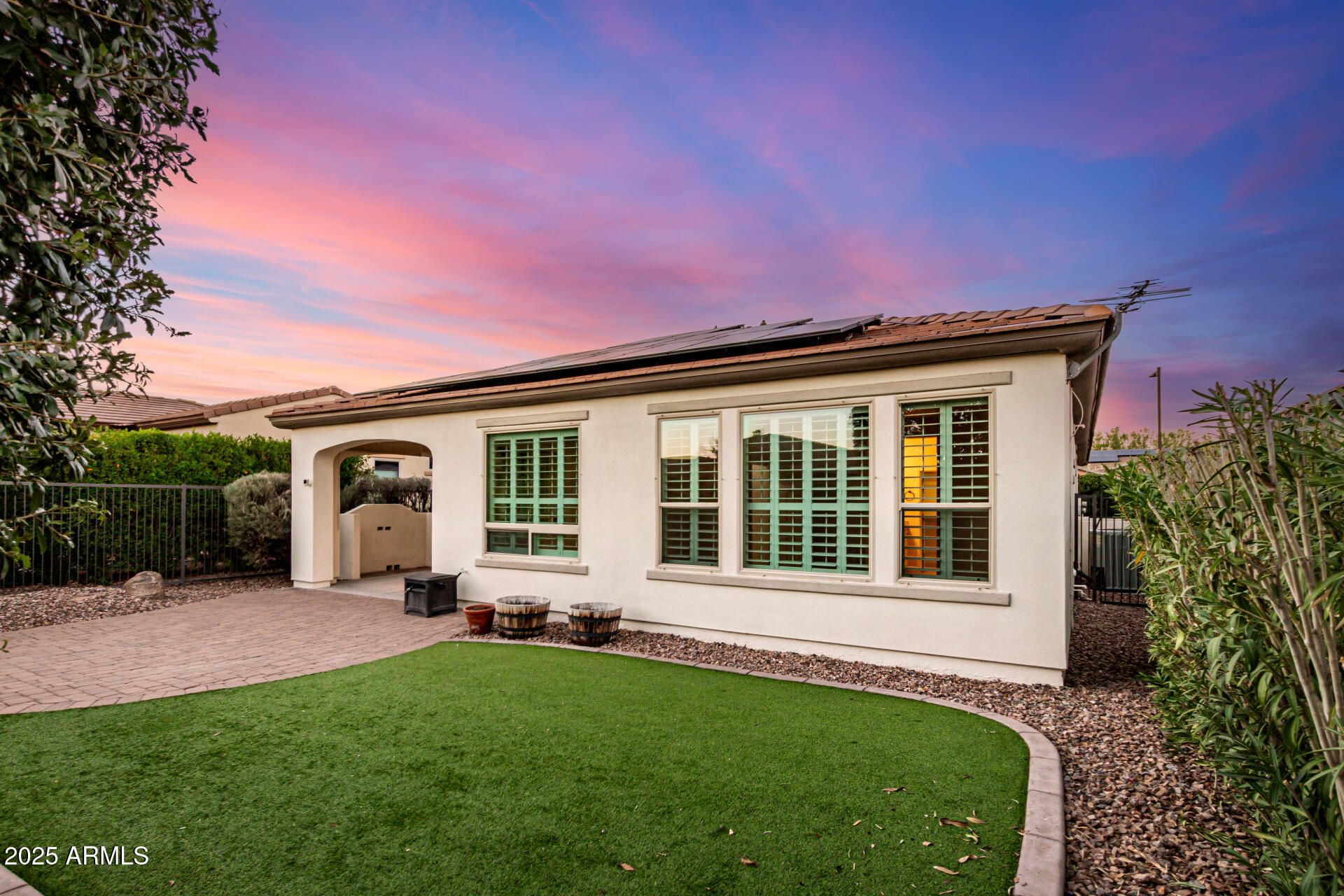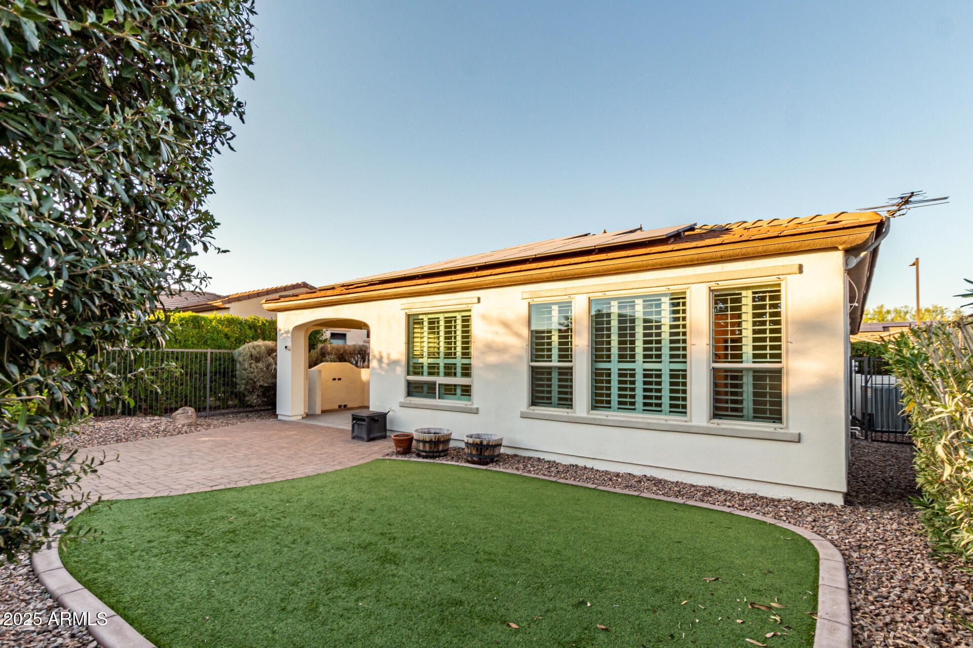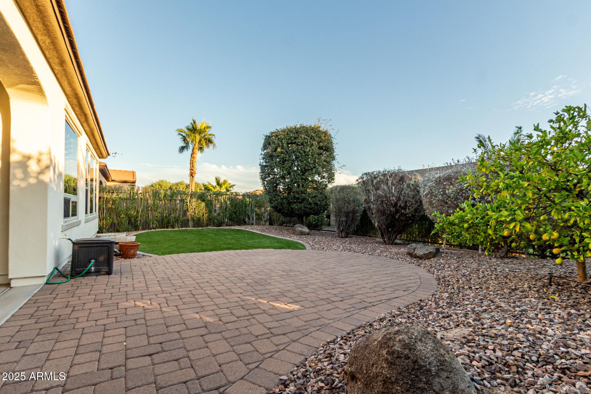 RARE 2011 MONACO MODEL WITH SOLAR - BEAUTIFULLY UPDATED & MOVE-IN READY! Perfectly situated on an ELEVATED LOT on a quiet cul-de-sac, this tastefully updated Monaco plan features a south-facing, fenced backyard with privacy. From the inviting courtyard and widened driveway to fresh exterior paint and refreshed front landscaping, the curb appeal is impressive. The home has natural light, neutral paint, plantation shutters, and taller baseboards. Tile flooring grout has recently been re-stained to give a clean, modern feel. The great room offers large view windows, while the stylish kitchen includes white cabinets, granite counters, center island, breakfast bar, bay window nook, and newer stainless-steel appliances. The split primary suite features a wall of windows, walk-in closet, granite, dual sinks, and extended tiled shower with bench. A separate guest area, office/den with built-in workstation, solar screens, epoxy-coated garage floor, plenty of garage storage cabinets and overhead storage, newer water heater & updated Tesla solar panels and meter provide comfort, energy savings and peace of mind. Welcome to the active adult community of Trilogy at Vistancia where you will find outstanding amenities, including 2 clubhouses, pickleball, tennis, bocce ball, fitness centers, swimming & golf, just to name a few! Trilogy is part of the community of Vistancia, a master-planned development that includes beautiful homes, parks & hiking trails, award-winning community centers & golf courses, commercial & retail shops, along with incredible rolling hills & desert landscape all around! The future 320-acre 5 North at Vistancia commercial core is coming soon, home to the new ALA K-12 charter school. Vistancia has ranked as the #1 Master Planned Community in AZ for 12 years in a row (2013-2024)! Resort-style living at its best. Come & see why!