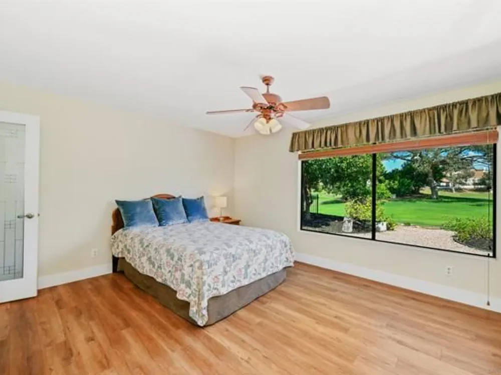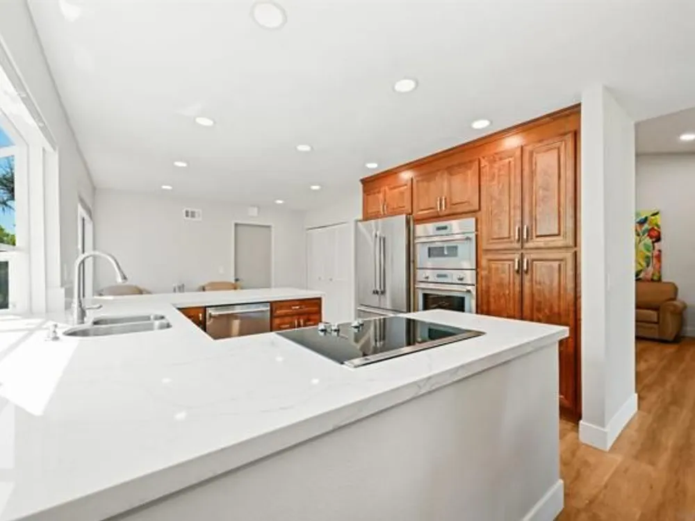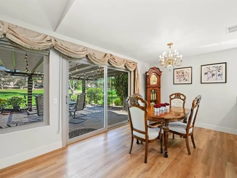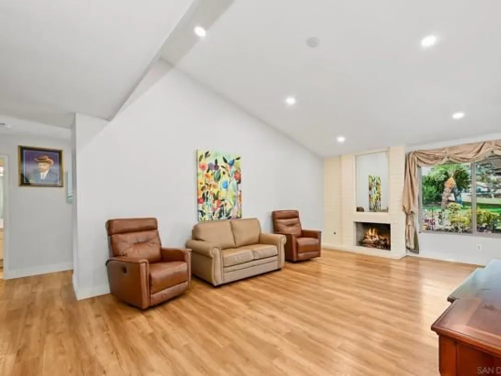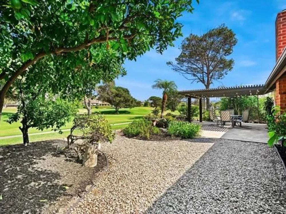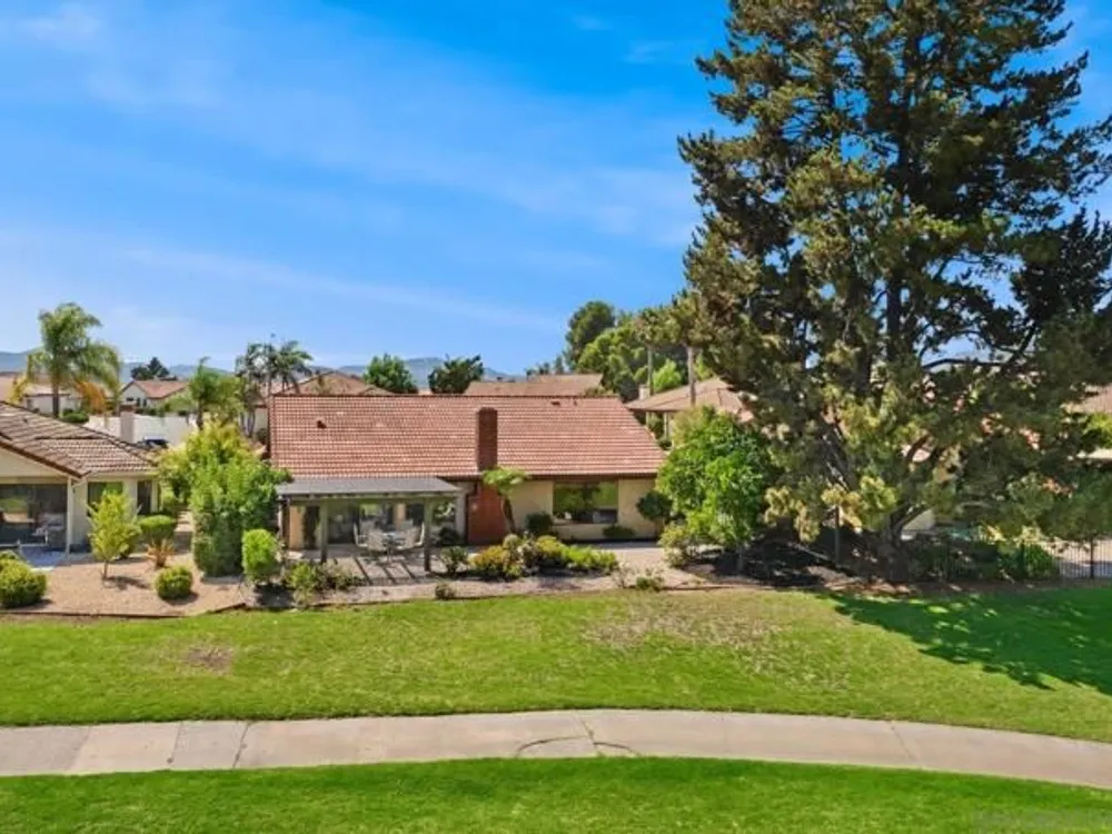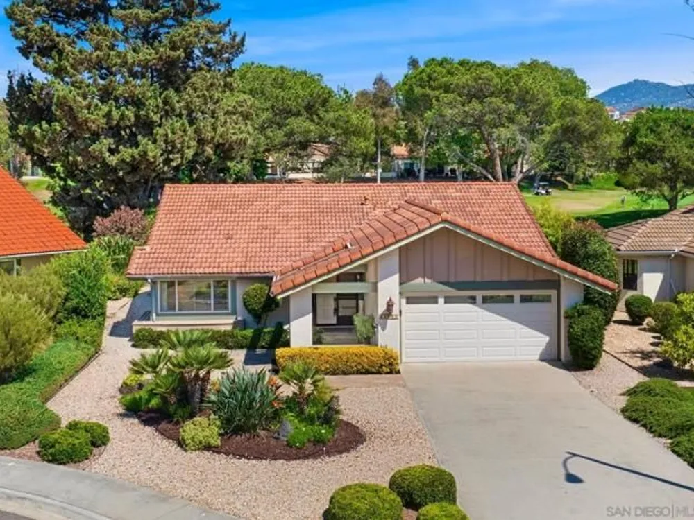 Premium location situated directly on the beautiful Oaks North Golf Course, this single-story home offers panoramic golf course views on a quiet cul-de-sac in the highly desirable 55+ Oaks North neighborhood. Enter and gaze upon soaring high vaulted ceilings, open floor plan with lots of light creates an inviting atmosphere. Recent renovations include a gorgeous open kitchen with quartz countertops, stainless steel Thermador appliances, garden window, bar seating, nook and formal dining areas. A spacious living room with a fireplace is ideal for relaxing or entertaining. Upgrades also include luxury vinyl plank flooring, recessed lighting, HVAC system, water heater and quartz countertops in the primary bathroom, secondary bathroom and hallway cabinet, the primary bathroom also showcases a walk-in shower with stone-look tile and pebble accents. Meander outside to a generous patio with a new aluminum pergola—perfect for relaxing, dining, or entertaining while taking in the serene golf course scenery. The easy care yard has a bounty of fruit trees including Valencia orange, grapefruit and lemon. Additional highlights include an indoor laundry and attached 2-car garage. Residents of Oaks North enjoy access to the Oaks North Community Center offering multiple social and recreation activities including a community pool, tennis courts, pickleball, lawn bowling, exercise room, billiards, library etc. With close proximity to the Rancho Bernardo Inn, Bernardo Winery, golf courses, shopping, and dining, this home truly has it all!