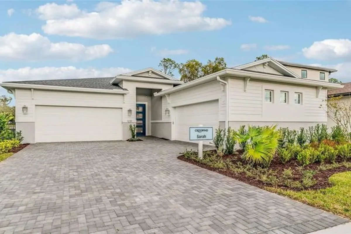 Pre-Construction. To be built. Experience Cresswind DeLand—an active adult, gated community just ten minutes from Historic Downtown DeLand, Florida. Perfect for buyers seeking a vibrant, resort-style lifestyle, this neighborhood offers exclusive amenities including a lakeside clubhouse overlooking Lake Winnemissett. Enjoy pickleball, tennis, scenic walking trails, a resort-style pool and spa, resistance pool, and lively event areas designed for relaxation and recreation. Stay fit with the innovative Cresswind SmartFit Training Center, featuring EGYM technology for personalized, state-of-the-art twenty-minute workouts, twice a week. A dedicated, full-time Lifestyle Director keeps the social and activities calendar full, ensuring residents have opportunities for entertainment, wellness, and connection suited for the 55+ lifestyle. Cresswind DeLand is ideally located near top dining, recreation, and entertainment venues. Residents can explore the renowned Main Street in DeLand, with its thriving local art scene, unique shops, and cultural attractions, as well as enjoy the nearby natural springs and parks. For those searching for energy-efficient homes, low-maintenance living, and a pet-friendly environment, Cresswind DeLand offers the perfect blend of comfort, convenience, and dynamic community living for active adults. Discover the Sarah Floor Plan—a spacious, meticulously designed new construction home that perfectly suits today’s discerning buyers. Featuring 3 generously sized bedrooms, 3.5 luxurious bathrooms, a versatile flex room, and an oversized 3-car garage, this home is ideal for families, professionals, and anyone seeking extra space for guests or hobbies. The gourmet kitchen impresses with a premium 30” stainless steel gas cooktop, chimney-style exhaust hood, quartz countertops, and sleek frameless European-style cabinetry, plus thoughtful storage details like pot and pan drawers and an extended dry bar. Entertain in the expansive Great Room, highlighted by 16’ x 8’ sliding glass doors that lead to a spacious lanai for seamless indoor-outdoor living. The Owner’s Suite serves as a private retreat with a deluxe shower, upscale finishes, and tile-to-ceiling details in all bathrooms. Stylish laminate wood plank flooring flows through the main living areas, flex room, and Owner’s Suite. The flexible flex room adapts as a home office, fitness area, or guest space. Located in a desirable gated community near top conveniences, the Sarah Floor Plan blends luxury, comfort, and practicality. All uploaded photos are stock photos of this floor plan. Actual home may differ from photos.