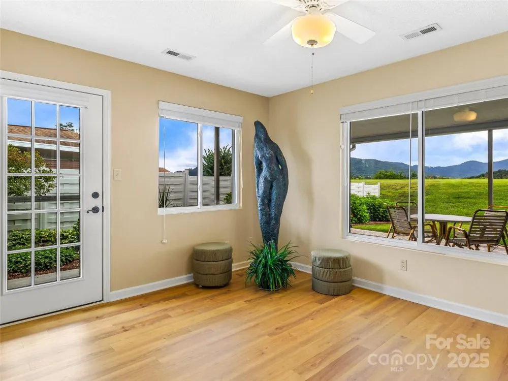 MOVE IN READY and Pet Friendly! With Views! Stunning mountain views captivate this charming one-level townhome, nestled in a picturesque neighborhood with easy access to all that Asheville has to offer! The home's open floor plan is bathed in natural light creating an idyllic setting to enjoy your days. Lush landscaping brings the beauty of nature to your door. The spacious covered patio is perfect for evening gatherings or lunch with friends, all the while enjoying the views! This 55+ community fosters an active lifestyle, with opportunities to socialize at the clubhouse or swim in the outdoor pool. Recent updates include luxury vinyl plank flooring, a large kitchen island, granite counters, stainless appliances, kitchen sink and faucet with reverse osmosis filter, recessed LED lighting, new exterior doors, new garage doors and new garage door opener. If you are looking for care-free living and a relaxing lifestyle with beautiful mountain views, this property is the one for you! Schedule your private tour today!