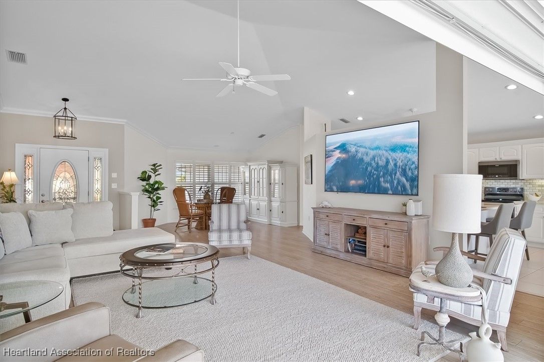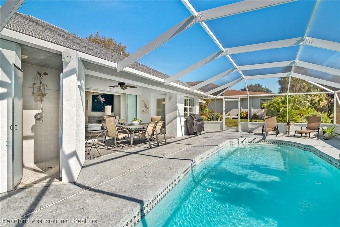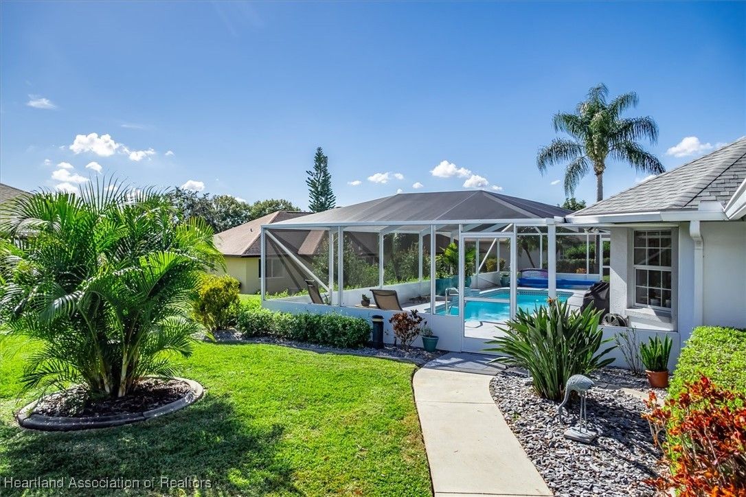 Executive split 3 bedroom pool home that has been well-maintained. 18 seer A/C unit installed in the last 5 years, along with a salt/chlorine generator for the pool and re-screened pool cage. New shingles in 2020. Hard surface flooring throughout for easy maintenance. Master bathroom upgraded within last few years. A well designed kitchen with plenty of cabinets and pantry space. Interior laundry room with plenty of closet space. Stepping into the house from the front door gives you a great feeling of spaciousness and cheer. Enjoy the pool with an enclosed shower area. All of this located in Tomoka Heights, a very active senior community with tennis or pickle ball courts, shuffle board and bocce ball, upgraded clubhouse for dinners, dances, holiday celebrations, or be part of bingo night, darts competitions, and card games each week. This is a 55 and over community with security gates, and access to Lake Henry. Boat docks available. In the heart of central Florida, Lake Placid, the Caladium Capital of the World.