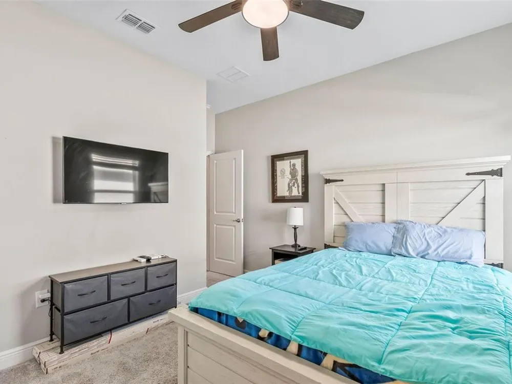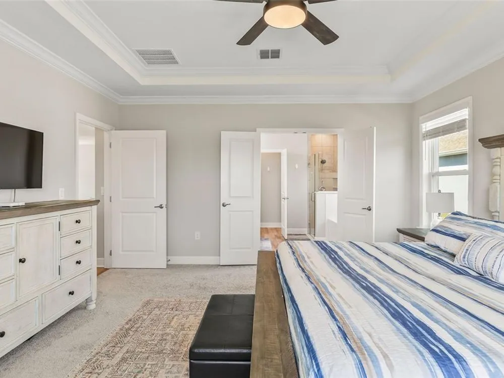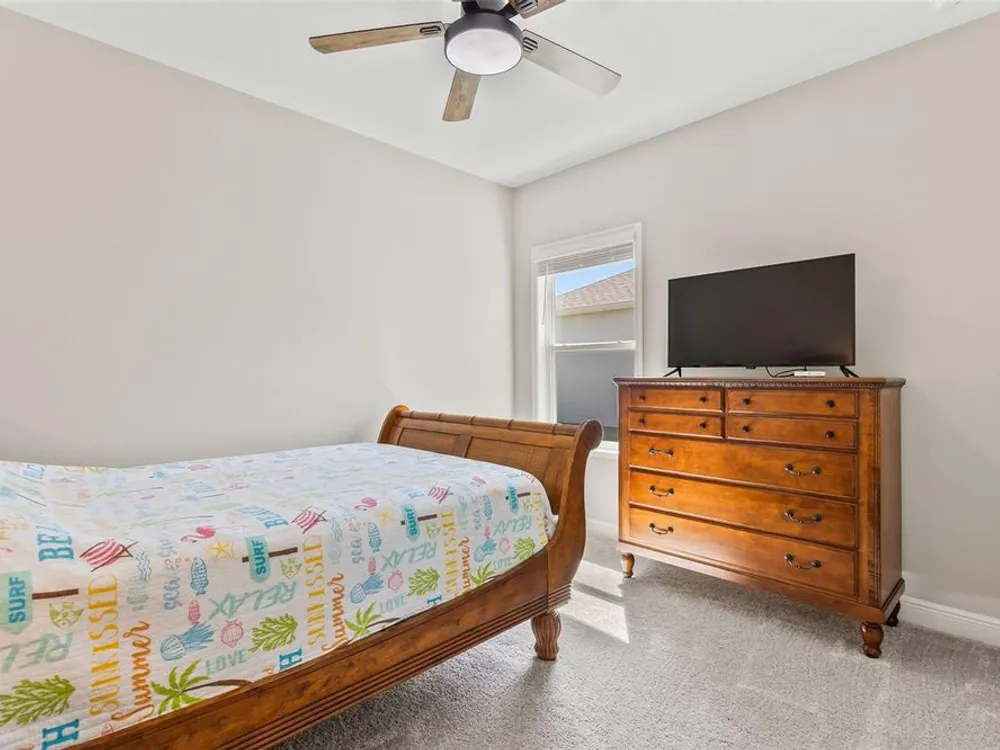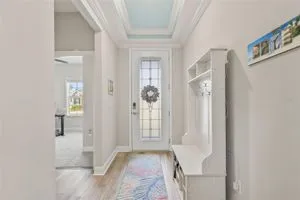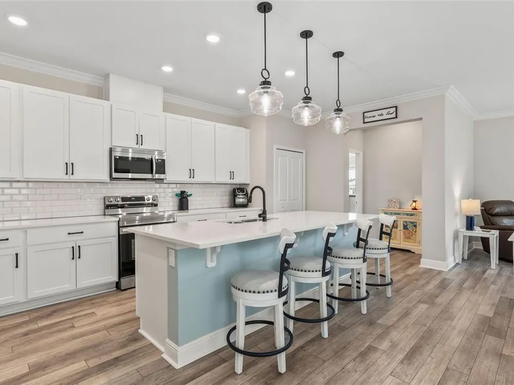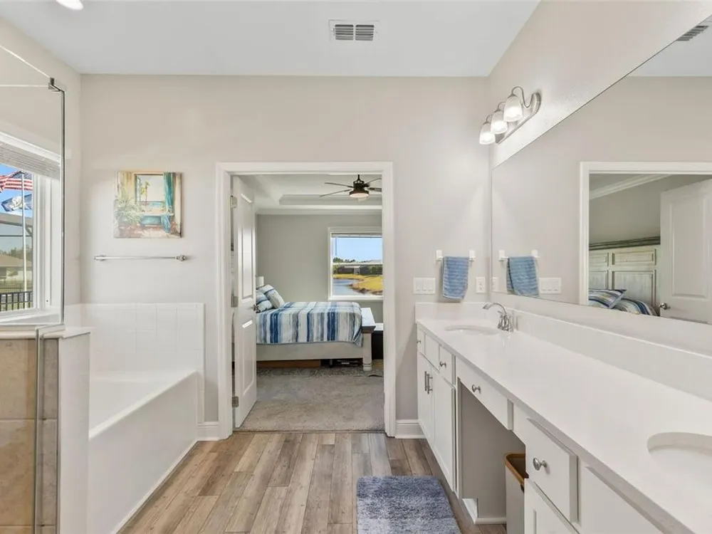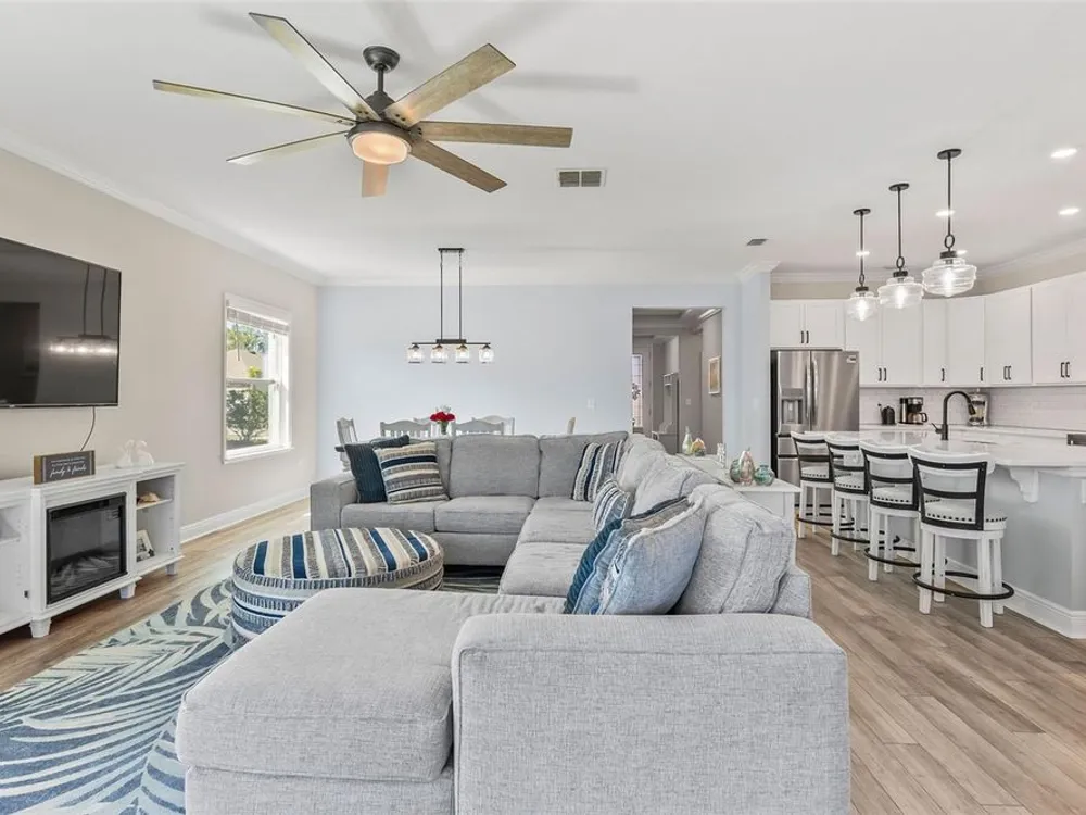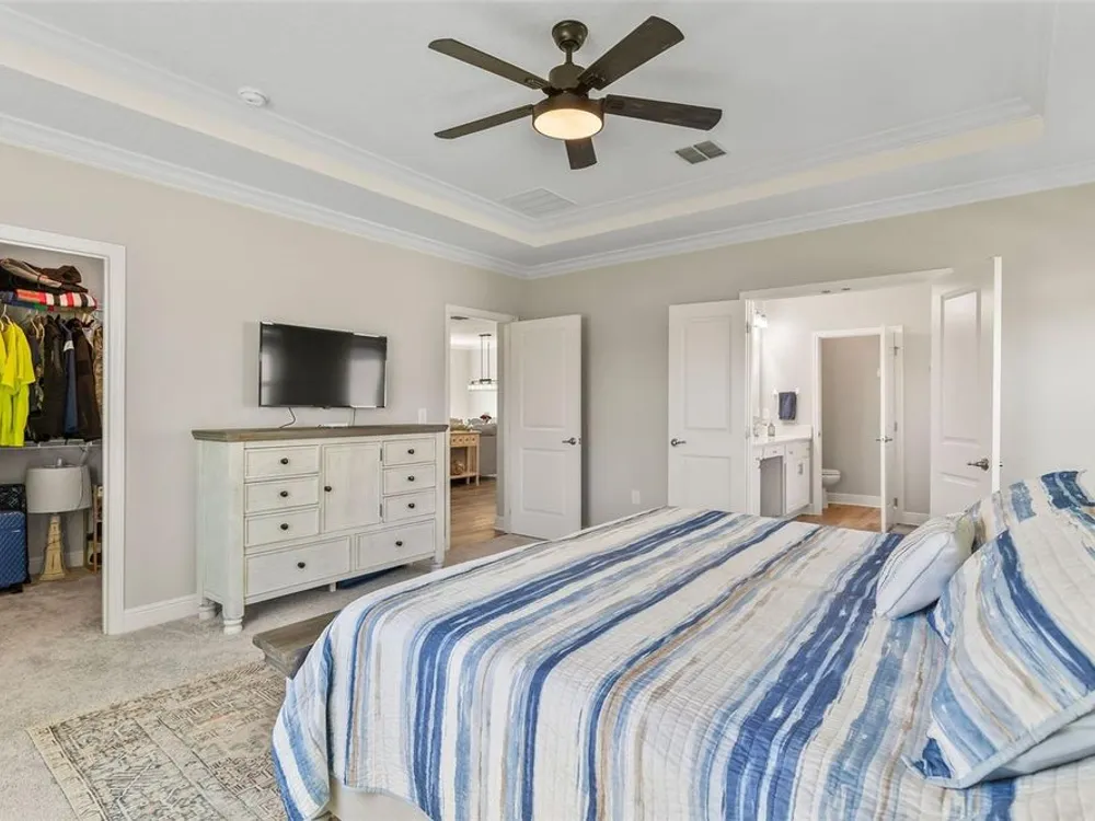 Hello there Beautiful! This absolutely gorgeous home is located in Huntington Green at Hunters Ridge, a lovely 55+ community in Ormond Beach, Florida! This nearly new home is in pristine condition, eagerly awaiting new owners to make it their own. The kitchen features soft-close cabinets and quartz countertops. The white subway tile backsplash beautifully complements the cabinets, creating a timeless yet sophisticated appearance. The owners invested significantly in upgrades, including crown molding, 6-inch baseboards, 9-foot ceilings, and tray ceilings in both the entry foyer and the primary bedroom. Luxury vinyl plank flooring extends throughout all the main areas of the home, while cozy carpeting graces the bedrooms. With four bedrooms and three full baths, there is ample space for guests. Each bathroom features quartz countertops. The primary suite is incredibly spacious, featuring picturesque views of the pond. The bathroom is equally roomy, equipped with a soaking tub and a walk-in shower. You'll find ample countertop space along with numerous drawers for storage. A walk-in closet completes this space. Enjoy your morning coffee on the screened lanai. In the evenings, savor cocktails on the patio while watching the sun set over the pond. This property offers ample space to entertain, both indoors and outdoors. Huntington Green amenities include its own pool and clubhouse, and you also have access to the pool at Hunters Ridge. Savor the vibrant community around you, with the beach, shopping, and great restaurants just minutes away!