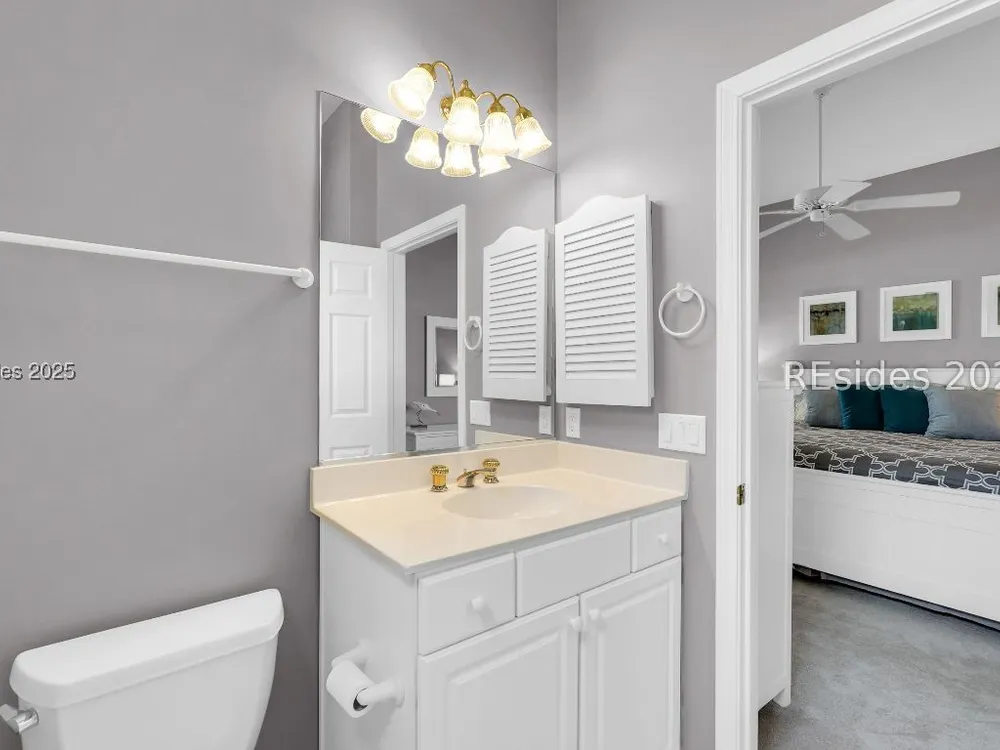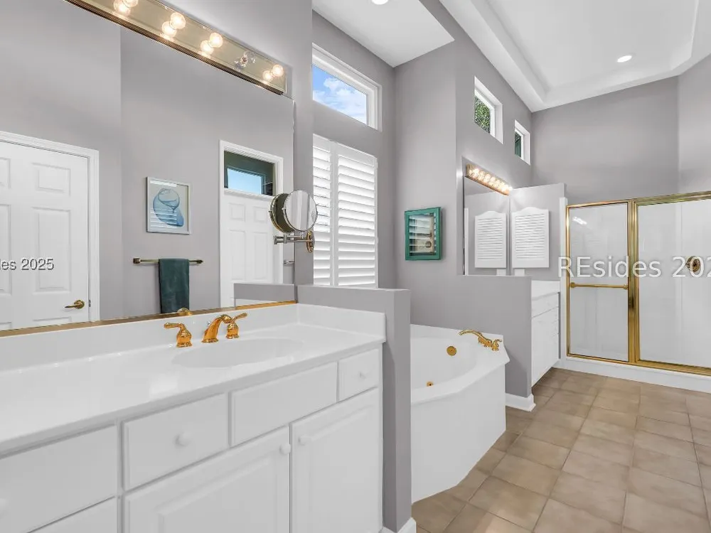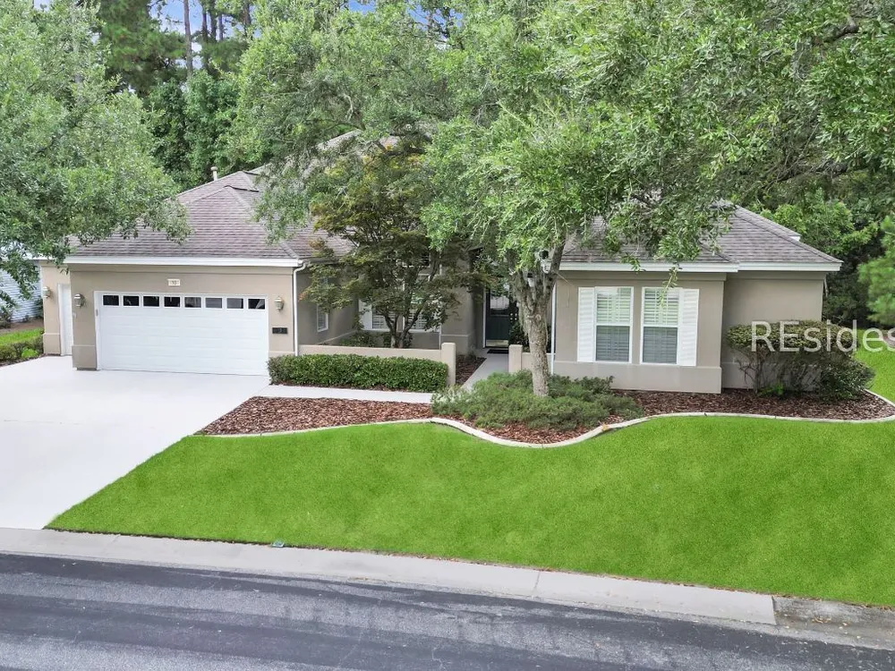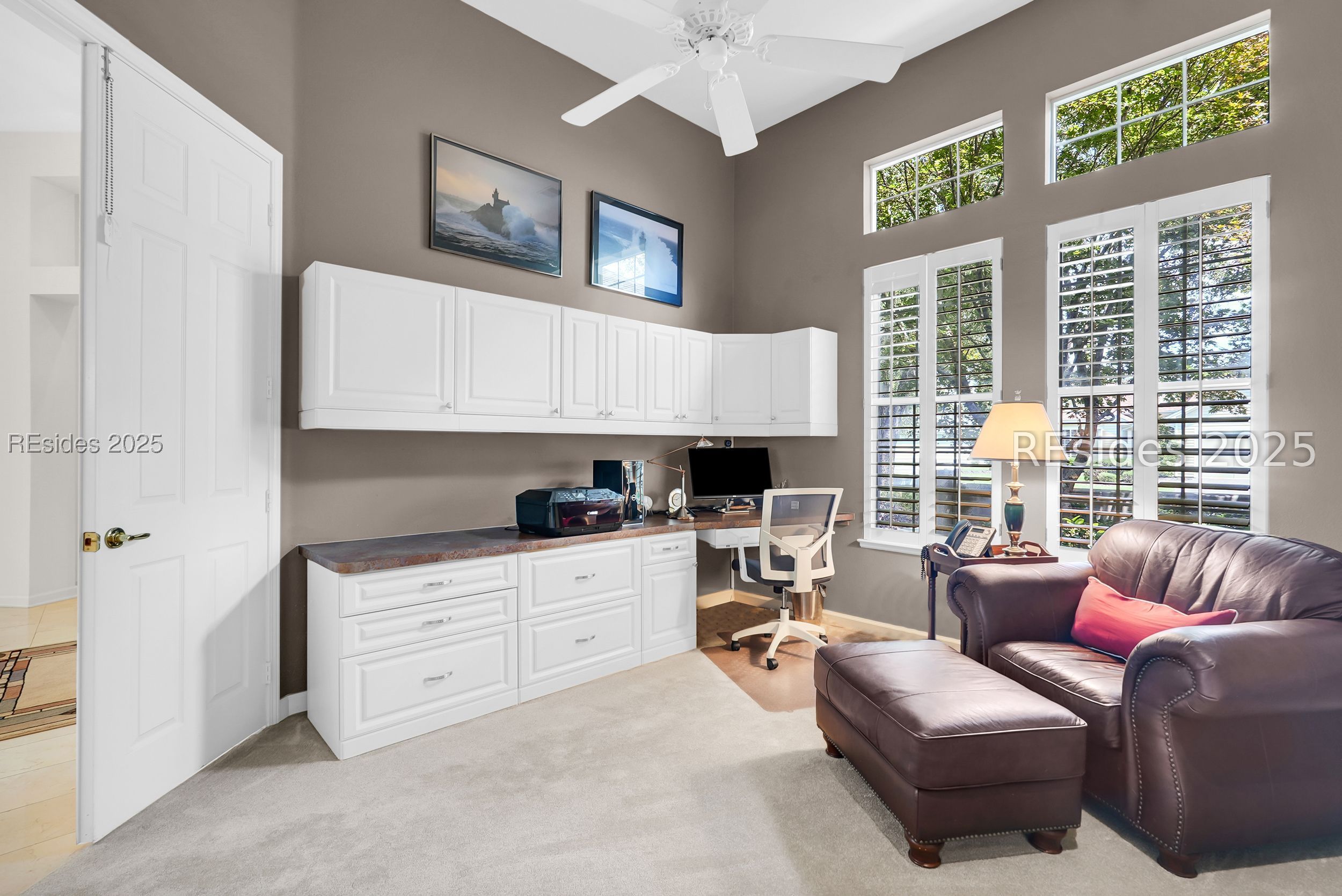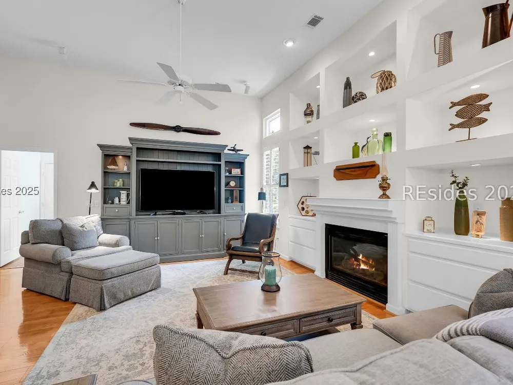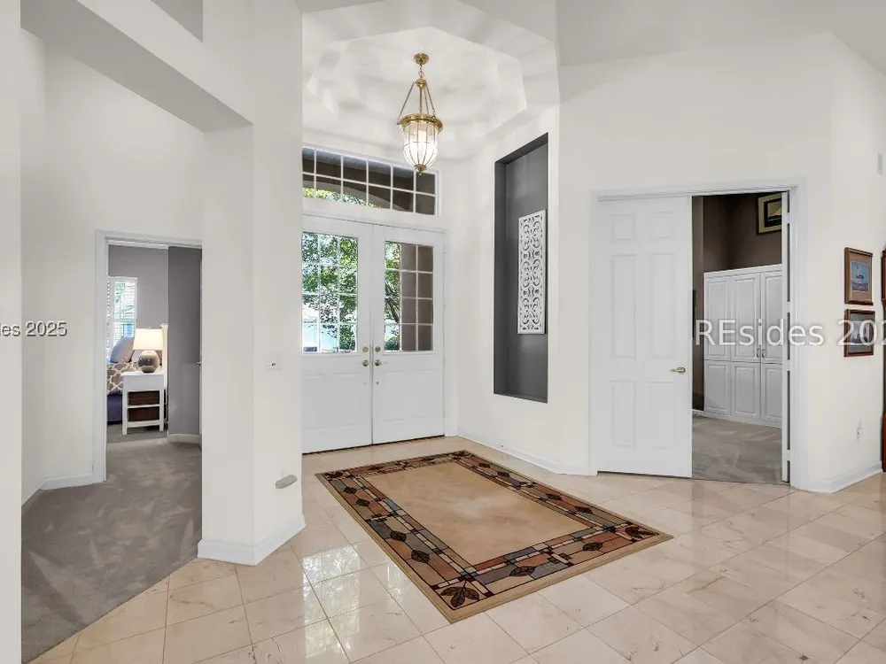 Located on a tranquil court in Sun City Hilton Head lies a rare and refined Del Webb Marion Webster Estate Model-a one story home showcasing soaring 12 foot ceilings and is enveloped by a serene wooded view. The expansive layout encompasses 2 bedrooms, 2.5 bathrooms and includes a versatile den/office/library thoughtfully equipped with a Murphy bed, offering the option of a third bedroom. This home includes two living rooms, one is equipped with built ins and a cozy fireplace. Other upgrades include a new A/C, two car garage PLUS golf cart garage, a spacious primary suite w/a closet equipped with custom shelving & an expanded screen lanai which is the perfect space to unwind while admiring views of the water fountain and secluded woods. There are too many upgrades to list, this home is a must see!