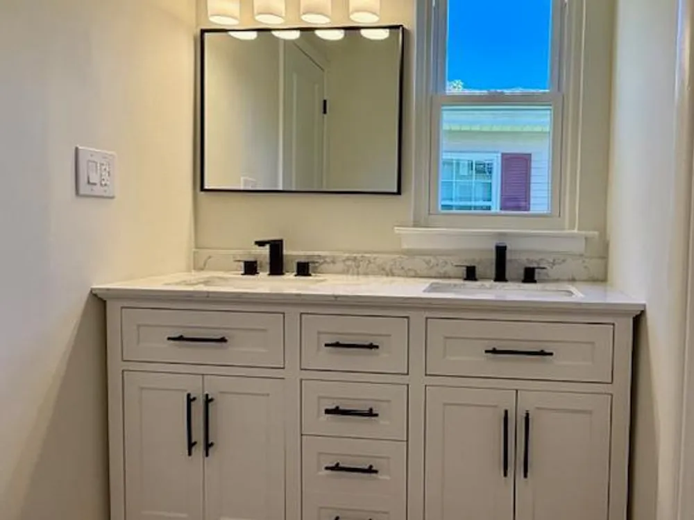 This home was completely renovated and sets the standard for the highly coveted Leisuretowne community. Gorgeous, expanded, NEW KITCHEN with slow closing cabinets and crown moldings that feature a beautiful quartz countertop and NEW stainless steel appliances. NEW double hung vinyl windows with screens, New LED energy saving fixtures throughout the house, NEW Waterproof luxury vinyl plank flooring, NEW luxury carpet and padding. NEW 2 Panel doors and slider. NEW Garage doors with sensor. Custom German Schmear mortar finish over the 2 fire places. High Efficiency Heat Pump with back- up electric heat HVAC system. Energy Star project to include air sealing, blown in insulation (attic), and 2 properly terminated bathroom exhaust fans. NEW updated bathrooms with marble top vanities, matte black faucets. NEWER Roof (2022) Freshly painted and brand new landscaping. So much to offer. Do not hesitate! Move-in Ready!