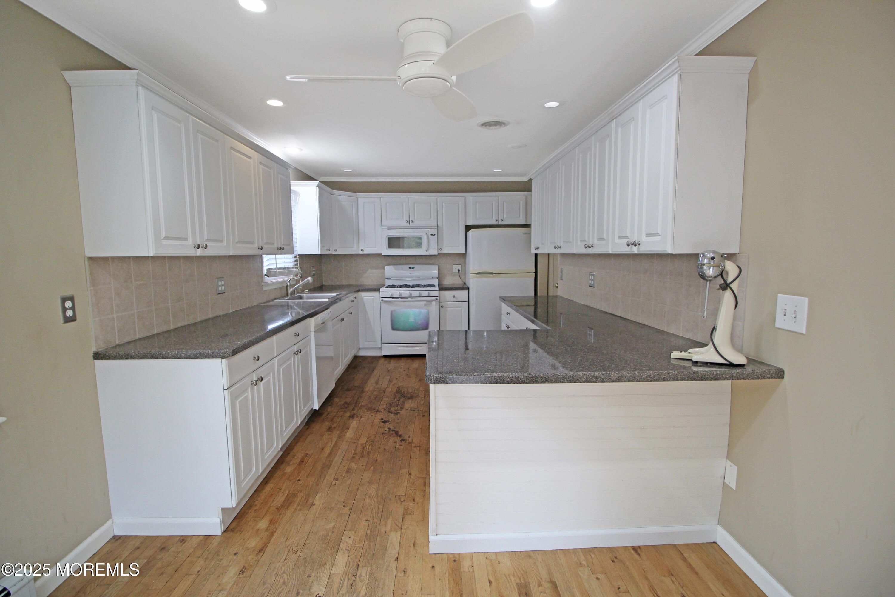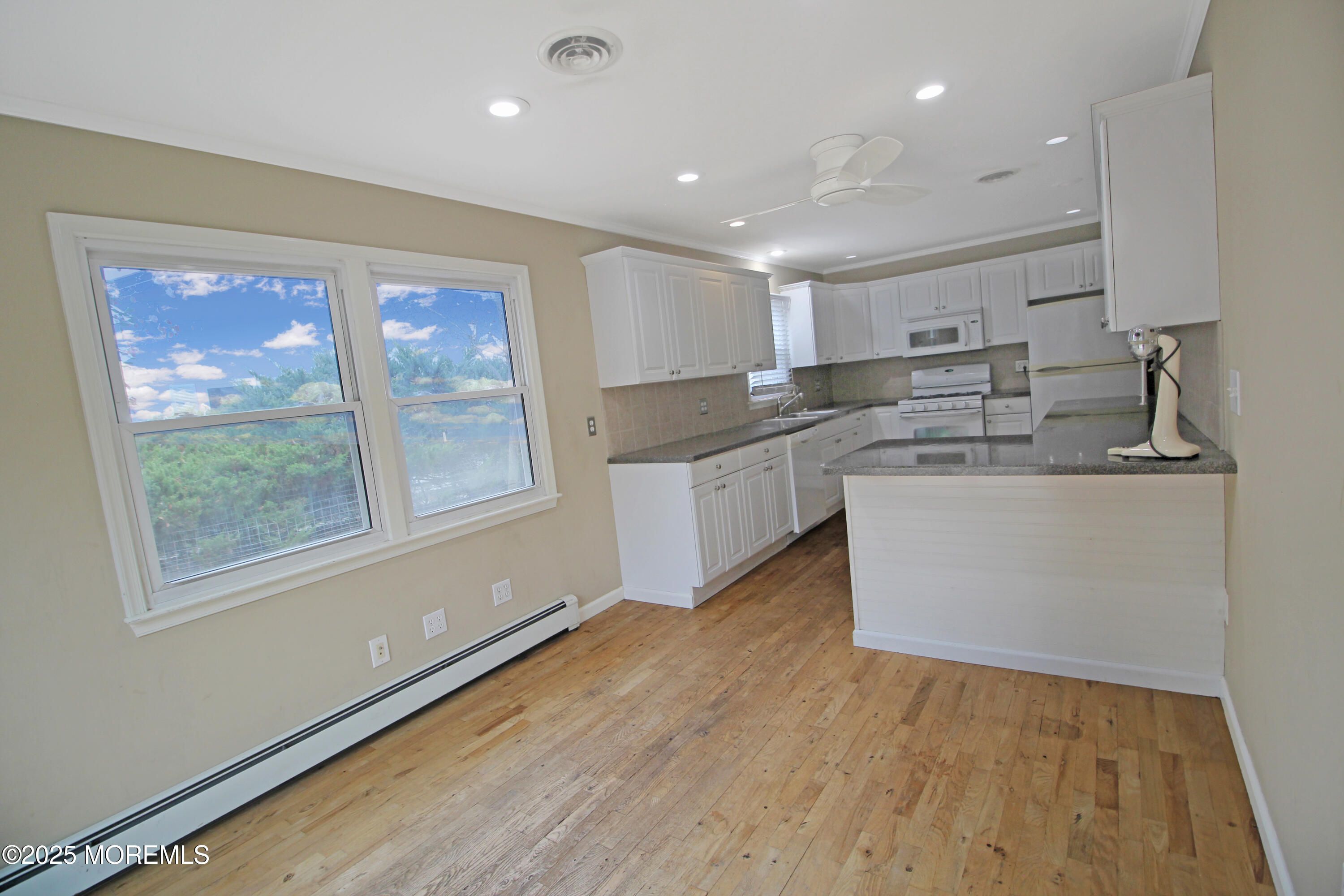 Welcome to this Chatham model home located in the desirable 55+ community of Silver Ridge Park West. Offering 2 bedrooms and 2 full bathrooms, this residence is designed for comfort and convenience. The large living room flows seamlessly into an adjacent dining area, perfect for entertaining or relaxing with family and friends. The refreshed kitchen features abundant cabinets, generous countertop space, and a breakfast bar, while the adjoining den opens through sliding doors to a large patio overlooking a private backyard retreat. Additional highlights include replacement windows, wood floors, and a one-car garage. Ideally situated near Silver Ridge Park West's active clubhouse, shopping, the Jersey Shore, and Toms River bus service to Atlantic City and New York City.