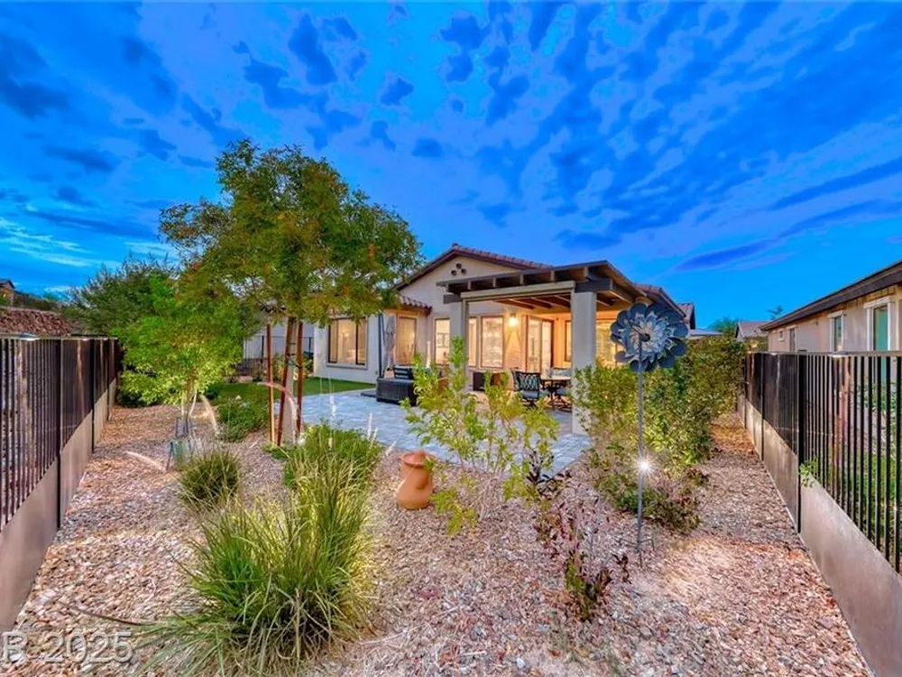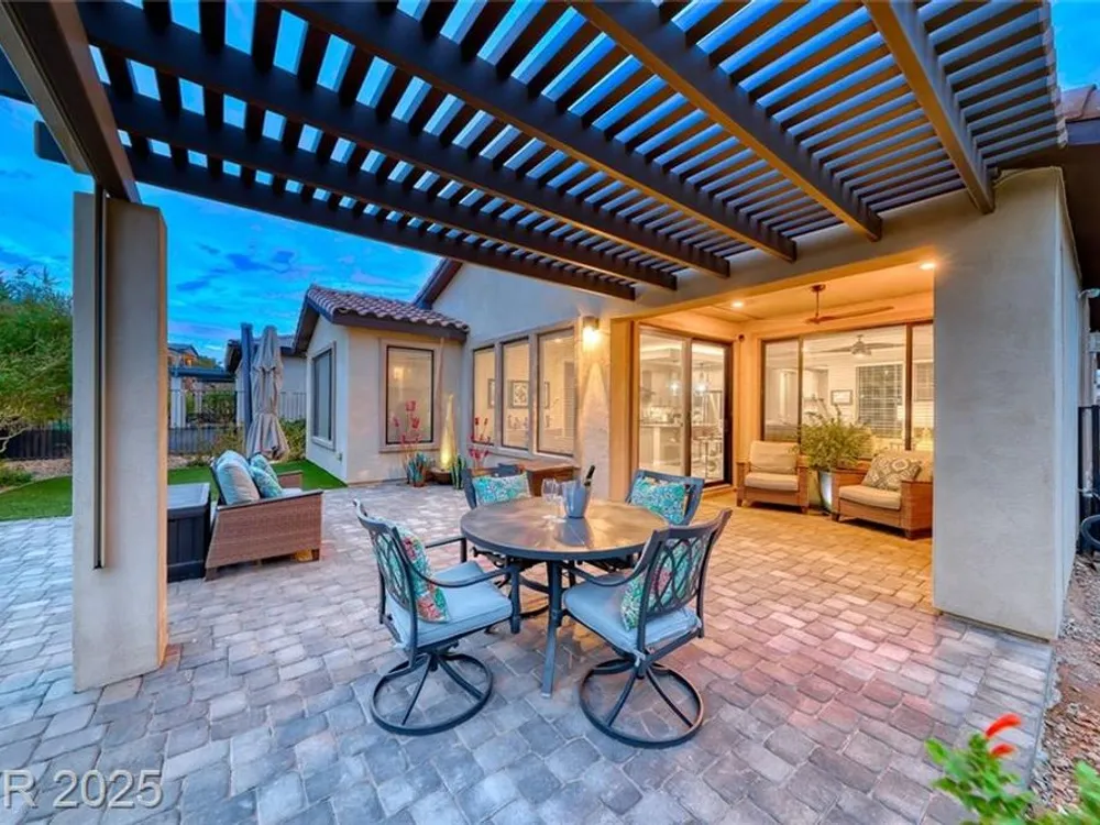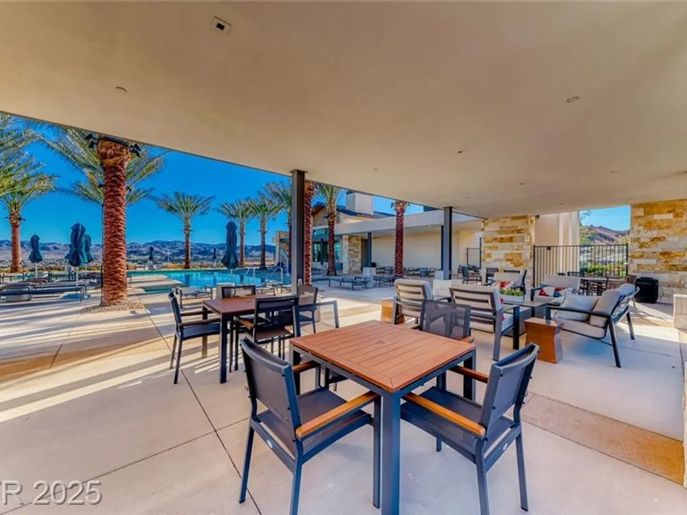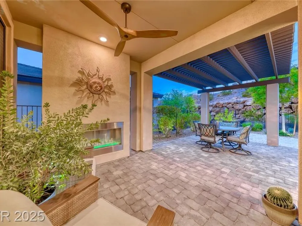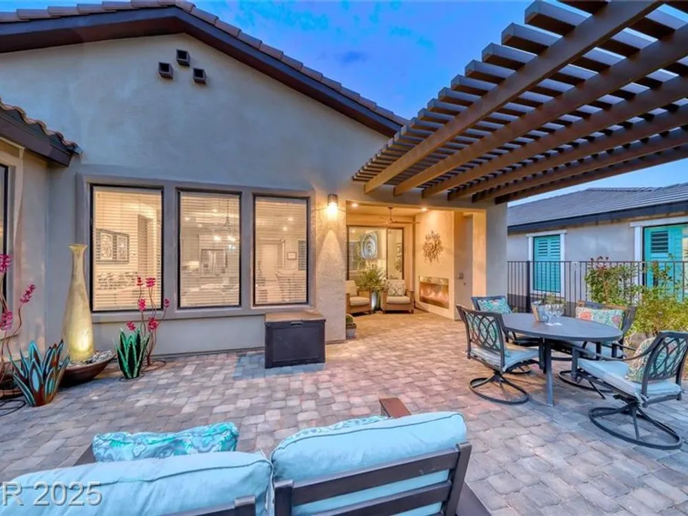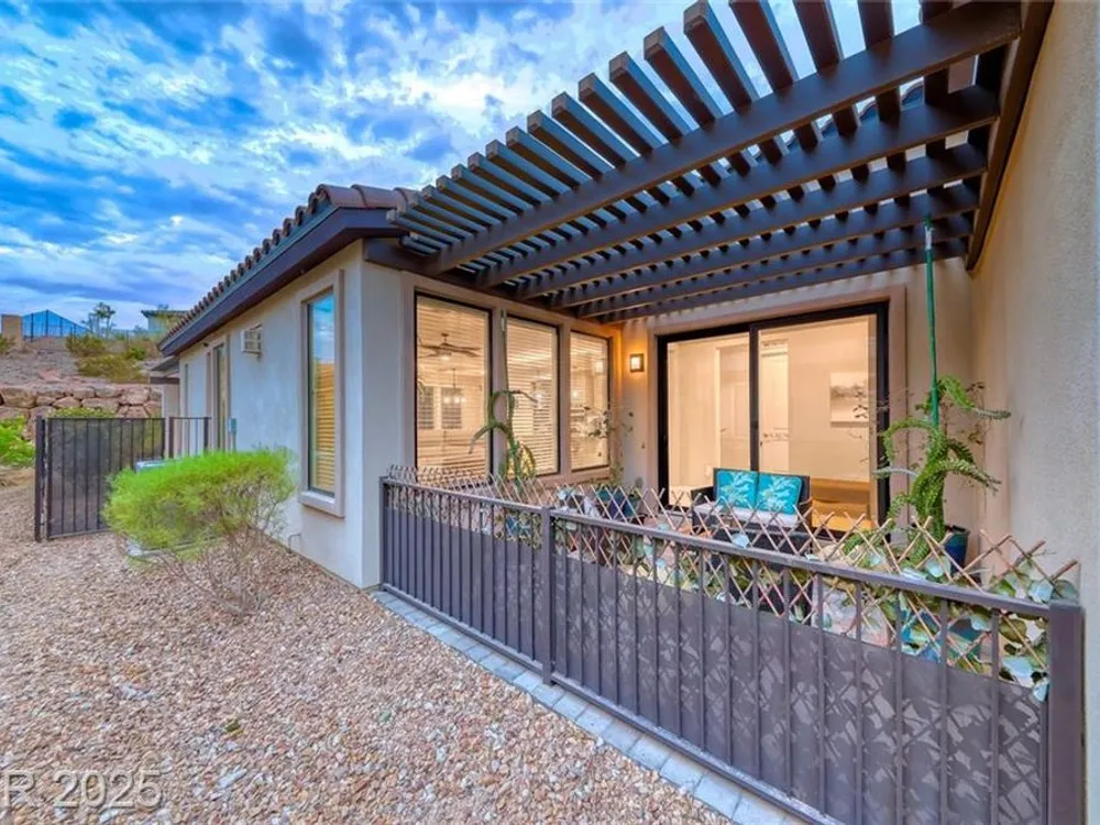 Beautiful single-story 2 bed, 2 bath home in the desirable 55 + Del Webb gated community at Lake Las Vegas! This open layout features hard surface flooring throughout, a spacious great room with fireplace and surround sound, and a kitchen with granite counters, stainless steel appliances, and ample storage. The private primary suite offers a walk-in closet and large walk-in shower, separate from the guest room. A laundry room with sink and shelving adds convenience. Outdoors, enjoy a covered patio, outdoor fireplace, pergola, and private courtyard—perfect for relaxing or entertaining.The 10,000 sf. clubhouse offers billiards, a fitness area, pickleball & tennis courts and many activities for residents. Nestled in Lake Las Vegas, voted Best Master Planned Community, residents enjoy a 320-acre lake with water sports, dining, and concerts. Discover the unmatched lifestyle of this picturesque community!