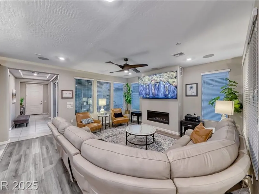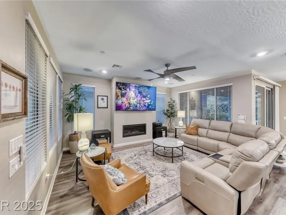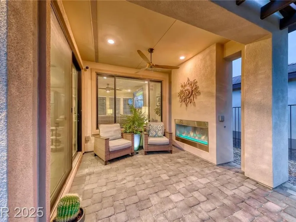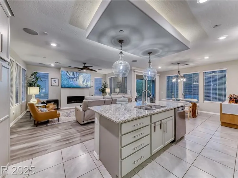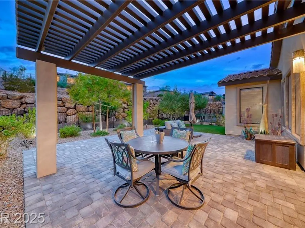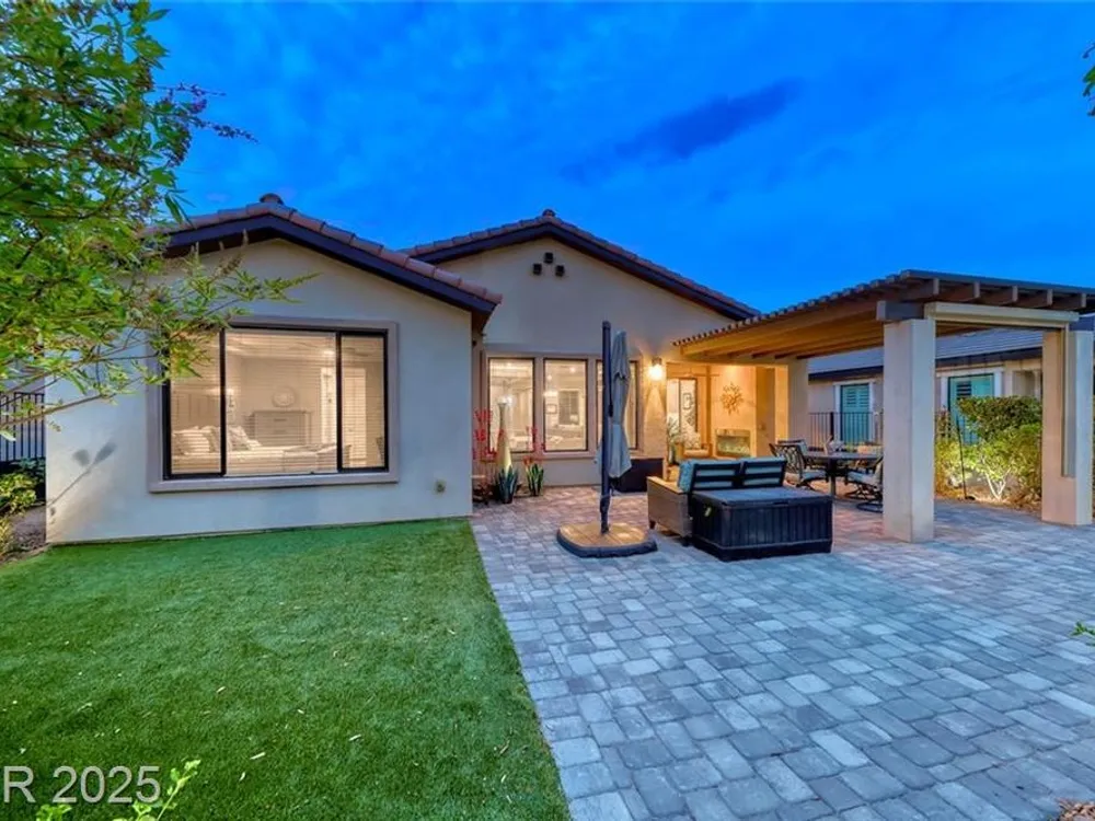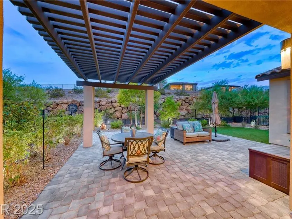Beautiful single-story 2 bed, 2 bath home in the desirable 55 + Del Webb gated community at Lake Las Vegas! This open layout features hard surface flooring throughout, a spacious great room with fireplace and surround sound, and a kitchen with granite counters, stainless steel appliances, and ample storage. The private primary suite offers a walk-in closet and large walk-in shower, separate from the guest room. A laundry room with sink and shelving adds convenience. Outdoors, enjoy a covered patio, outdoor fireplace, pergola, and private courtyard—perfect for relaxing or entertaining.The 10,000 sf. clubhouse offers billiards, a fitness area, pickleball & tennis courts and many activities for residents. Nestled in Lake Las Vegas, voted Best Master Planned Community, residents enjoy a 320-acre lake with water sports, dining, and concerts. Discover the unmatched lifestyle of this picturesque community!