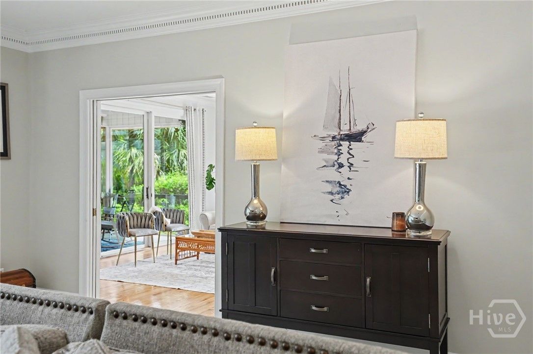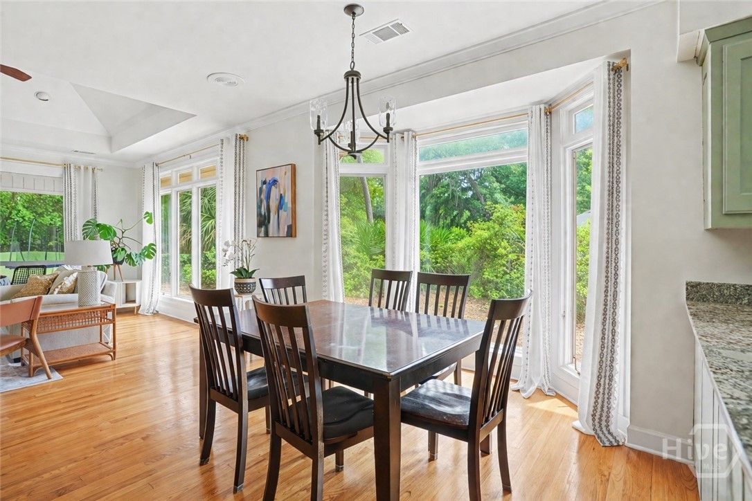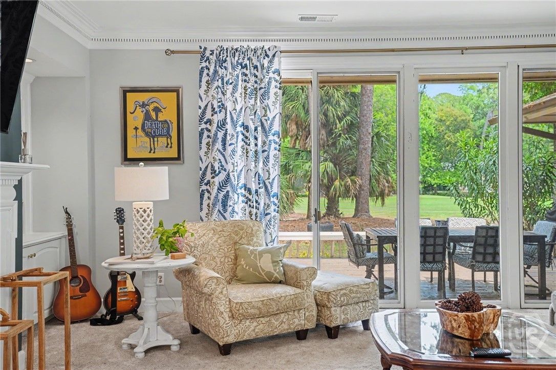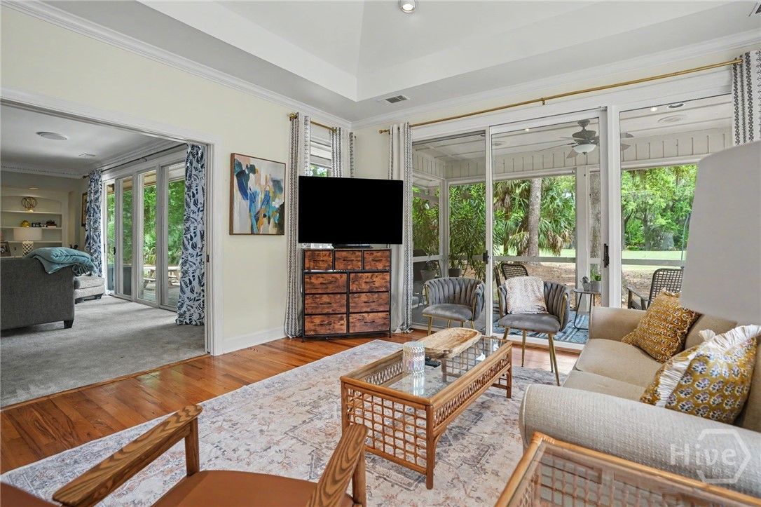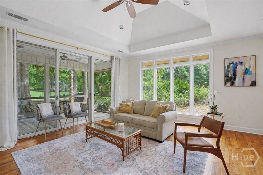 Situated on the 13th hole of the Terrapin Point Golf Course in the highly sought-after Landings community, this beautifully updated ranch-style home offers refined single-level living with picturesque golf course views. The home features three bedrooms and two-and-a-half baths, with thoughtfully designed living spaces including both a formal living room and a spacious family room, off the kitchen. Expansive windows and a screened porch, along with an adjoining deck, provide the perfect setting to enjoy serene outdoor views, a golfer's paradise. The kitchen, renovated in 2019, is equipped with stainless steel appliances and opens seamlessly to the main living areas. Additional interior highlights include a wet bar, crown molding, skylights that enhance natural light, and a mahogany front door that welcomes you home. Since ownership, the home has been further enhanced with significant updates, including new HVAC systems (both units), updated flooring in portions of the home and laundry room, fresh interior paint, a custom closet system in the primary suite, and newly installed gutters. Enjoy the lifestyle in one of Savannah’s best kept secrets offering deep water marinas, six golf courses, fitness center/spa, dining, clubhouses, pools, tennis courts, nature trails, dog park, and more with optional memberships.