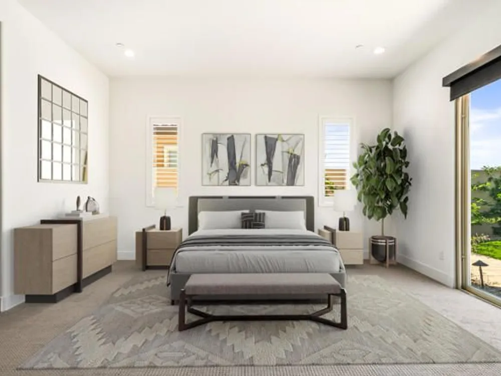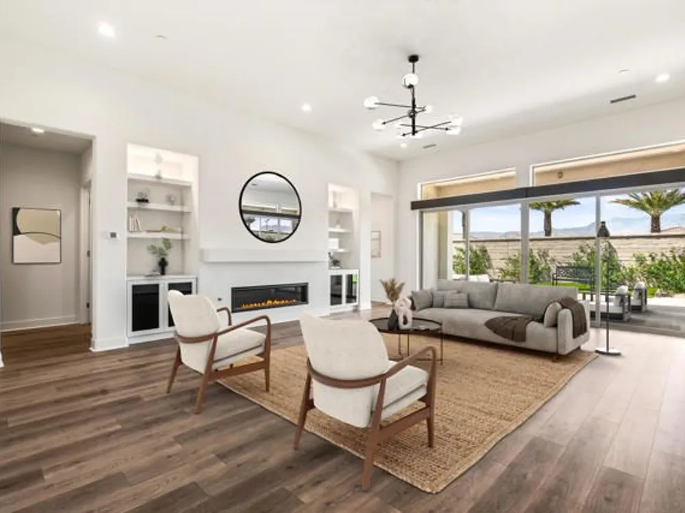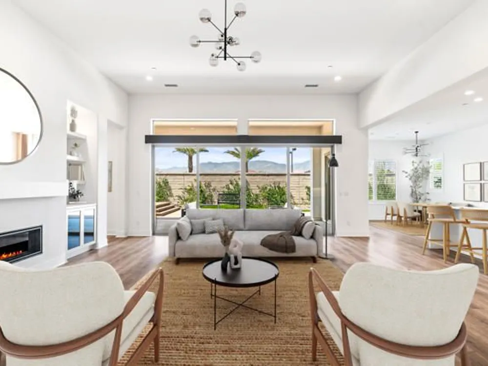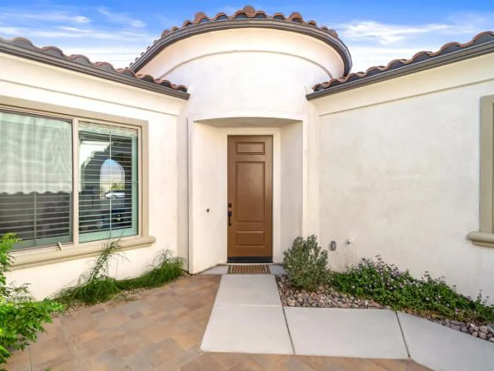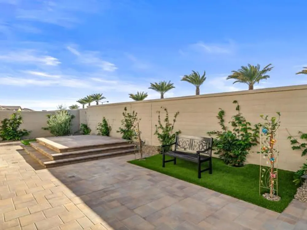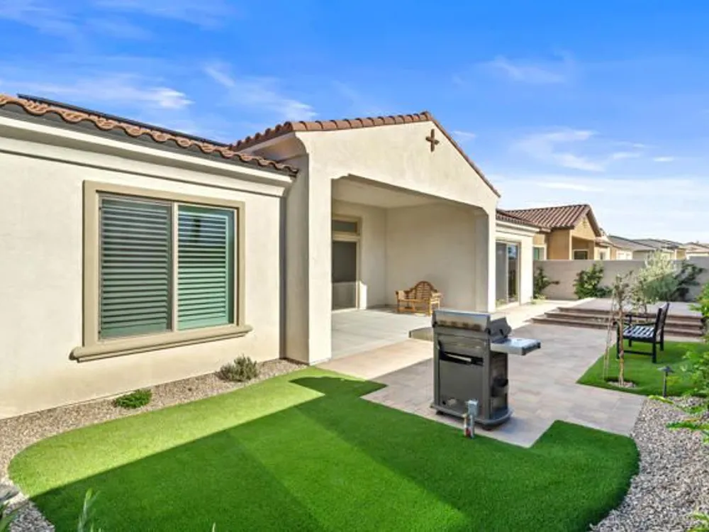 Your Dream Desert Life Starts Here! This south-facing home is the popular Voyage Plan and it's absolutely ready for you--the current owners have already taken care of all the expensive, high-end upgrades you would want! As you step inside from your private front patio, you'll immediately notice the tons of natural light. Everything here feels high-quality and easy to live with, from the custom built-in cabinetry, to the fancy motorized shades and plantation shutters. The kitchen is truly a showstopper; it's a chef's dream with a huge island featuring a gorgeous quartz waterfall edge, top-of-the-line appliances, and all the storage you need in the soft-close cabinets and large walk-in pantry. The living area is cozy yet elegant, featuring a great room centered on a stylish fireplace with built-in storage on both sides, while the dining area offers a lovely view of the mountains. Need a quiet spot to work or manage bills? The den is perfect, set up with custom shelving, a desk, and storage. With three spacious bedrooms and three-and-a-half baths, there's plenty of room for family and guests. The primary bedroom is your private oasis, complete with a spa-like shower, double sinks, and two large closets! Out back, the yard is professionally finished and ready for entertaining. You'll especially love the elevated viewing platform--the perfect spot for evening cocktails and taking in those spectacular desert sunsets. Practical features include fully paid-off solar panels (a huge savings!) and an oversized garage that fits two cars plus your golf cart. Best of all, you get full access to the incredible Del Webb lifestyle, including a resort-style clubhouse, pools, fitness center, tennis, and pickleball. Don't miss this one--it's the perfect place to start living the good life! ** Photos have been virtually staged.