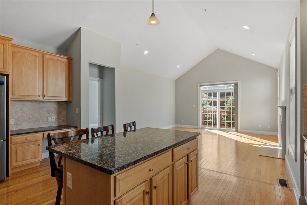 A rare opportunity to own a Single floor living home! Beautiful End Unit Townhome in popular Regency at Assabet Ridge(over 55 community). Close to shops, major routes, restaurants, rail trail, and more! A covered porch welcomes you to this beautiful home. Walk into the tiled foyer entrance. There is a formal dining room. The LR and Kitchen area featuring soaring ceilings and gleaming H/W floors. Lovely spacious kitchen with an island that opens to a light and spacious family room with a gas fireplace and access to the sunny deck. There is a generous sized Master BR with large en suite Bath and two walk in closets. The second BR and full Bath are located at the other end of the unit for privacy. The Laundry room has a large sink and shelving. The two car garage with a garage door opener will keep your vehicles covered, and still have room for storage. A full unfinished basement, is great for storage or possible extra living space to design and build.