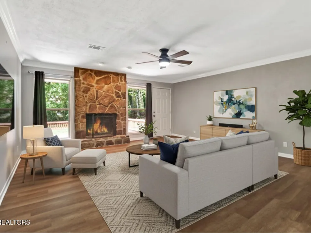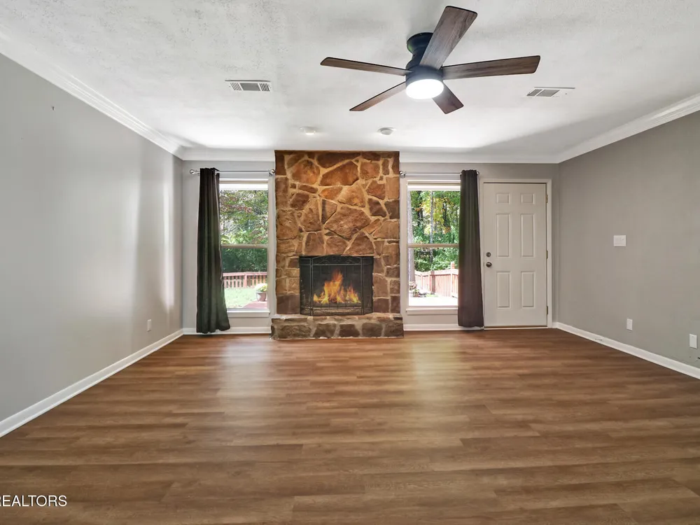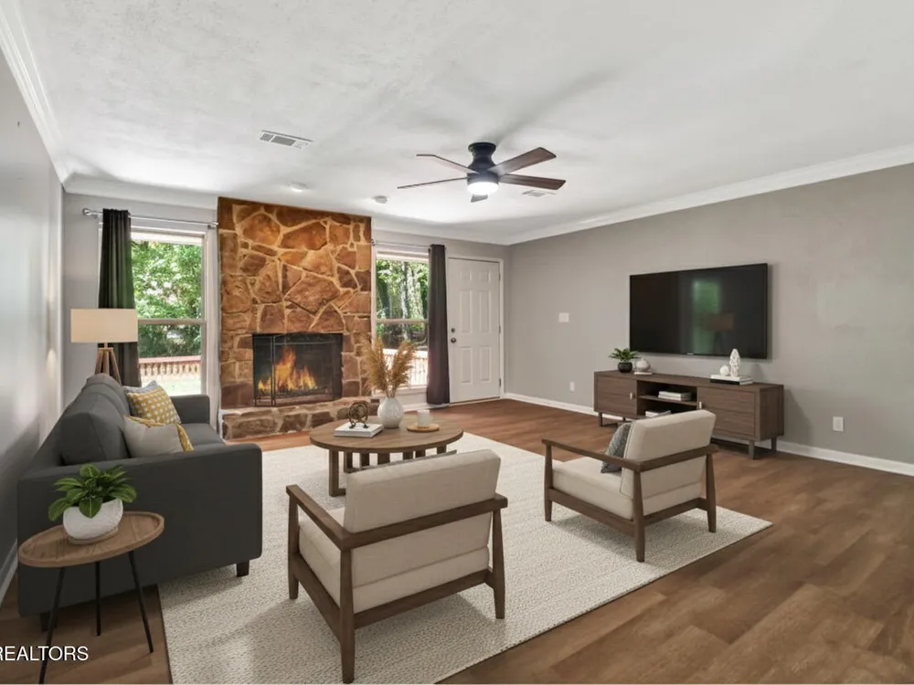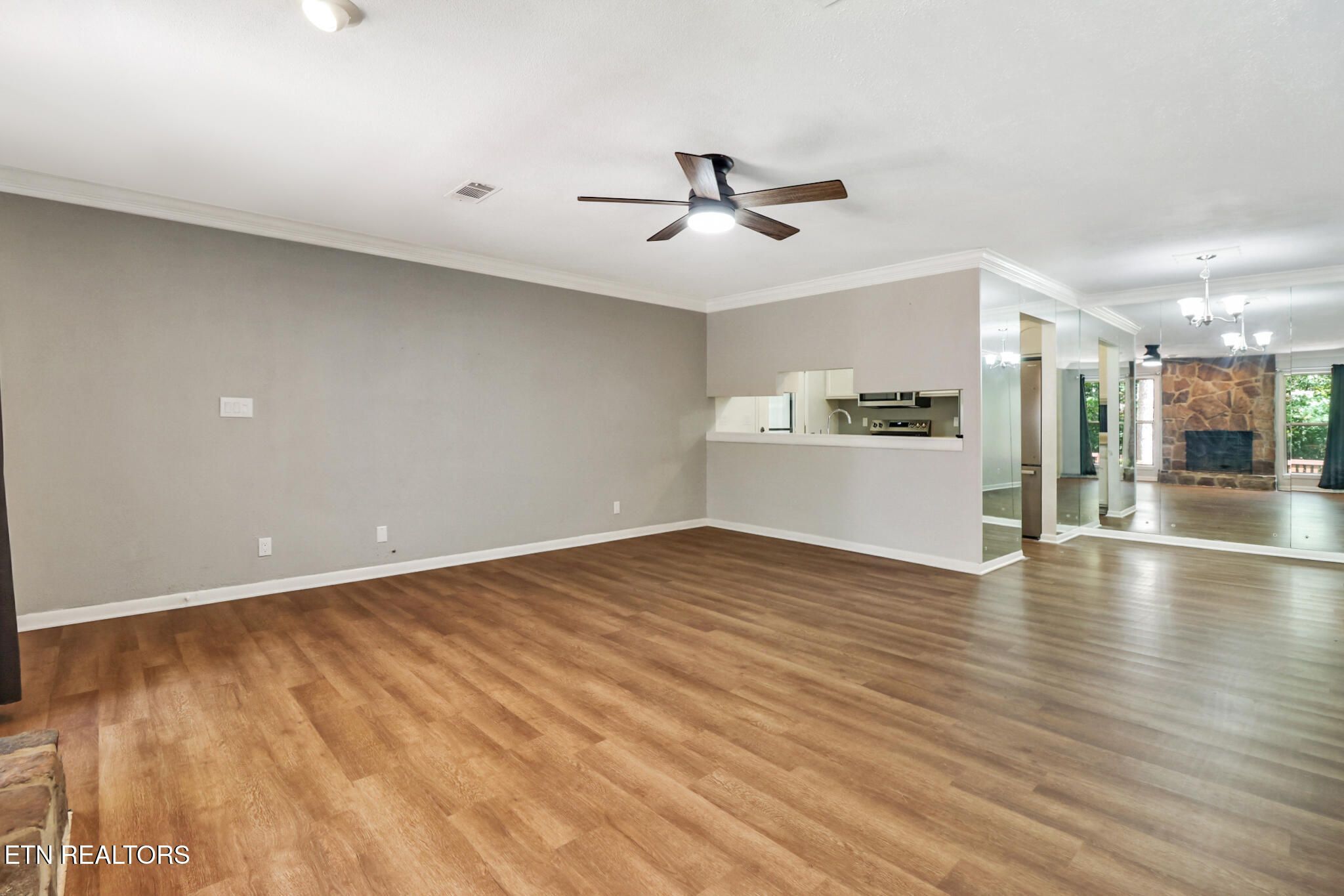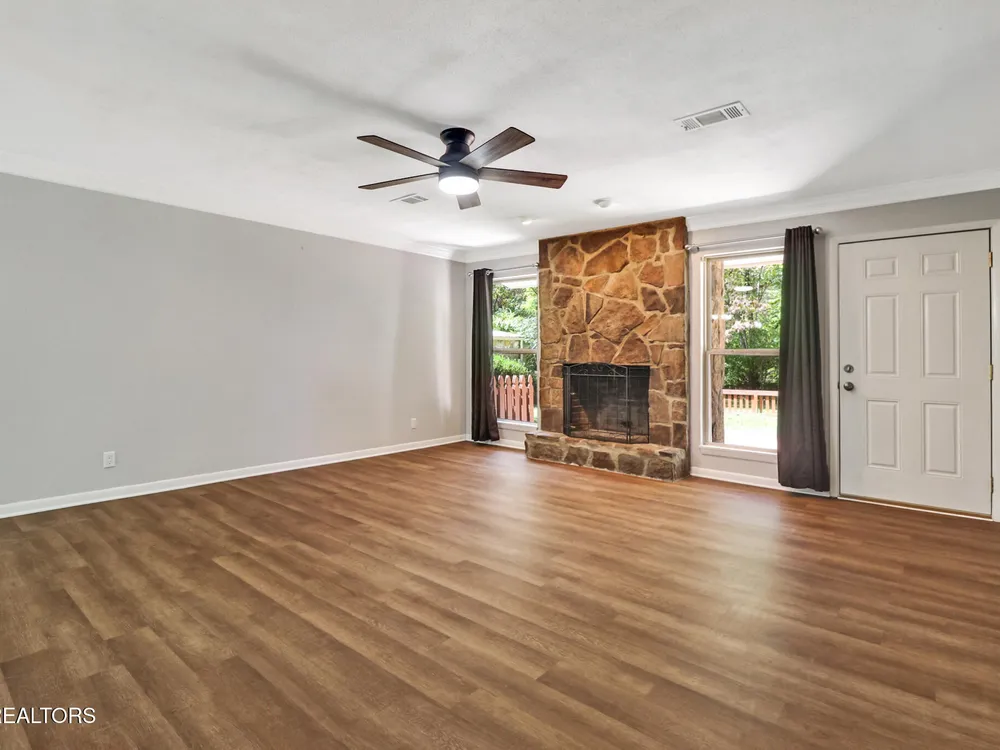 Charming Townhome Just Around the Corner from Lake St. George! This beautifully updated single-level townhome offers low-maintenance living in an incredible location. Step inside to an oversized living area with abundant natural light and stylish 2023 LVP flooring throughout. The kitchen features brand new 2025 appliances — including refrigerator, stove, dishwasher & microwave. Beautiful new appliances plus a $1500 COUNTER TOP ALLOWANCE from the seller makes this home completely move-in ready. Both bathrooms were remodeled in 2025, adding fresh, modern finishes. Additional updates include new interior and deck paint, new hot water heater, washer/dryer set and resealed driveway/parking area (2023). The roof was replaced in 2020, ensuring peace of mind for years to come. Enjoy two generous bedrooms with ample closet space, plus a fenced backyard perfect for pets or relaxing outdoors. Located in a sought-after community offering resort-style amenities — including 5 championship golf courses, 11 beautiful lakes, miles of hiking and walking trails, a state-of-the-art tennis and pickleball facility, 3 pools, and a vibrant calendar of community events. This home combines comfort, convenience, and an unbeatable lifestyle near Lake St. George — don't miss your opportunity to make it yours! Buyer to verify all information. Fireplace is propane, but there is no propane tank onsite. Would be perfect for an electric insert as well.