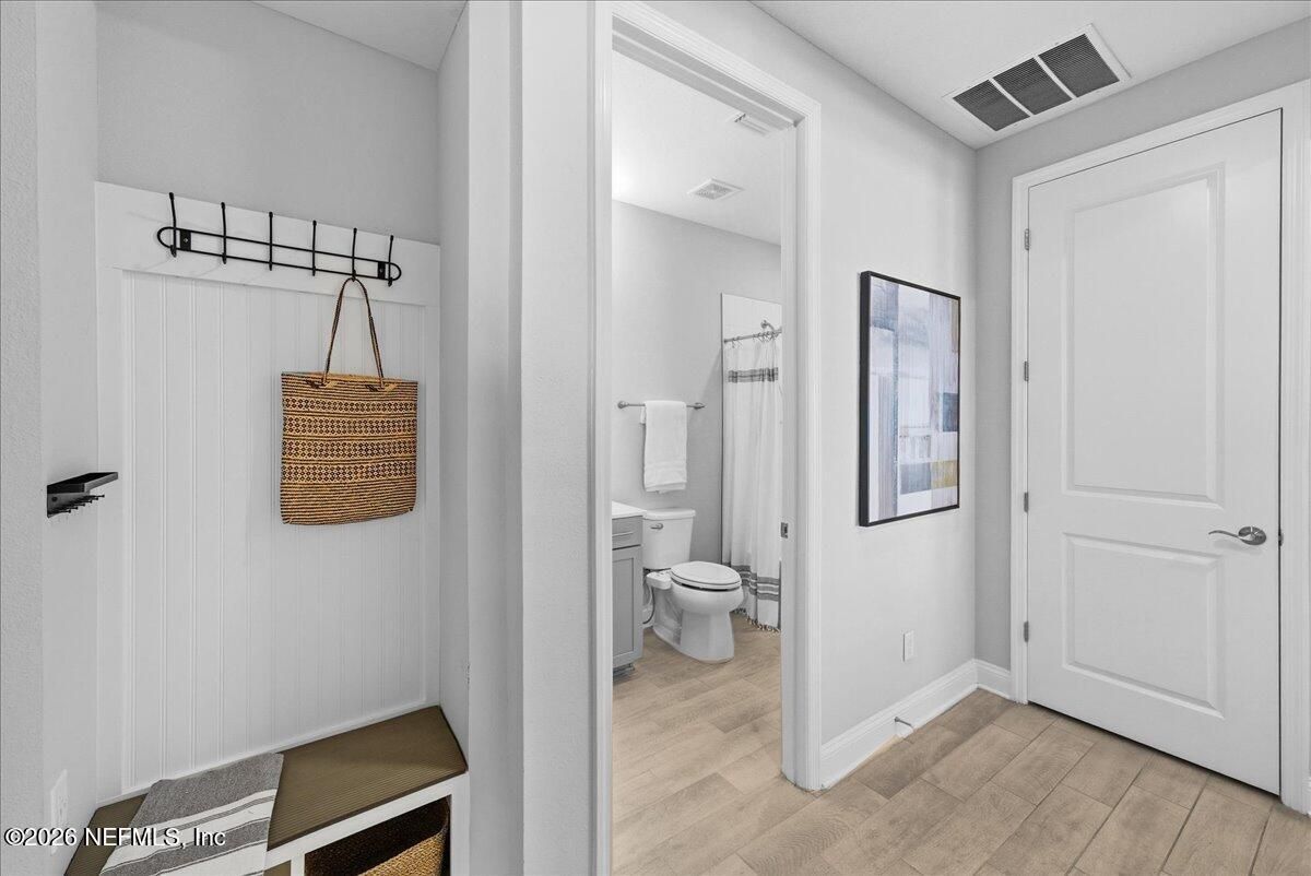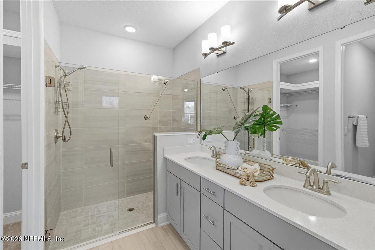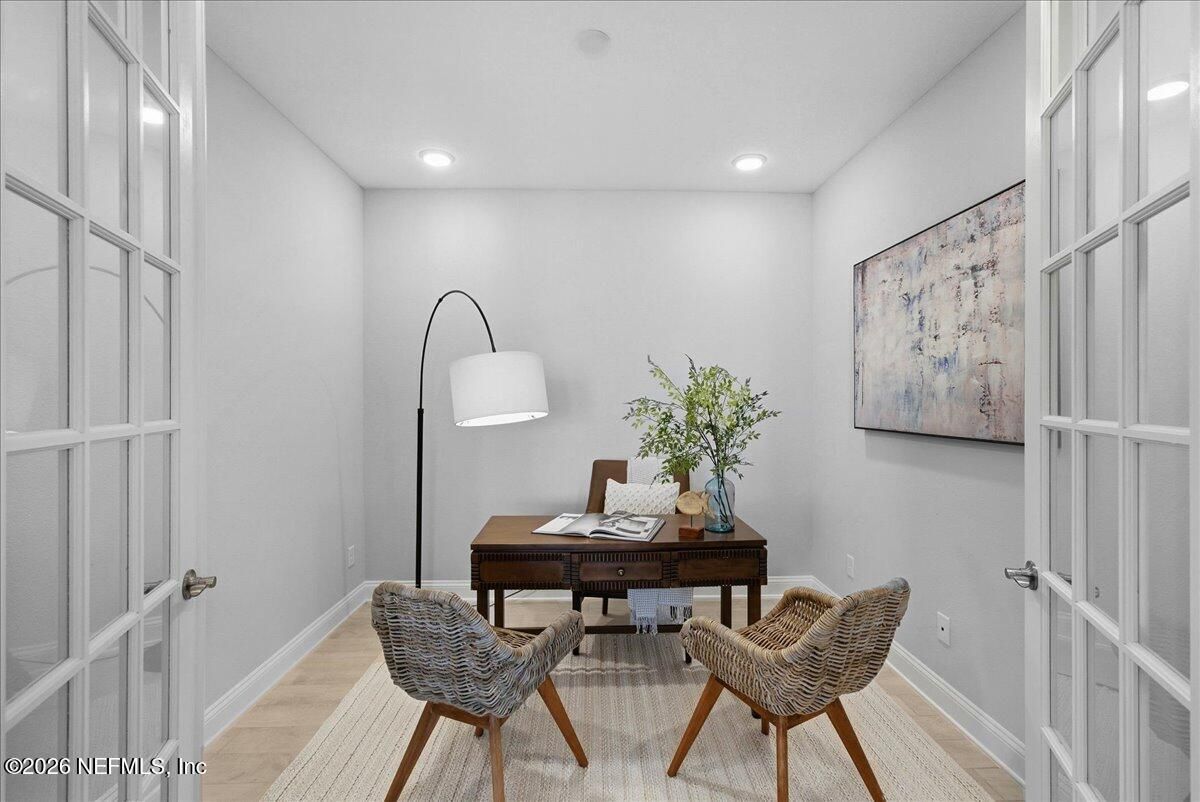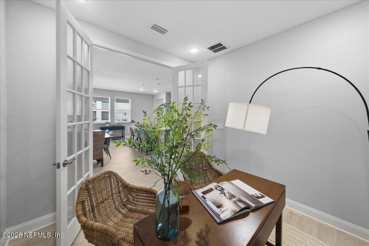 Tucked behind the gates of the highly sought-after 55+ community of WaterSong at RiverTown, this beautifully designed Ocean Model Villa invites you into a lifestyle where comfort, connection, and simplicity come together effortlessly. With 2 spacious bedrooms plus a versatile flex room, this 1,514 square foot home lives much larger than its footprint, offering the flexibility for a home office, hobby room, or welcoming guest space. Step inside and the home immediately sets a warm, coastal tone. Wood-look plank tile flooring flows throughout the main living areas, guiding you into a stunning kitchen designed to be the heart of the home. Here, sleek soft grey Shaker cabinetry pairs beautifully with quartz countertops and a classic white subway tile backsplash, while stainless steel Whirlpool appliances and a gas range make cooking a pleasure. A generous dining island, illuminated by elegant glass pendant lighting, becomes the perfect gathering place for morning coffee, casual meals, or evenings spent entertaining friends and neighbors. The open-concept great room creates a natural flow for everyday living and relaxed gatherings, extending seamlessly to a screened lanai where a gas bib and outlet are already in place for grilling under the stars. Beyond, the extended backyard provides just enough space to garden, let pets roam, or simply enjoy the Florida sunshine and peaceful surroundings. At the end of the day, the primary suite offers a private retreat designed for comfort and ease, featuring dual vanities, a spacious walk-in closet, and a zero-entry shower. A secondary bedroom, full bath, and the flexible bonus room allow the home to adapt beautifully to visiting guests or your favorite creative pursuits. Thoughtful touches such as recessed lighting and a tankless water heater add efficiency and modern convenience throughout. Life here is designed to be effortless. As part of the villa collection, exterior paint, roof, and landscaping are maintained for you, giving you more time to enjoy the lifestyle that makes WaterSong so special. Within the gates, residents enjoy a vibrant active-adult community with a private resort-style pool, lap pool, outdoor spa, pickleball and bocce courts, a scenic lake pavilion, and a lively biergarten, all supported by a full-time lifestyle director who keeps the social calendar full. And just beyond the community, the award-winning amenities of RiverTown await, including the spectacular RiverLodge with its lazy river, kayak launch, fitness centers, scenic riverfront trails, multiple pools, and a waterfront café. All of this is just minutes from top-rated hospitals, exceptional medical care, and major highways, offering both convenience and peace of mind while keeping you connected to everything Northeast Florida has to offer.