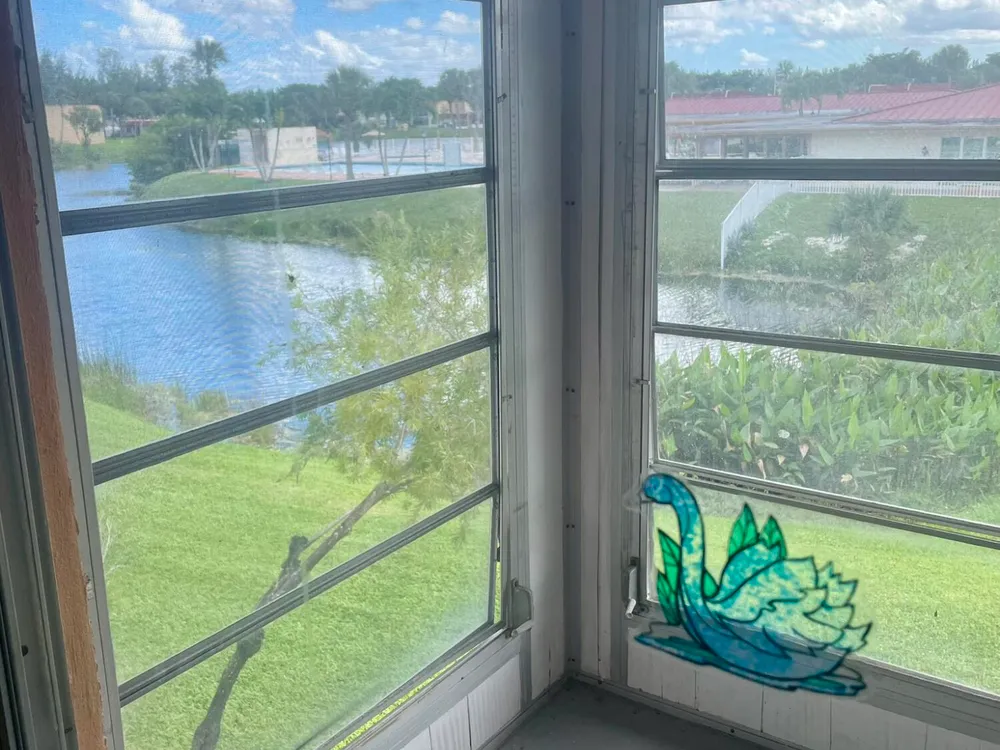 Bright, sun-filled corner unit in sought-after Golden Lakes Village offers serene water and pool views from your screened-in balcony. This 1-bed, 1.5-bath condo (≈ 704 sf) enjoys an open living/dining layout with natural light pouring in. All appliances are included, and the unit is vacant and move-in ready. The balcony overlooks the tranquil reservoir and sparkling community pool, creating a peaceful backdrop for morning coffee or evening relaxation. Residents enjoy an active 55+ community, convenient access to shopping, dining and transit, and the ease of condo living. Don't miss this turnkey opportunity.