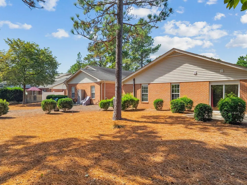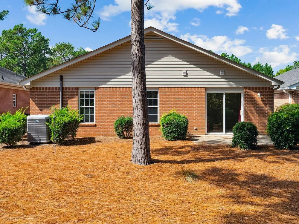 Located in the desirable 55+ Pinehurst Trace community, this one level, brick, single owner home has so much to offer! Situated in a cul-de-sac, the covered front porch is a great place to start your day! Upon entering the home you will notice the beautiful light wood floors which offer a bright airy feel. The kitchen boasts custom granite countertops and is open to the eat in kitchen and living room, perfect for entertaining. Off the kitchen is a laundry room and 2 car garage. The primary suite includes a spacious ensuite with double vanity and large walk in closet. The 2nd bathroom offers a spacious layout, perfect for guests! There are also two additional bedrooms, one featuring double closets! With no neighbors behind you, the backyard provides sense of tranquility! Lined with trees, you could turn this space into the perfect backyard oasis!Book your appointment today and get ready for low maintenance living! The HOA covers yard maintenance, pressure washing, and roofs are covered for Lifecycle replacement, when necessary! Residents can enjoy numerous amenities, including a clubhouse, pool, tennis courts, pickleball, and more!