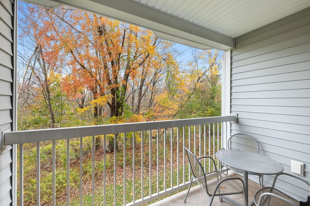 Welcome to Woodstone Crossing in the sought-after Union Point community! This stunning second-floor one-bedroom condo (with bonus space) perfectly blends comfort, style, and convenience. The upgraded kitchen features granite countertops, tiled backsplash, center island, wine fridge, glass pendants, stainless steel appliances, pantry, and crown molding. The open living area includes a custom ethanol fireplace with built-ins and a dining nook with chandelier — ideal for both relaxing and entertaining. The versatile bonus room makes a great home office, gym, or flex space. The spacious primary suite offers a walk-in closet and an updated bath with designer finishes. Enjoy your morning coffee or evening glass of wine on the private balcony overlooking peaceful views of nature. Additional highlights include 9-foot ceilings, in-unit laundry with storage, two parking spots, and a professionally managed building near the commuter rail and major highways. Come see all Union Point has to offer!