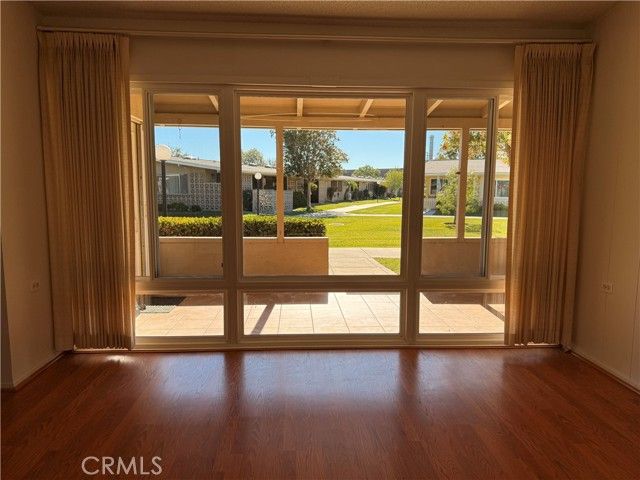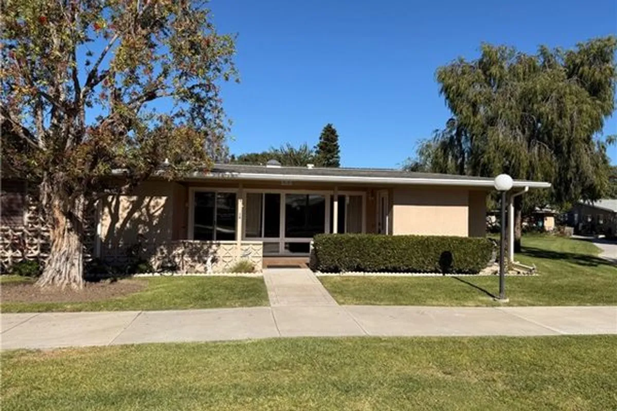 Discover this beautifully situated 2-bedroom, 1-bath Leisure World home in the heart of Mutual 4, ideally positioned on a wide, green-belt setting with mature shade trees and open-air ambiance. This expanded corner unit offers a rare combination of indoor comfort and outdoor charm — with an oversized tiled front patio perfect for morning coffee or afternoon relaxation. Inside, you’ll find a bright and inviting living area with floor-to-ceiling dual-pane windows that bring in natural light and tranquil greenbelt views. The spacious kitchen features abundant cabinet space, upgraded hardware, and a classic layout ready for your designer touches. Both bedrooms provide privacy and comfort, while the bath includes an extended vanity and a step-in shower with frosted glass doors. Upgrades include laminate wood-style flooring, dual-pane windows, and multiple windows with great views. The large front patio and views of the side greenbelt create an open, airy feel throughout the home. Located close to convenient parking, this Mutual 4 location offers easy access to Clubhouse 2, sports courts, the golf course, and all community amenities — from swimming and fitness to more than 200 clubs and activities. Mutual (Carport 57, Space 8) SENIOR COMMUNITY-OFFERS THE FOLLOWING AMENITIES: 9 Hole Golf Course, Swimming Pool, Jacuzzi, Gym, Table Tennis, Shuffle Board, Billiards, Pickle Ball, and Bocce Ball courts. Amphitheater, 6 Clubhouses featuring: Art Room, Sewing, Crafts, Wood Shops, Lapidary, Pool Tables, Over 200 Clubs, LWSB is a Security-Guard-Gated Community. Also, the Library, Friends of the Library Bookstore, Credit Union, Health Care Center, Pharmacy, and Post Office.