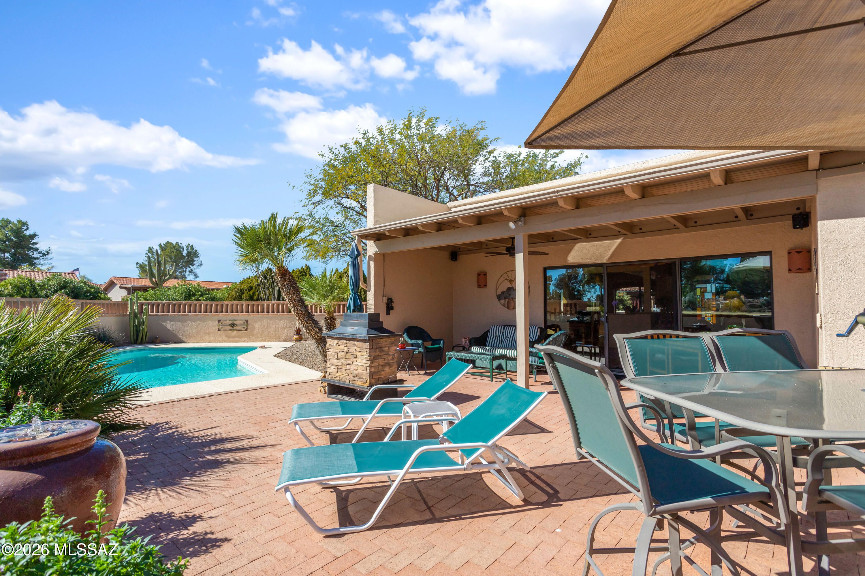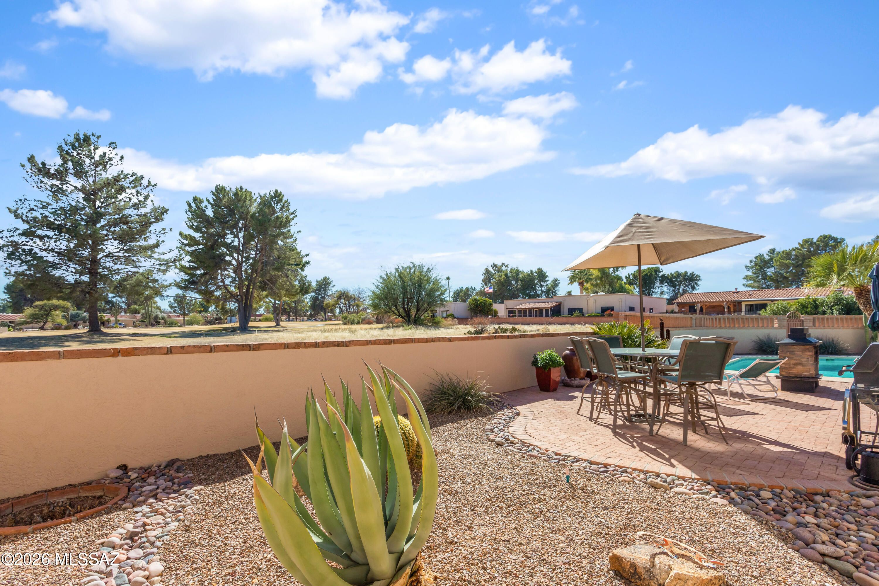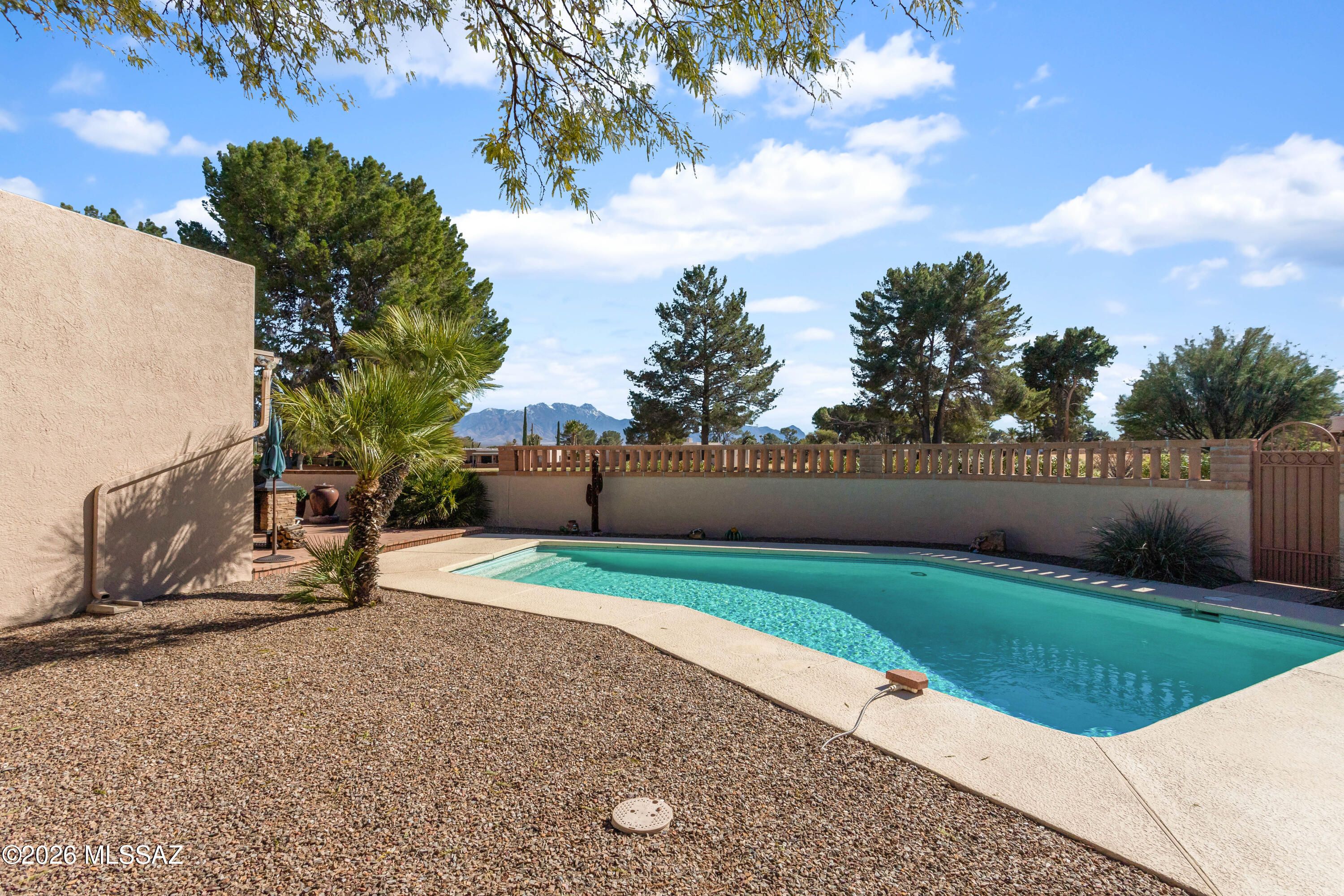 For those seeking authentic Southwest flair and distinctive character, this thoughtfully updated 3-bedroom, 2-bath TH captures the essence of desert living with golf course scenery and stunning Santa Rita Mountain views from the backyard. The open-concept layout offers comfortable living and effortless entertaining, complemented by tasteful updates and a private heated pool perfect for relaxing and enjoying Arizona sunsets. Located on a quiet cul-de-sac in the heart of Green Valley, the home provides both privacy and convenience, just one block from Taco Giro. Move-in ready, this property is ideal as a full-time residence or lock-and-leave seasonal retreat.