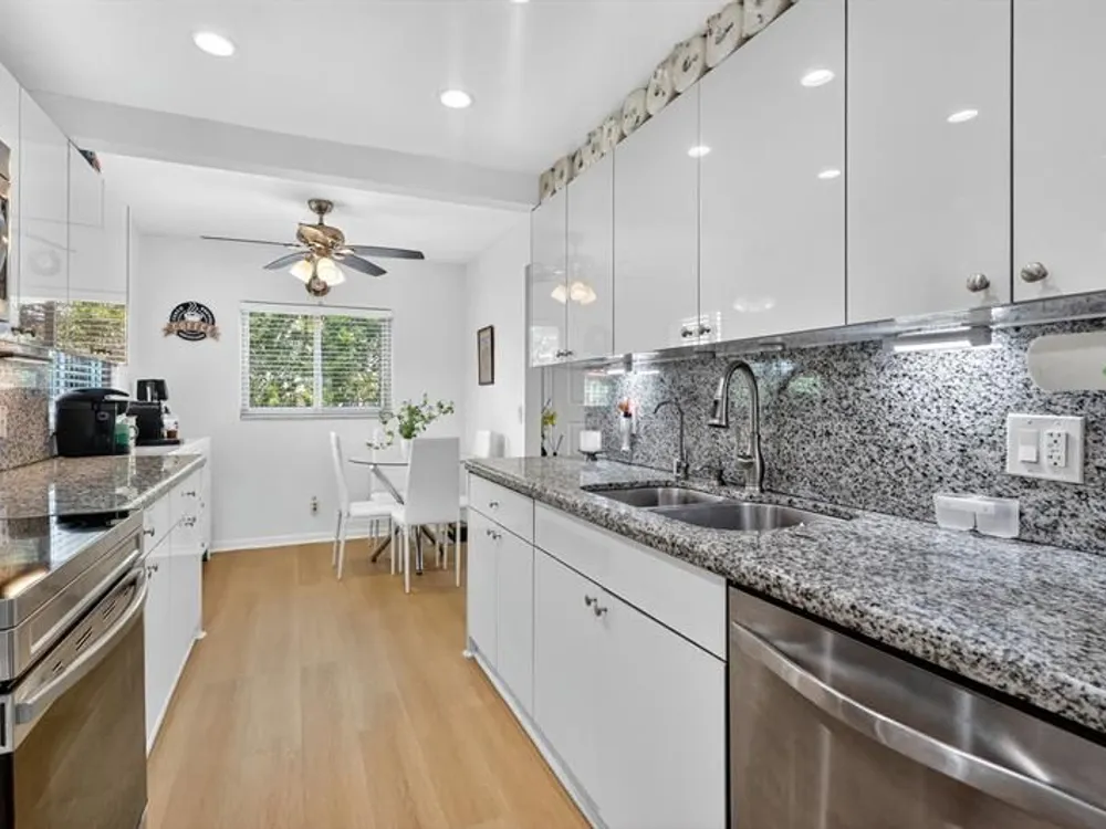 Amazing green garden views from this beautifully maintained corner Magnolia model! Bright, spacious, and tastefully updated, impact windows throughout, vinyl floors, and honeycomb electric shades. Remodeled kitchen with granite countertops, stainless-steel appliances, recessed lighting, a double sink, pantry, and reverse osmosis water system. Enclosed balcony extends the living room, offering additional interior square footage and a perfect space to relax or entertain. Master bedroom with walk-in closet and a remodeled bathroom with a walk-in shower and dual vanities. Newer A/C and water heater, parking space right across from the elevator. Located between 2 pools, close to the Pembroke Road back gate. Association fee covers cable, internet, water, insurance, roof, and all amenities.